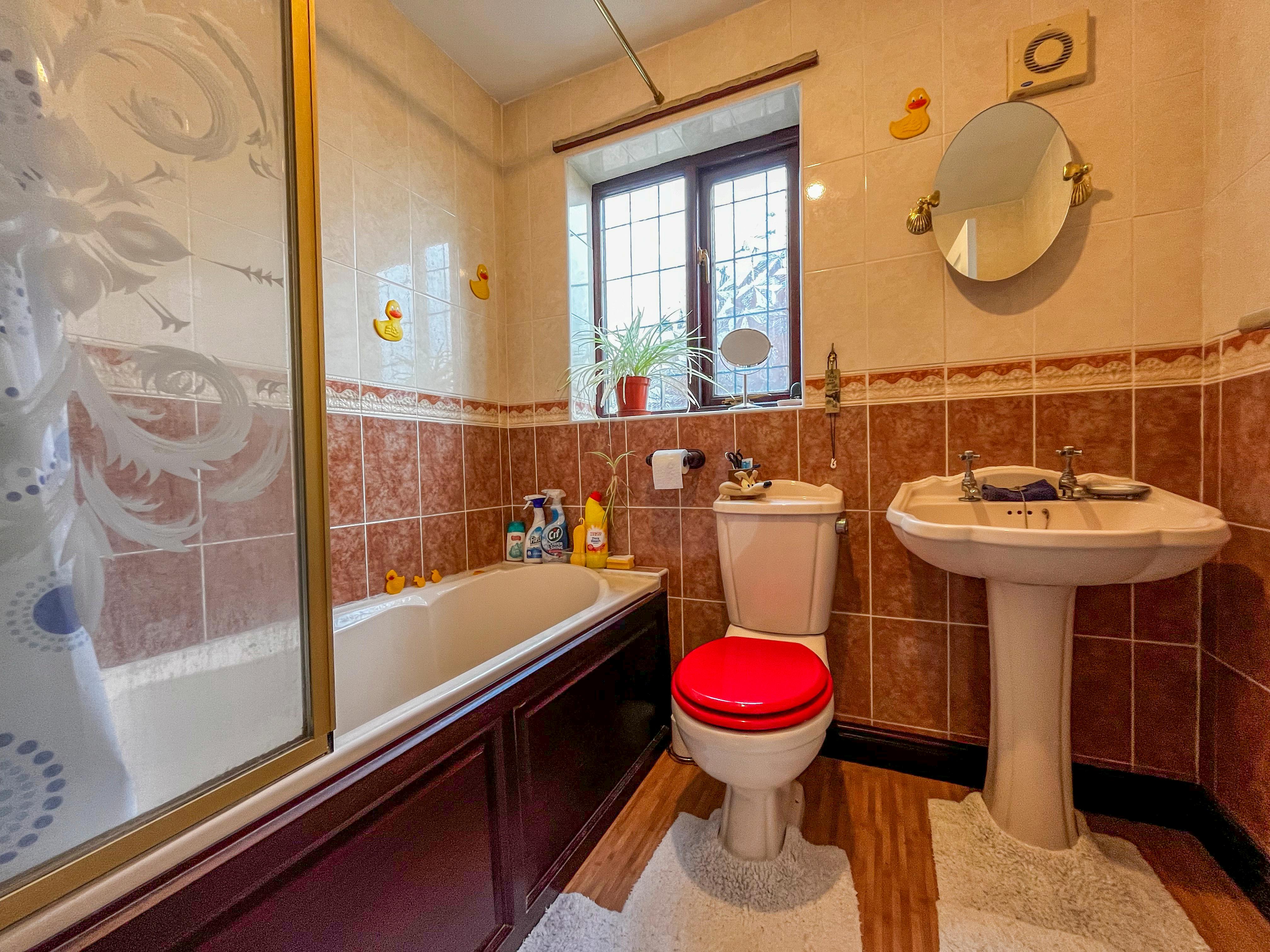 To the first floor is bedroom one at the rear aspect, an additional rear aspect single bedroom, and an additional double bedroom to the front aspect. All are served by a modern family bathroom that boasts a bath with a shower over, a vanity hand wash basin, a low-level flush toilet.