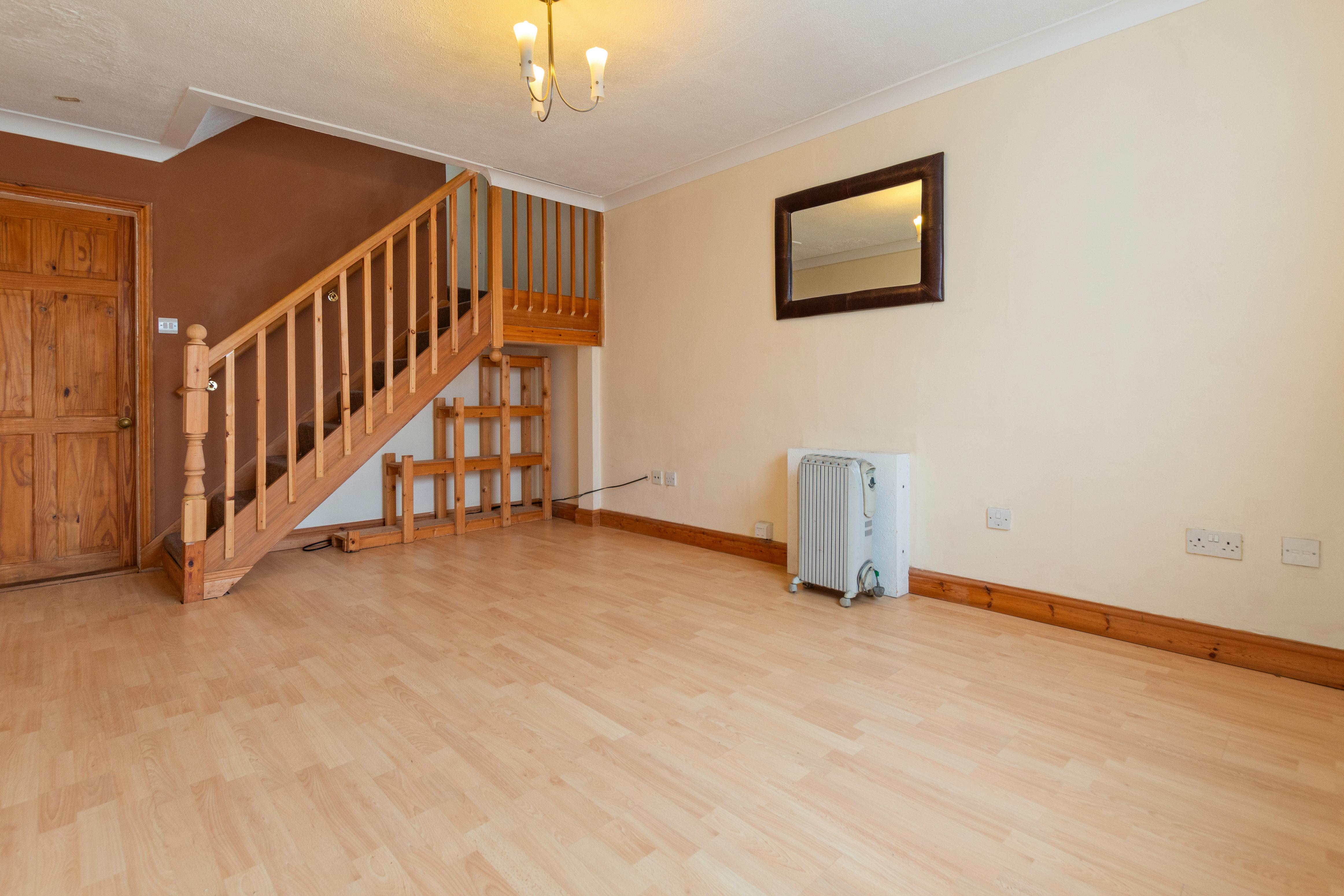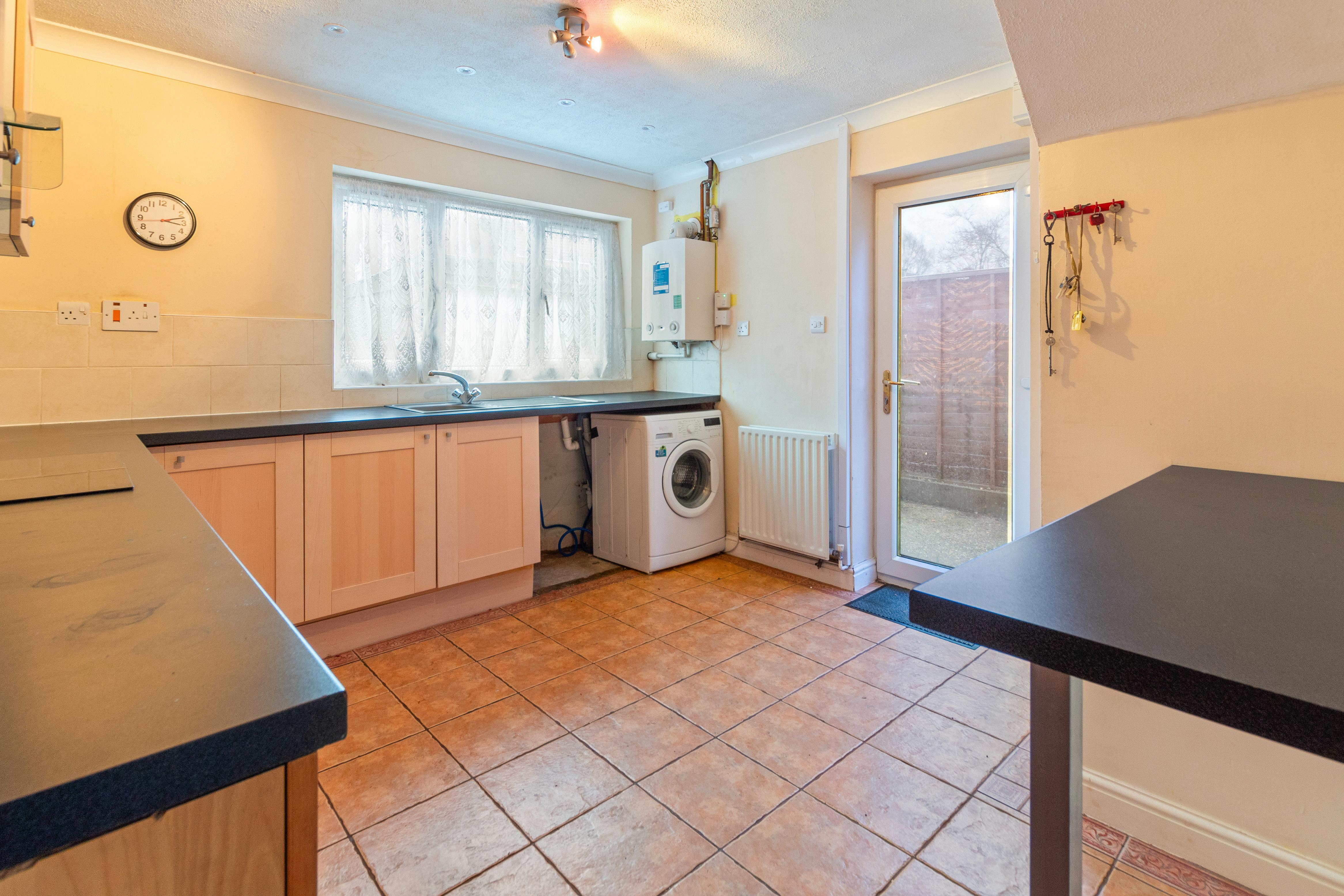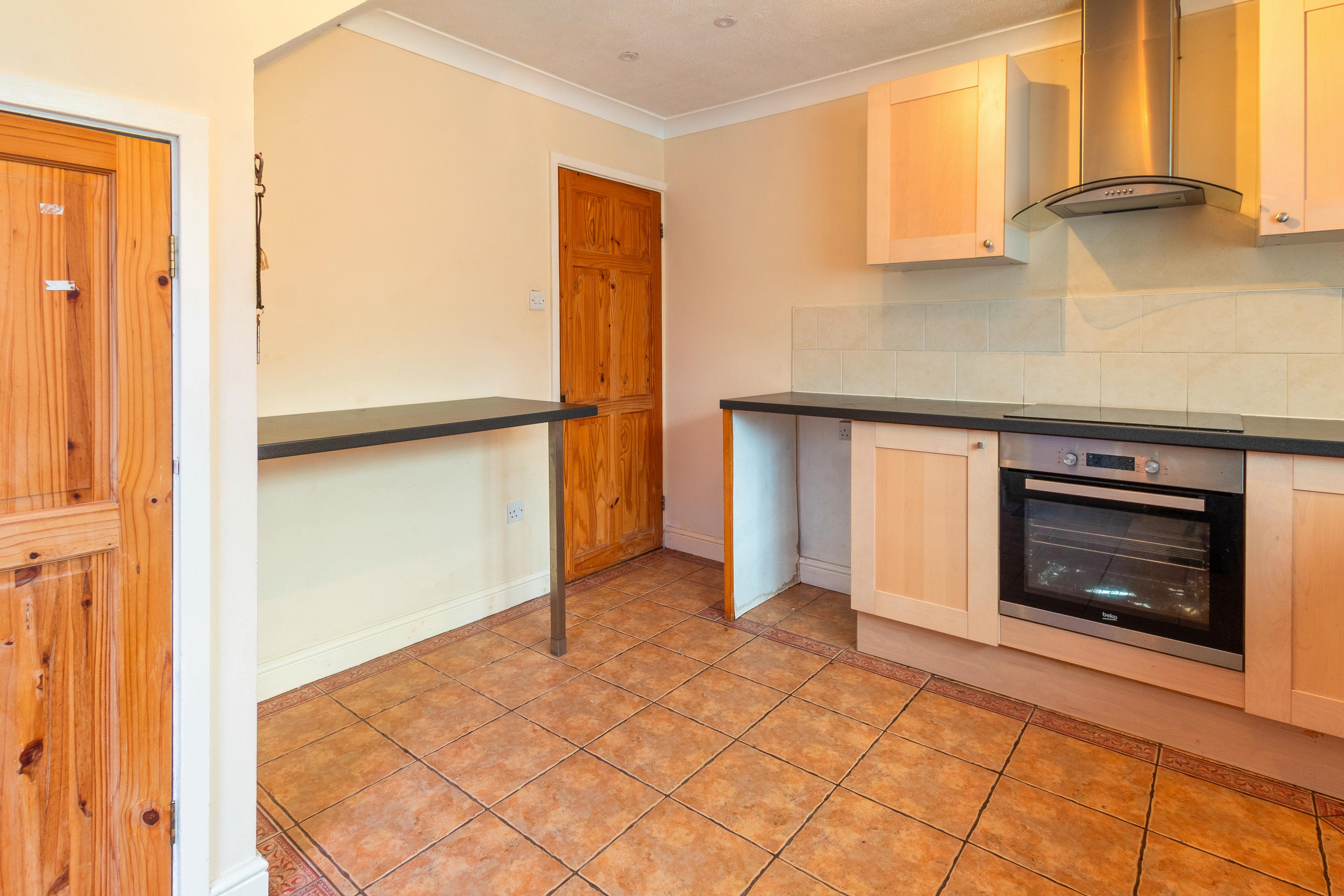 Stepping inside this superb home, you are greeted by a welcoming lounge, providing a warm and inviting atmosphere The lounge seamlessly opens to the staircase leading to the first floor and offers access to the modern fitted kitchen. This contemporary kitchen boasts a stainless steel built-in electric oven, hob, and extractor fan, ensuring a stylish and functional cooking space. A window overlooking the rear garden fills the space with natural light, while a convenient access door offers a seamless transition to the outdoors, creating the perfect spot for indoor-outdoor living.
