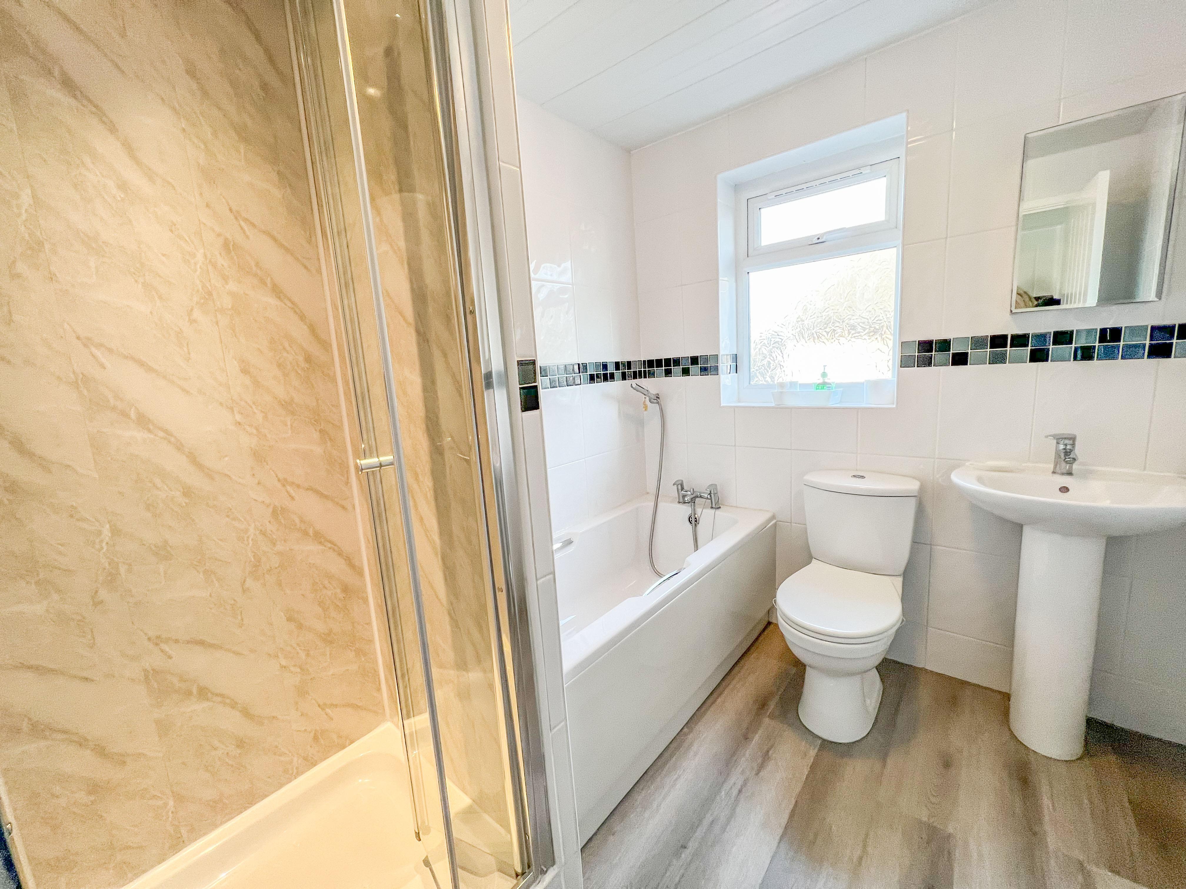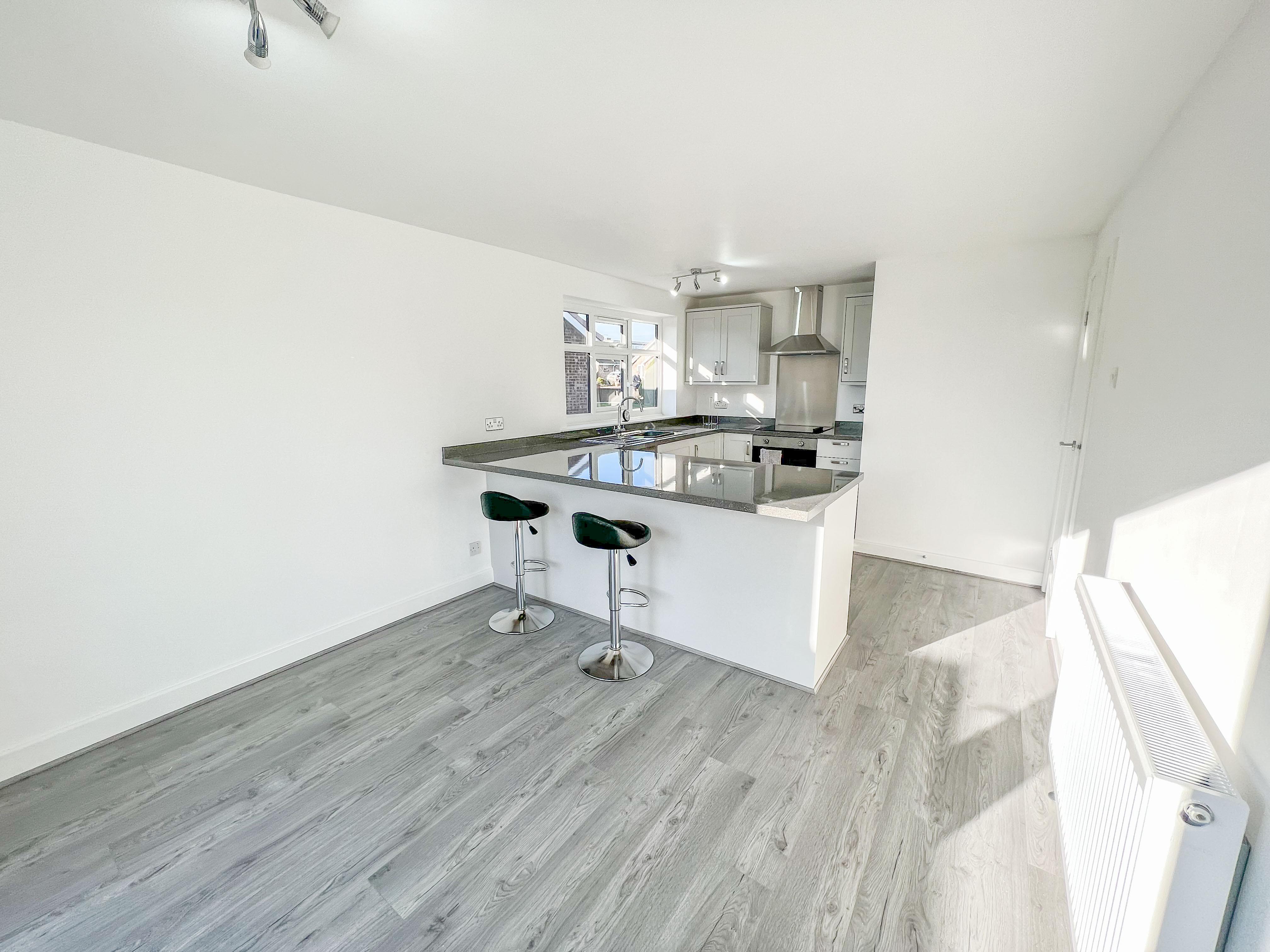 The entrance door opens into a welcoming reception hall with laminate flooring, with access to a handy storage cupboard housing the boiler, along with door leading to the generous forward facing lounge. Moving onto the hallway giving access to the newly fitted kitchen with a range of units in a white finish with a quartz worktop and breakfast bar. The hallway also gives access to the two bedrooms and bathroom.