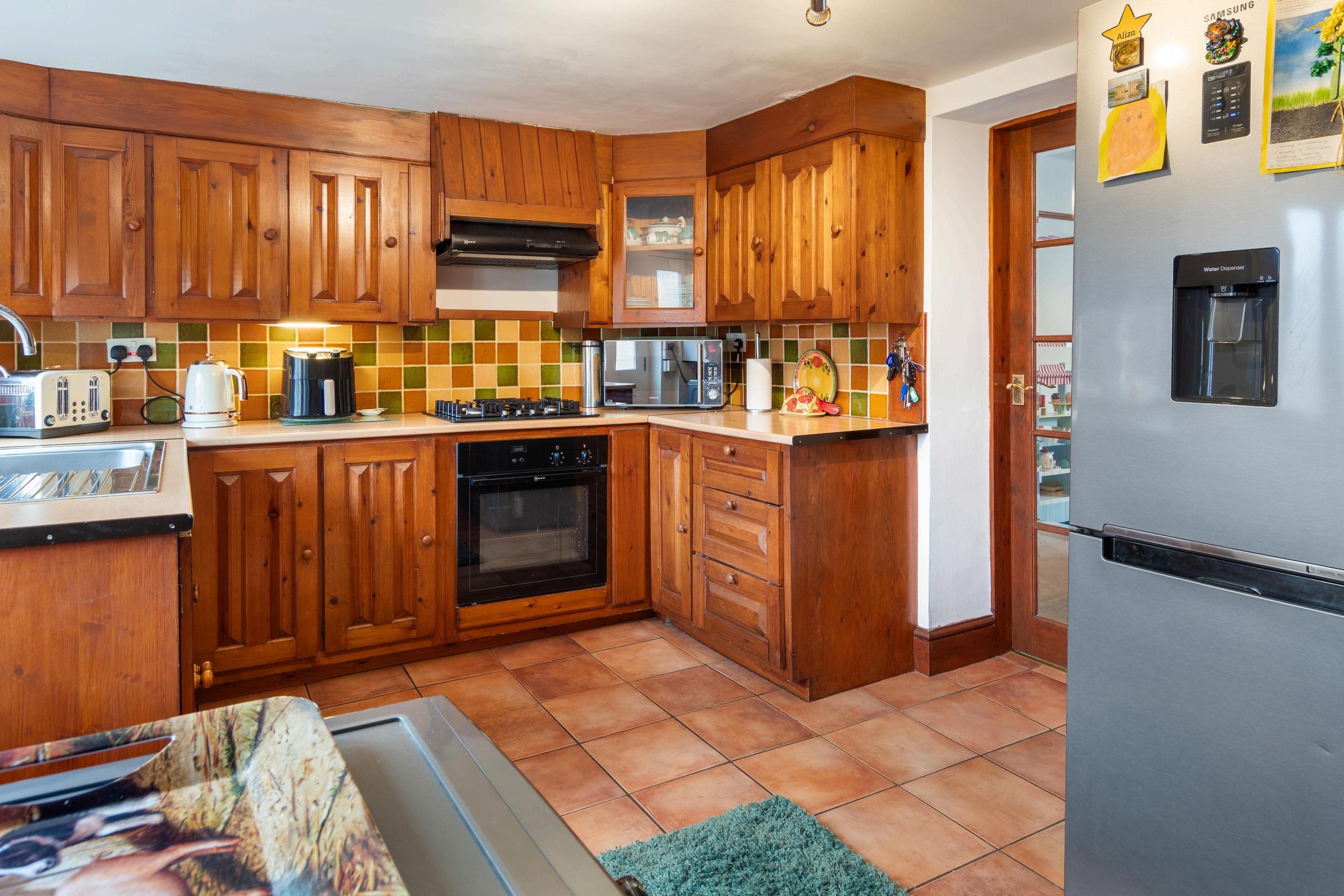 Upon entering, you are welcomed into a bright and inviting entrance hallway, accessed through a timber door. The forward-facing dining room is a spacious and airy setting, featuring ample space for a six-seater dining table, creating the perfect space for entertaining. Leading from the dining room, the well-proportioned kitchen is fitted with wood wall and base units, a stainless-steel sink, space for a washing machine, a built-in oven with a gas hob and extractor, and ample space for a freestanding fridge freezer. A wooden door provides access to the beautiful rear garden beyond. Leading back off the hallway is the cosy living room that is bursting with charm and character, offering a relaxing retreat with windows to the front and rear, a feature open fireplace with a log burner, wooden ceiling beams, and alcove shelving.