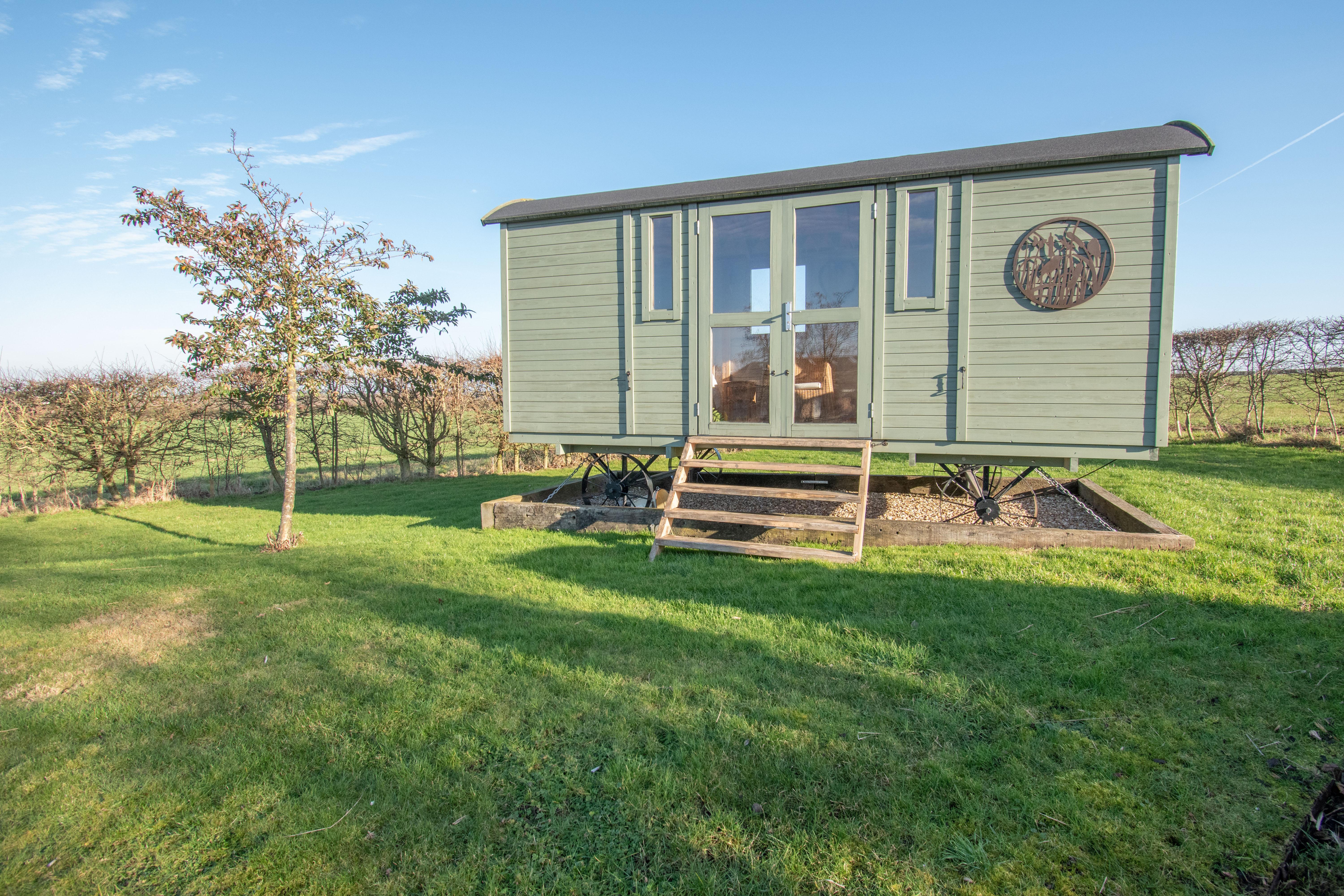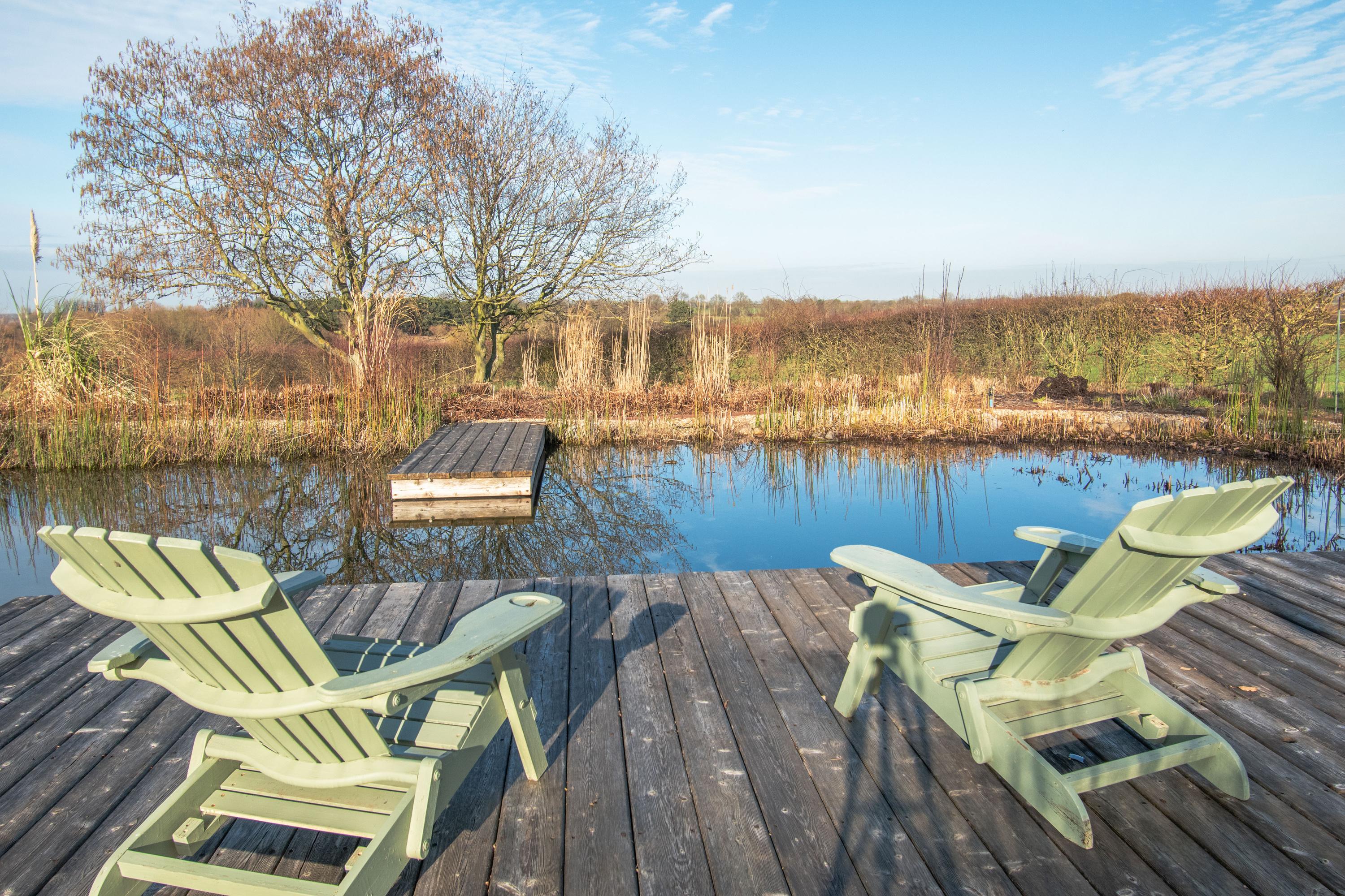 A further lawned garden with a plethora of small trees to include silver birch arranged to the formal entrance side of the property has a granite block paved path leading across the lawn to join a contrasting paved area to the front entrance door. The path continues to provide access to the lounge garden door where there is a stone paved patio looking over the garden. A hedge divide with gate opens to an orchard surrounded by a hedge boundary to the neighbouring open farmland To the rear there is a granite/stone flagged patio from the orangery which looks over a beautifully landscaped garden with numerous points of interest to include gravelled walkways planted beds and a raised timber shepherd’s hut which looks over a feature natural fresh water pond with decked jetty style seating area