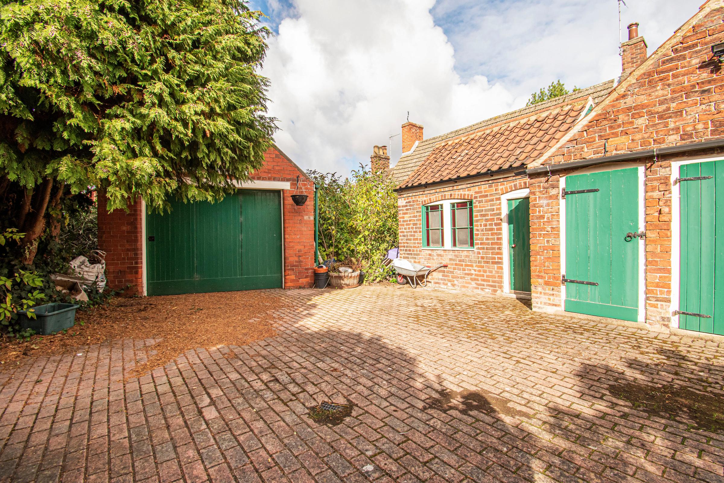The property fronts directly onto the path on North Street with a block paved entrance drive to the side of the house which leads past an outbuilding flanking the right side of the drive, which continues around to access a detached garage with bi-folding timber door. The large, detached brick-built outbuilding to the side of the garage has three doors which open to a storage room with power and light used as a gym, a wood store, and a coal store. To the side of this building fronting the entrance area of the drive are two further doors to a workshop with power and light then a gardener’s w.c.
