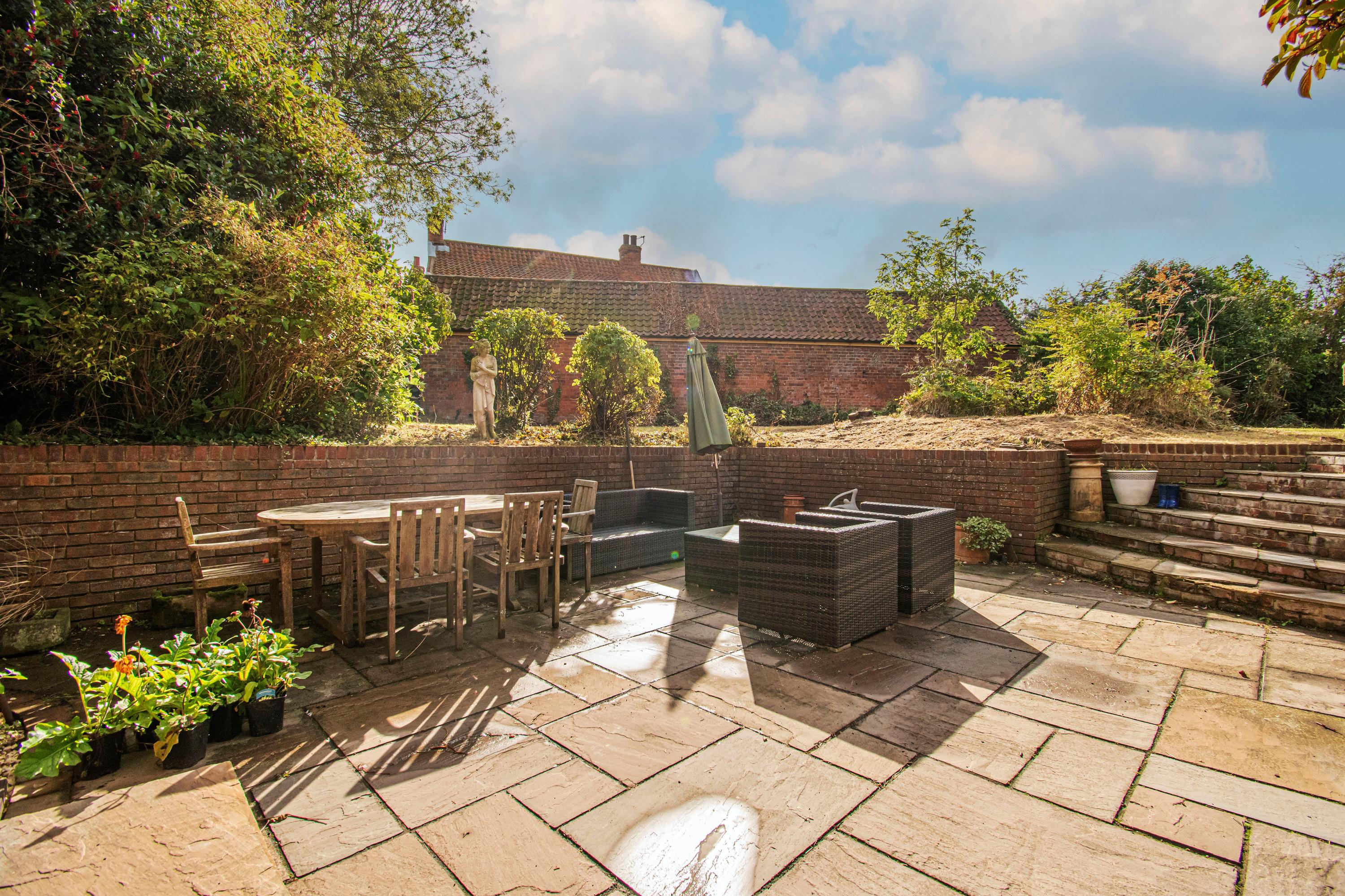 To the rear of the property is a lower-level paved patio where the informal entrance into the property is, conveniently positioned from the drive. There are two sets of steps from the spacious patio up to the drive and to the rear garden.