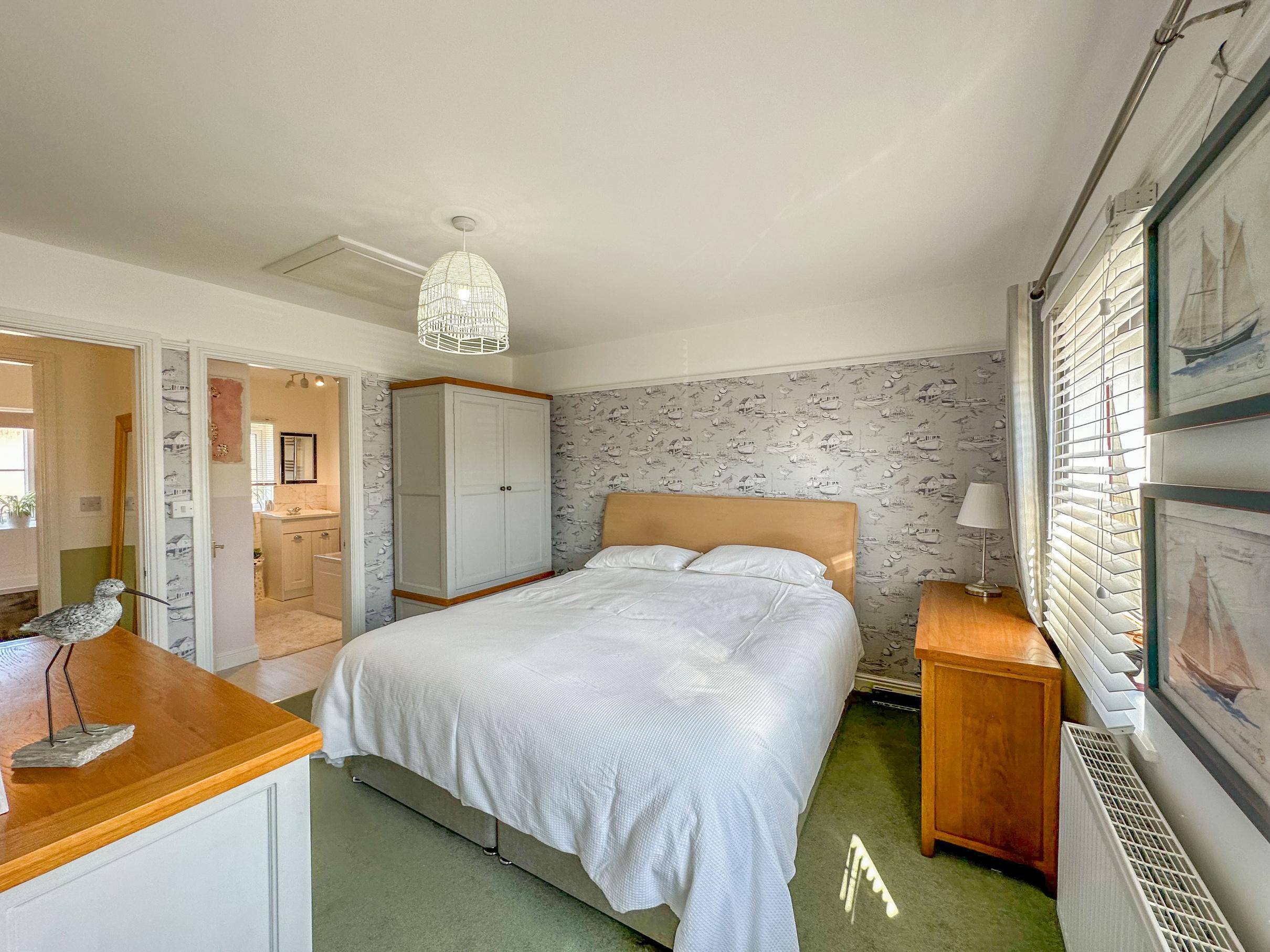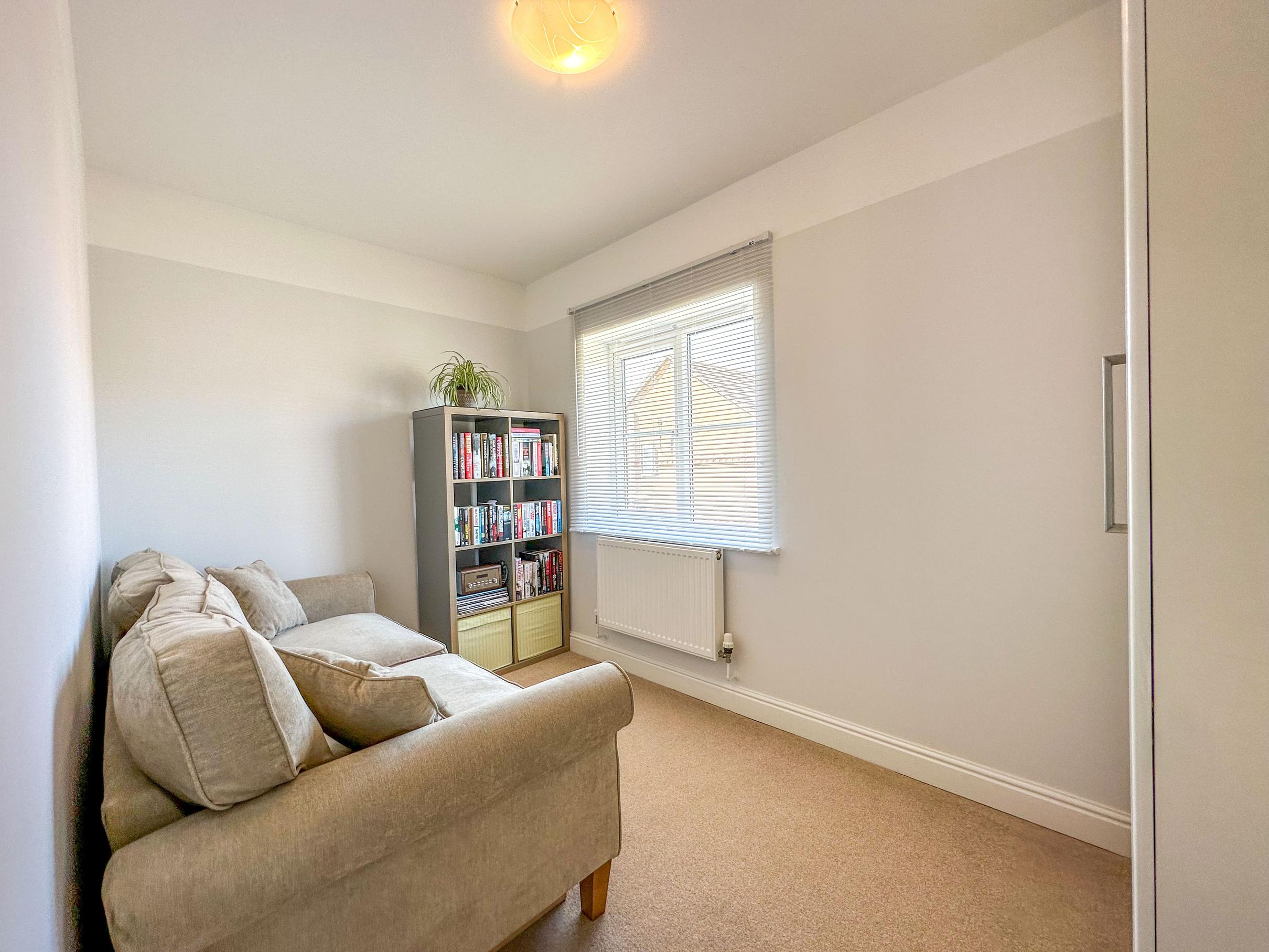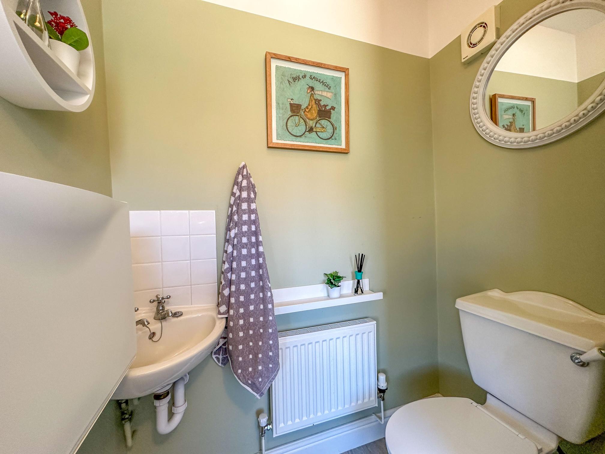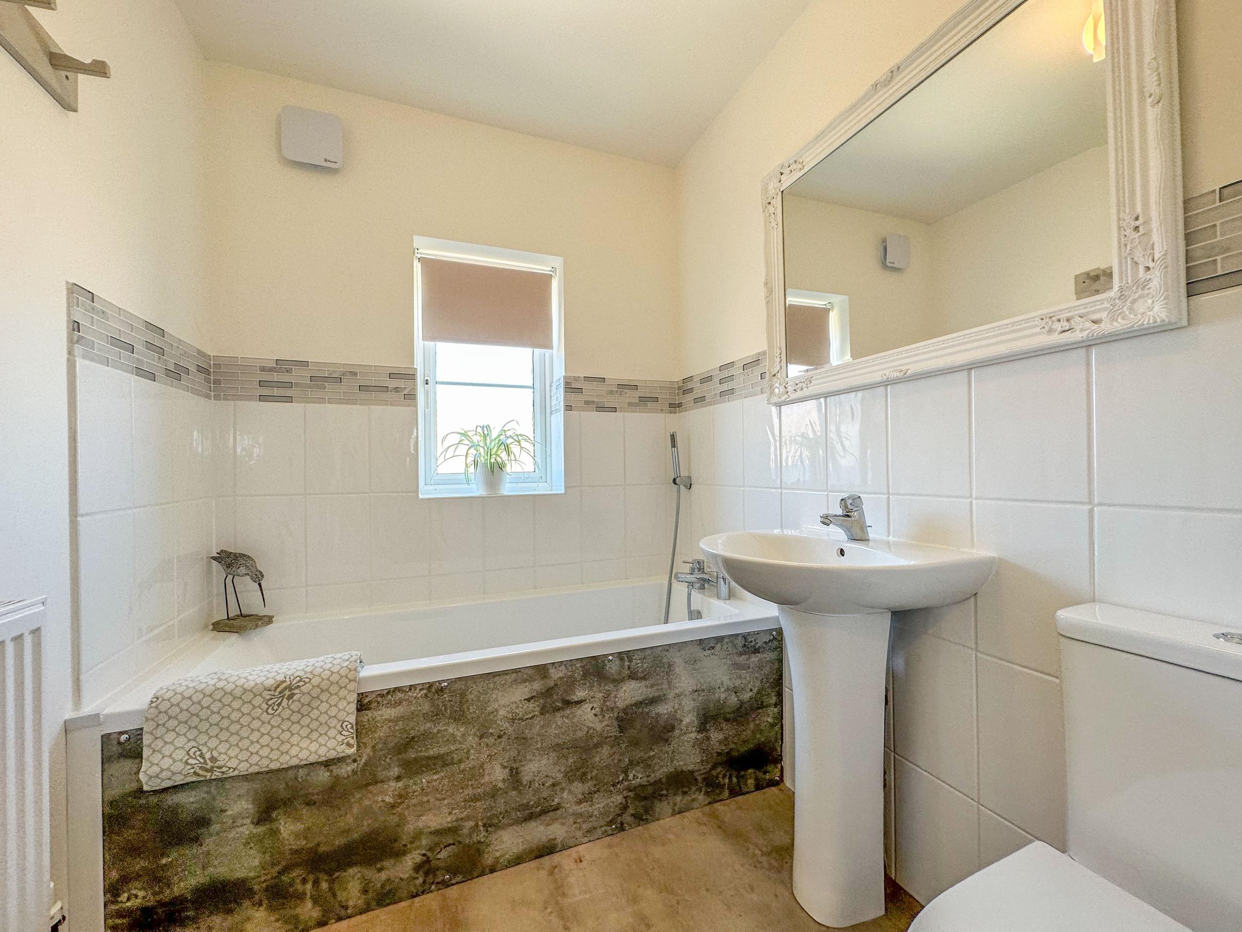 To the first floor is the generous front-facing master bedroom that boasts an upgraded en-suite bathroom that benefits from a bath that is complimented with an over-bath shower, a hand wash basin and W.C. A second double bedroom benefits from a storage cupboard and fitted wardrobes, and an additional third single bedroom is also complimented with fitted wardrobes. All are served by the modern white three-piece family bathroom with a bath, hand wash basin and W.C.
