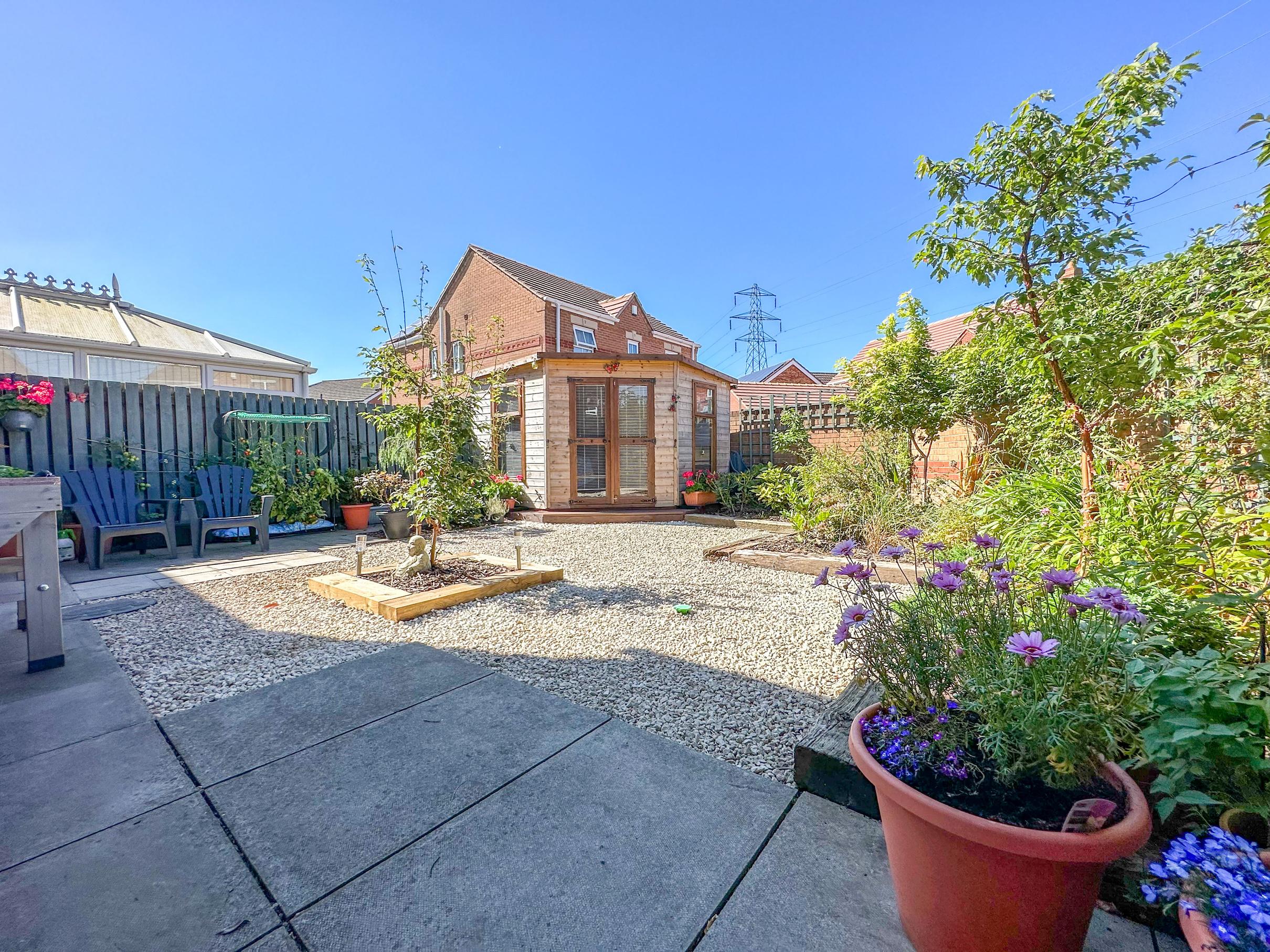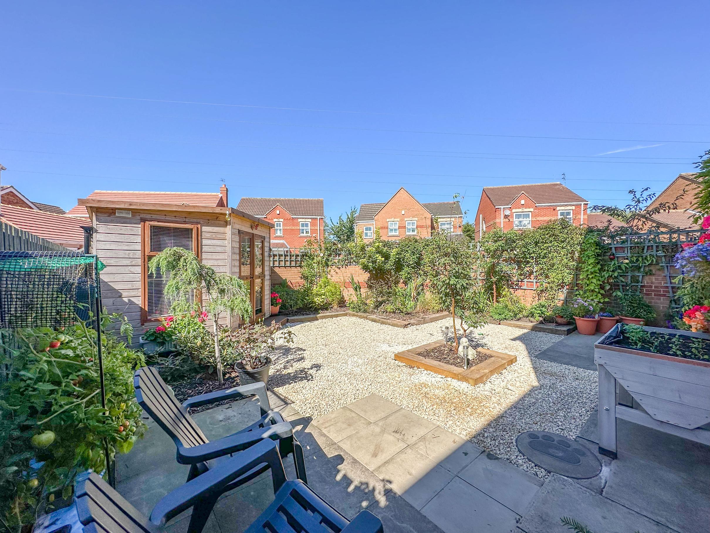 Externally, the property sits on a generous corner plot and benefits from a landscaped front garden with off-road block paved parking leading to the integral garage. A timber-built gate leads down the side of the property into a walled and fully enclosed West facing rear garden with established planted borders, gravel pathways, a wooden summer house that is ideal for a home office, and a patio seating area for entertaining friends and family.