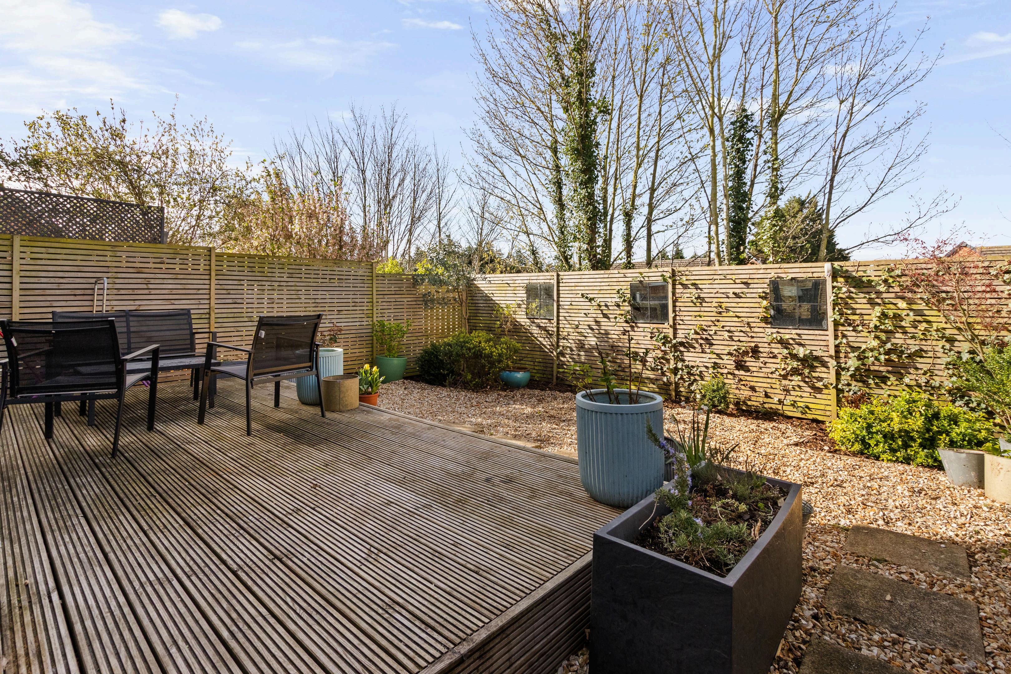 To the front of the property is a private driveway, providing off road parking. The rear garden has been thoughtfully landscaped and features a decked patio area, ideal for outdoor dining and relaxation. Importantly, the garden enjoys a non overlooked rear aspect, offering an excellent degree of privacy.