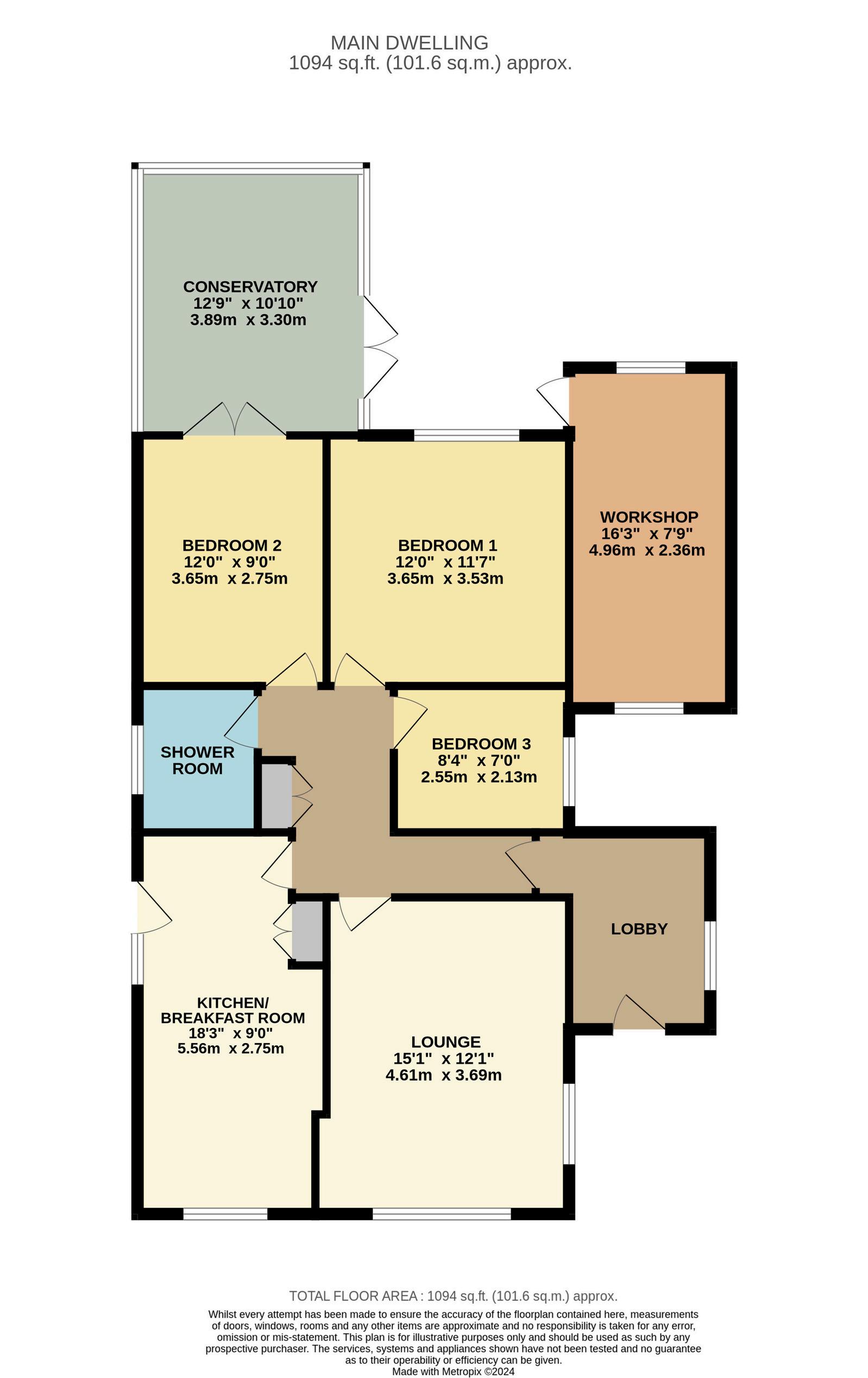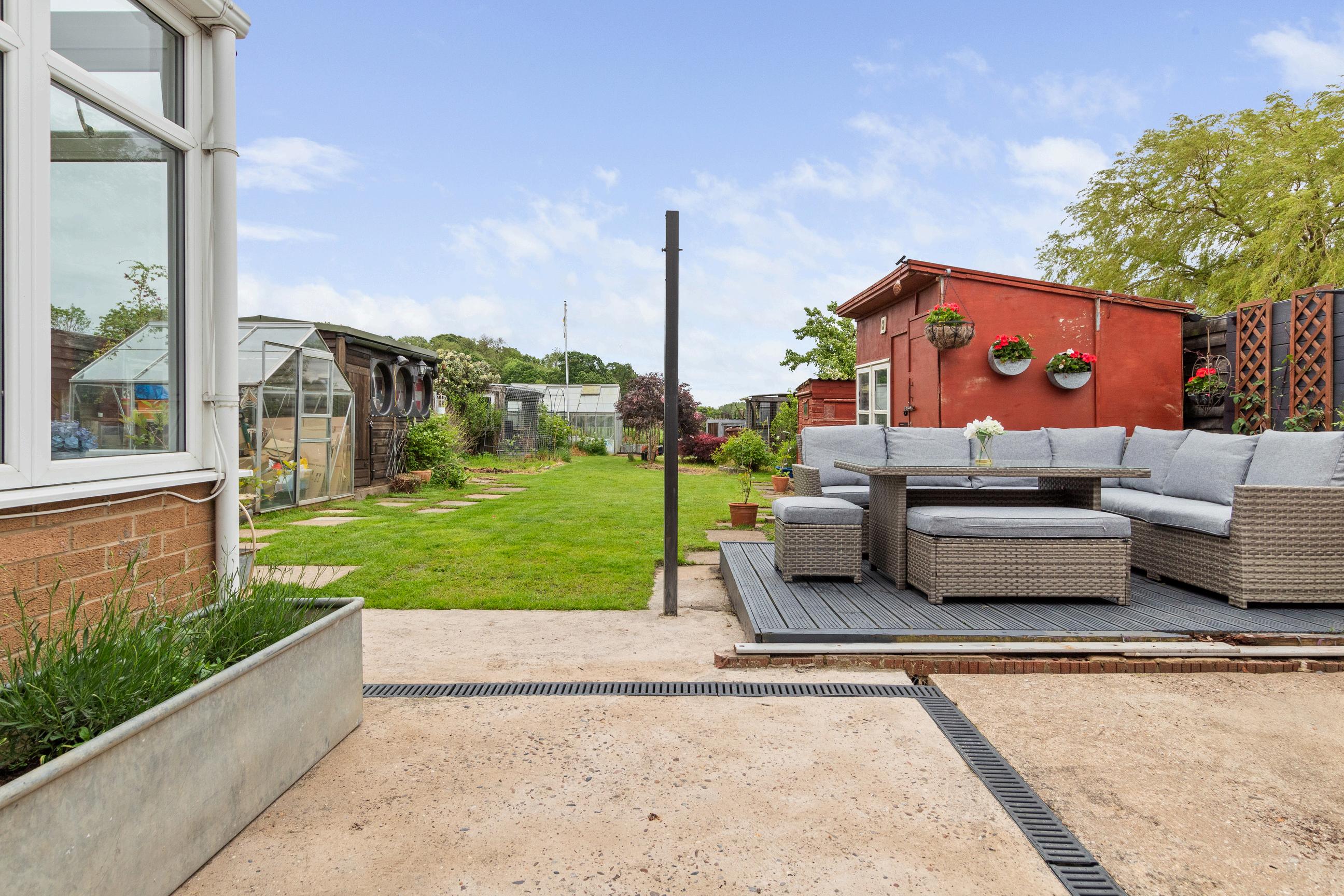 The bungalow offers three spacious bedrooms, each designed for comfort and privacy, making it ideal for families or guests. The stylish shower room features modern amenities and a sleek design, ensuring a luxurious experience. The conservatory provides a serene spot to enjoy the garden views, perfect for relaxation or as an additional entertaining space. For the DIY enthusiast, the property includes a workshop, offering a dedicated space for projects and hobbies.