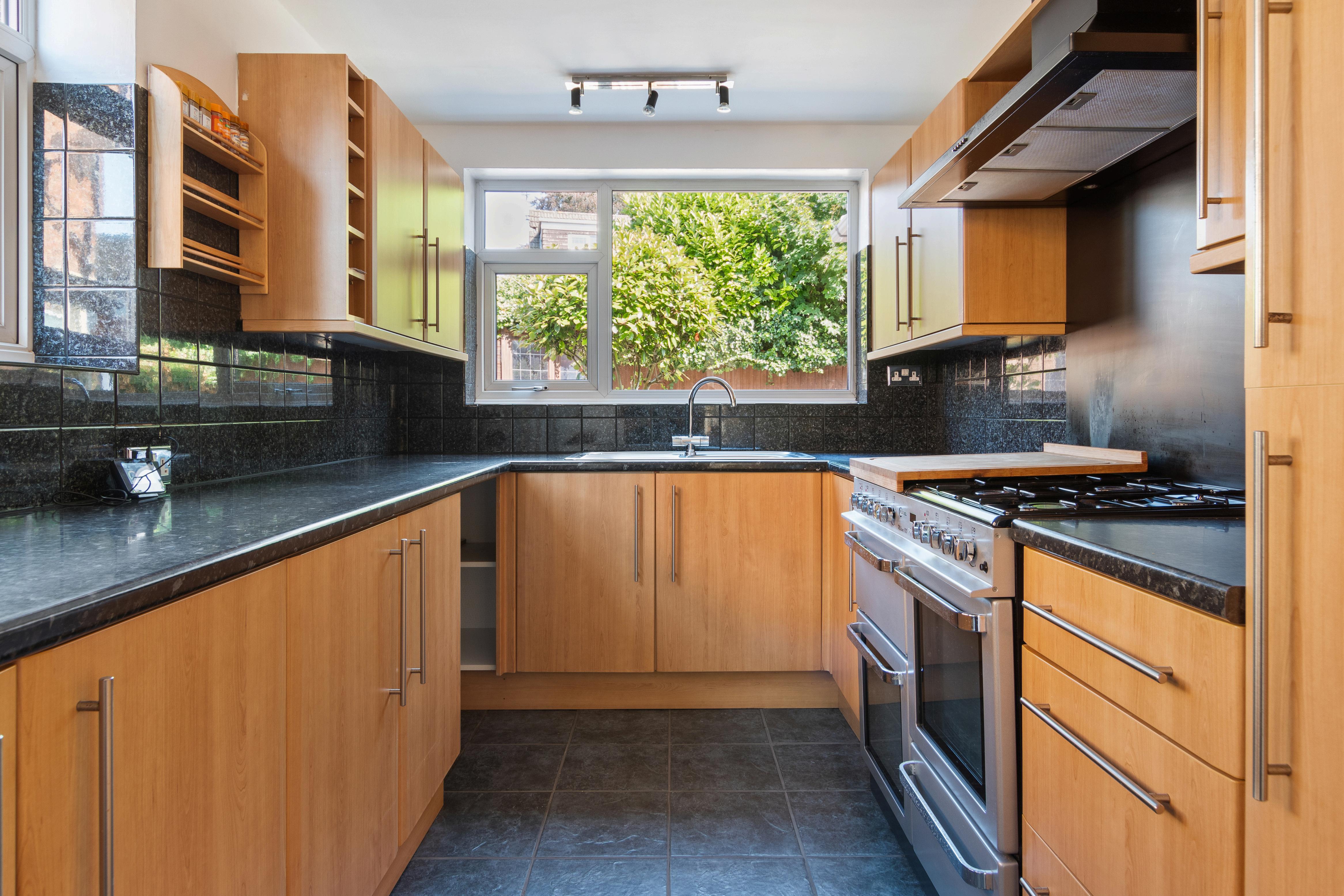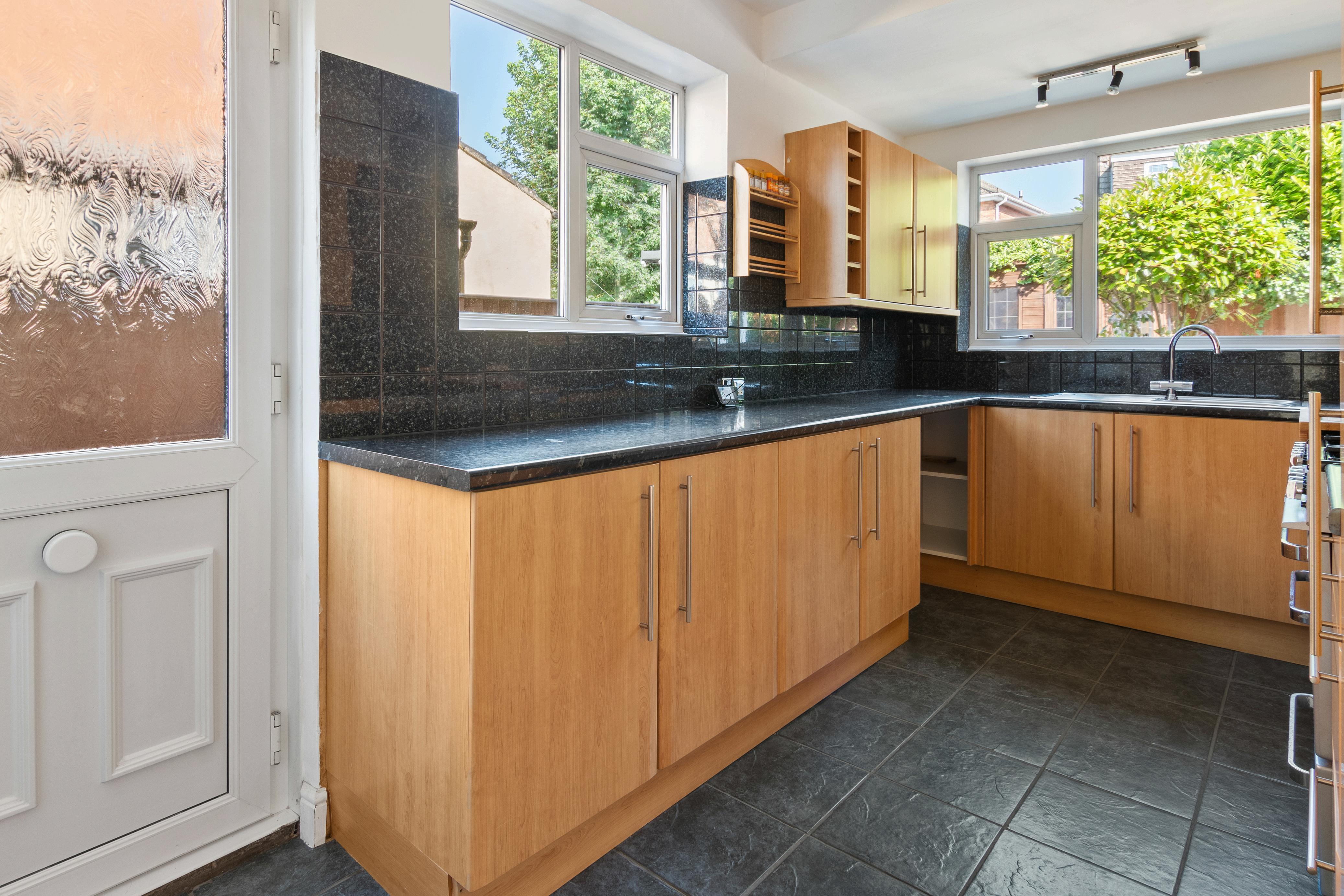 Modern Kitchen: The well-appointed kitchen features a range of base and wall units, providing ample storage and workspace.