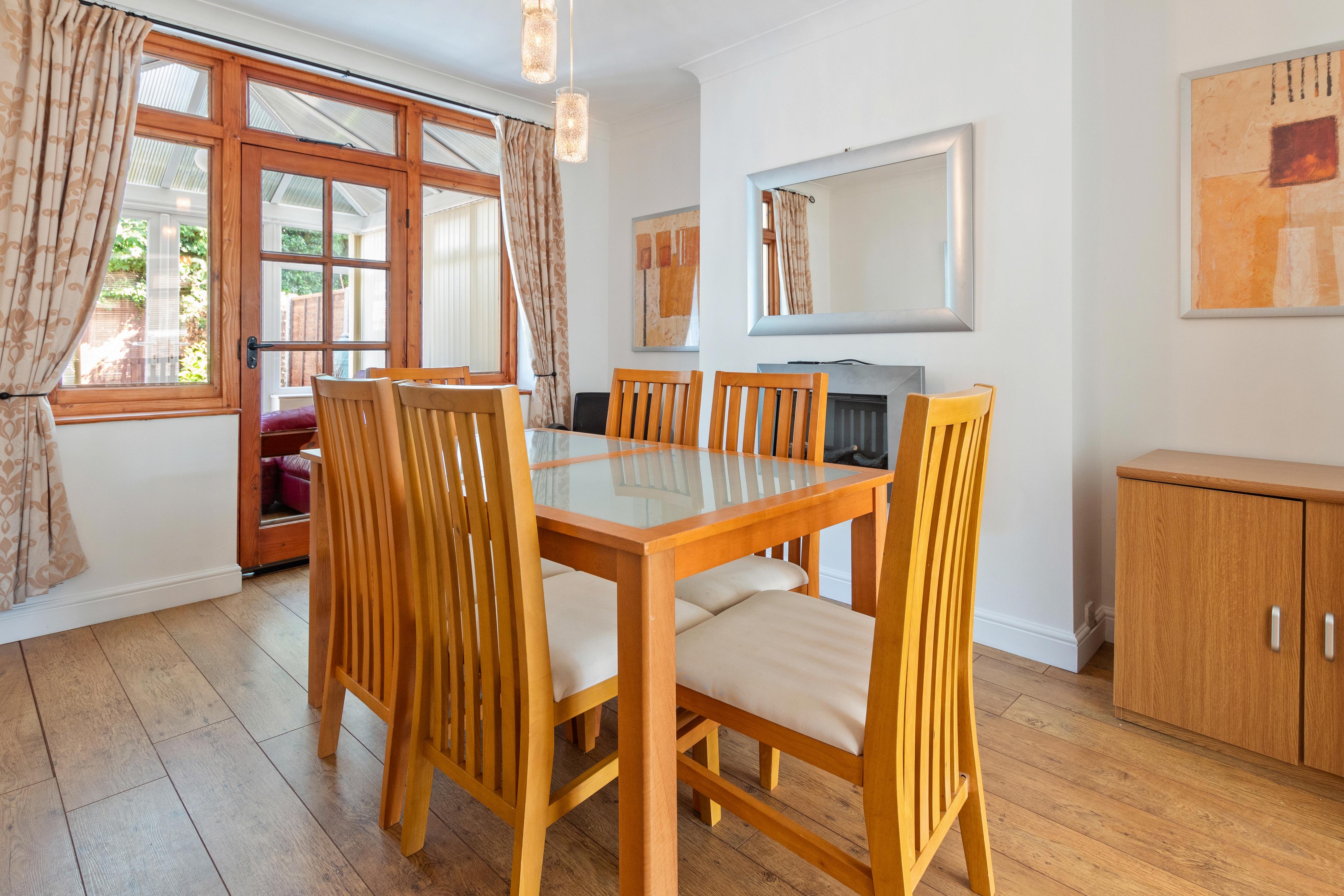 Spacious Living Areas: The ground floor boasts a welcoming entrance hall leading to a bright and airy lounge with a beautiful bay window and feature fireplace. The lounge seamlessly flows into the dining room through elegant folding doors, creating a versatile space that can double as a second living room. The dining room extends into a sunlit conservatory, perfect for enjoying a morning coffee or a relaxing evening.