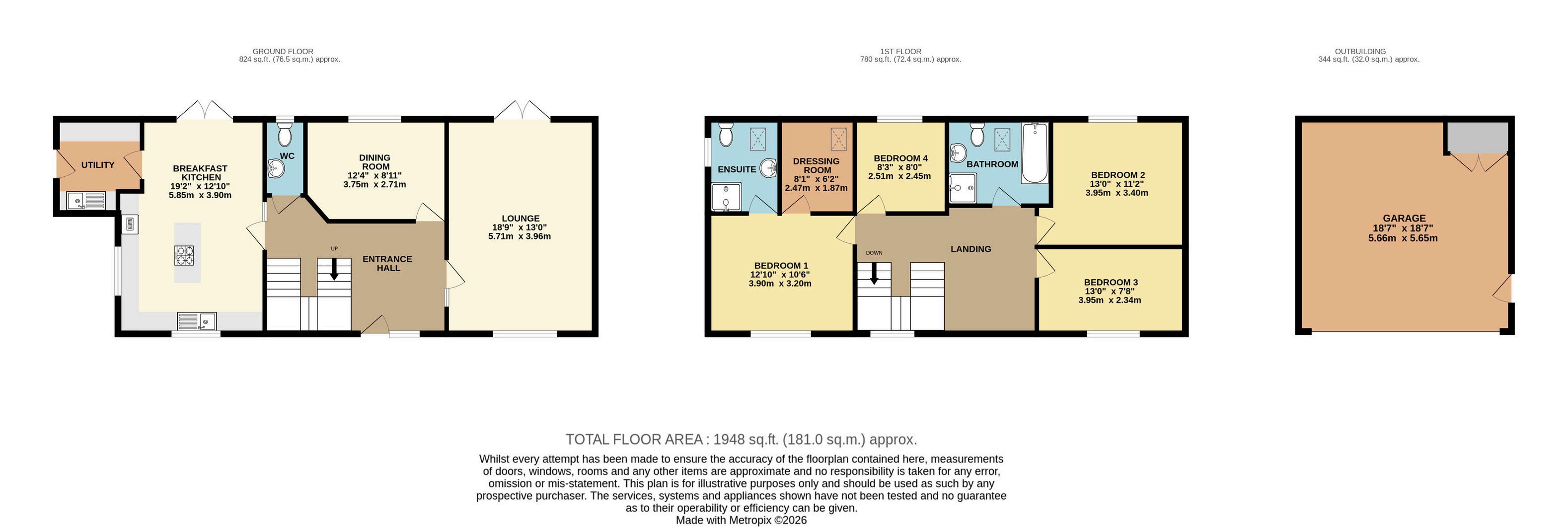 Upstairs offers four well-proportioned bedrooms including a principal suite with dressing room and ensuite, plus a contemporary family bathroom with freestanding bath and separate shower. The layout provides both comfort and flexibility for modern family living.
