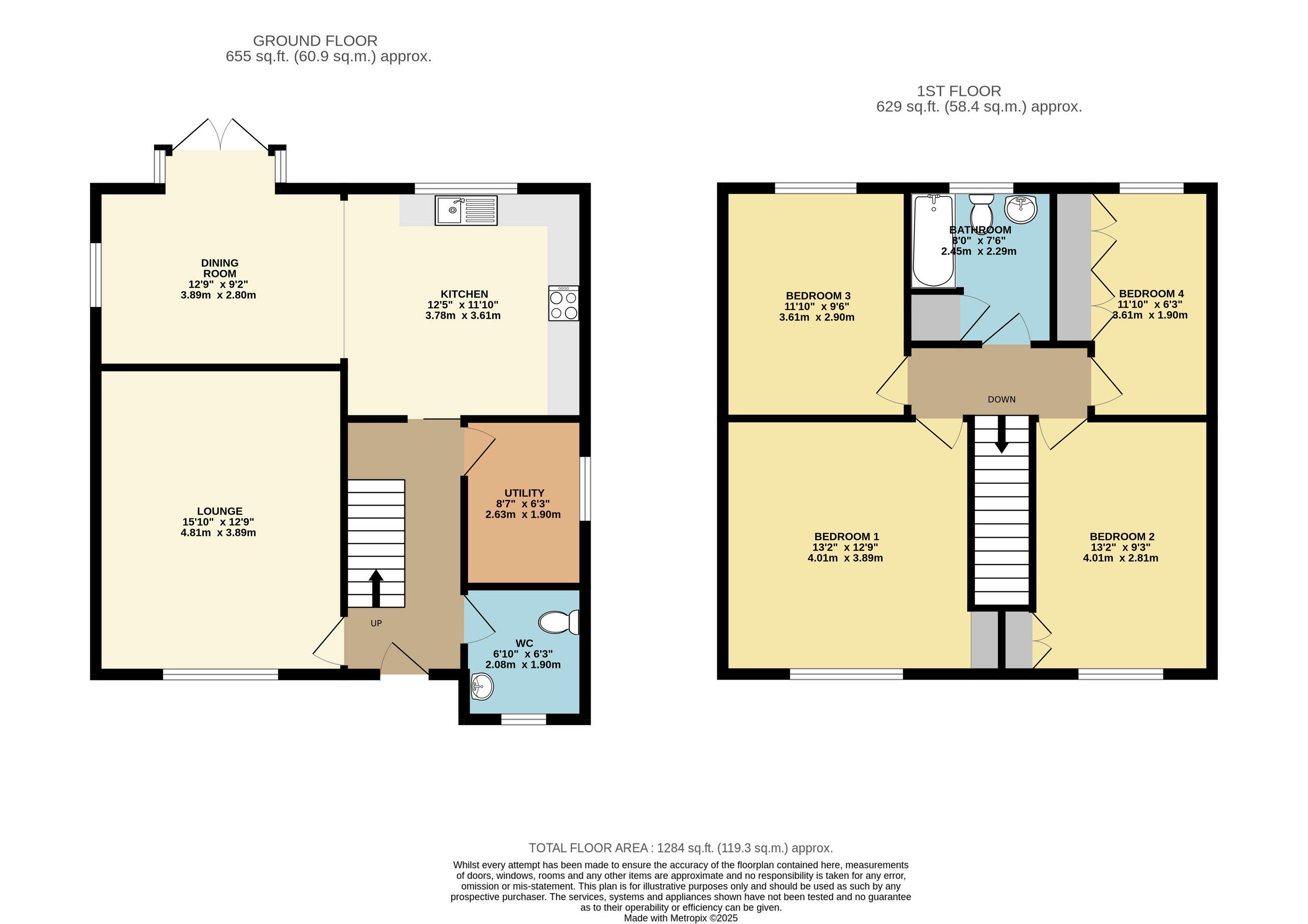 Upstairs, the panelled staircase leads to four generously sized bedrooms, two of which benefit from fitted storage. The family bathroom is designed with modern elegance, featuring a bath with shower over, a vanity sink and WC unit, along with a built-in storage cupboard for added convenience.