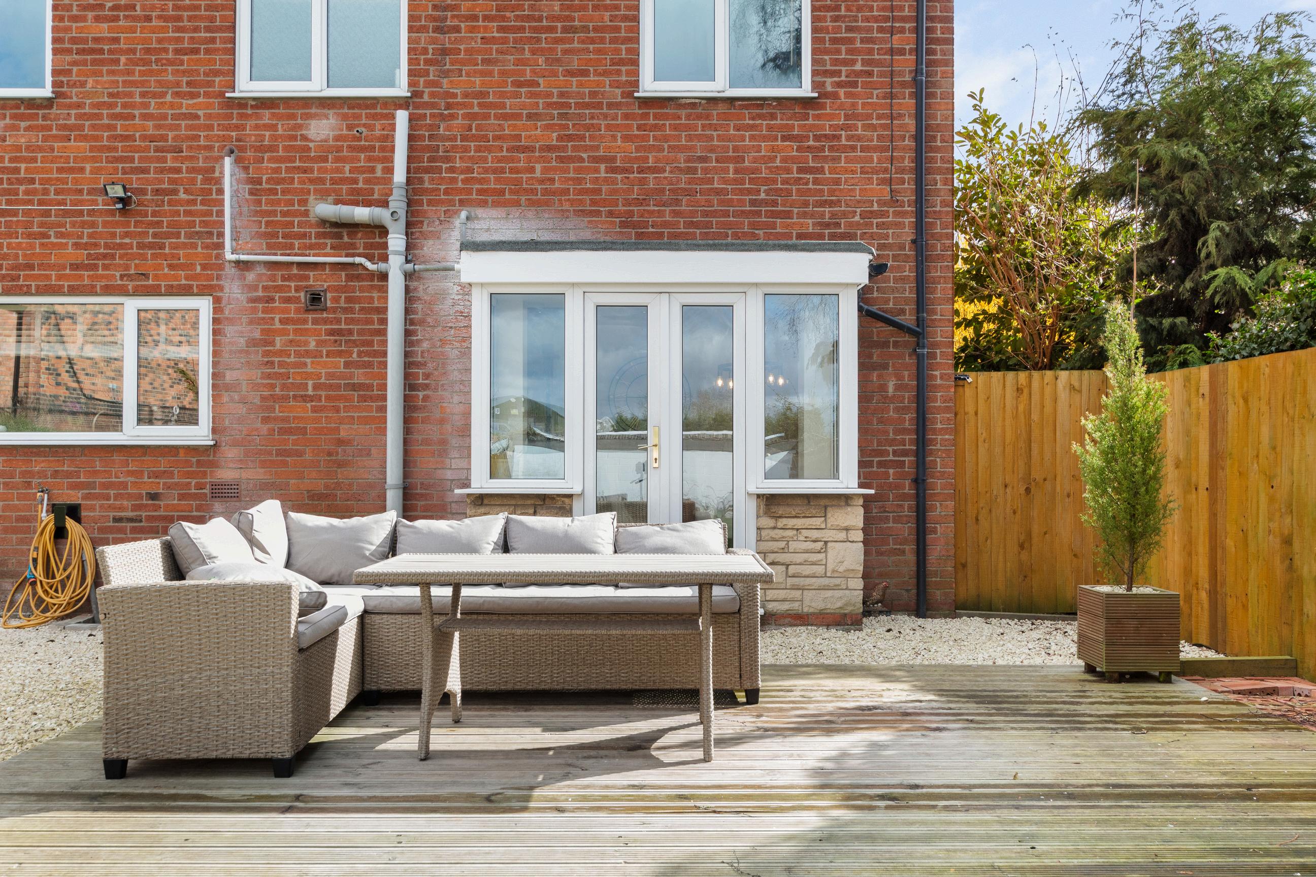 Externally, the property boasts a neatly lawned front garden, enclosed by a low wall, alongside a driveway providing off-road parking. To the side, the converted garage offers ample storage but can easily be reinstated as a functional garage if desired. The large rear garden is fully enclosed with wall and fencing, making it a safe and private haven for families. With a decked seating area and a gravel patio, it provides the perfect space for outdoor entertaining.