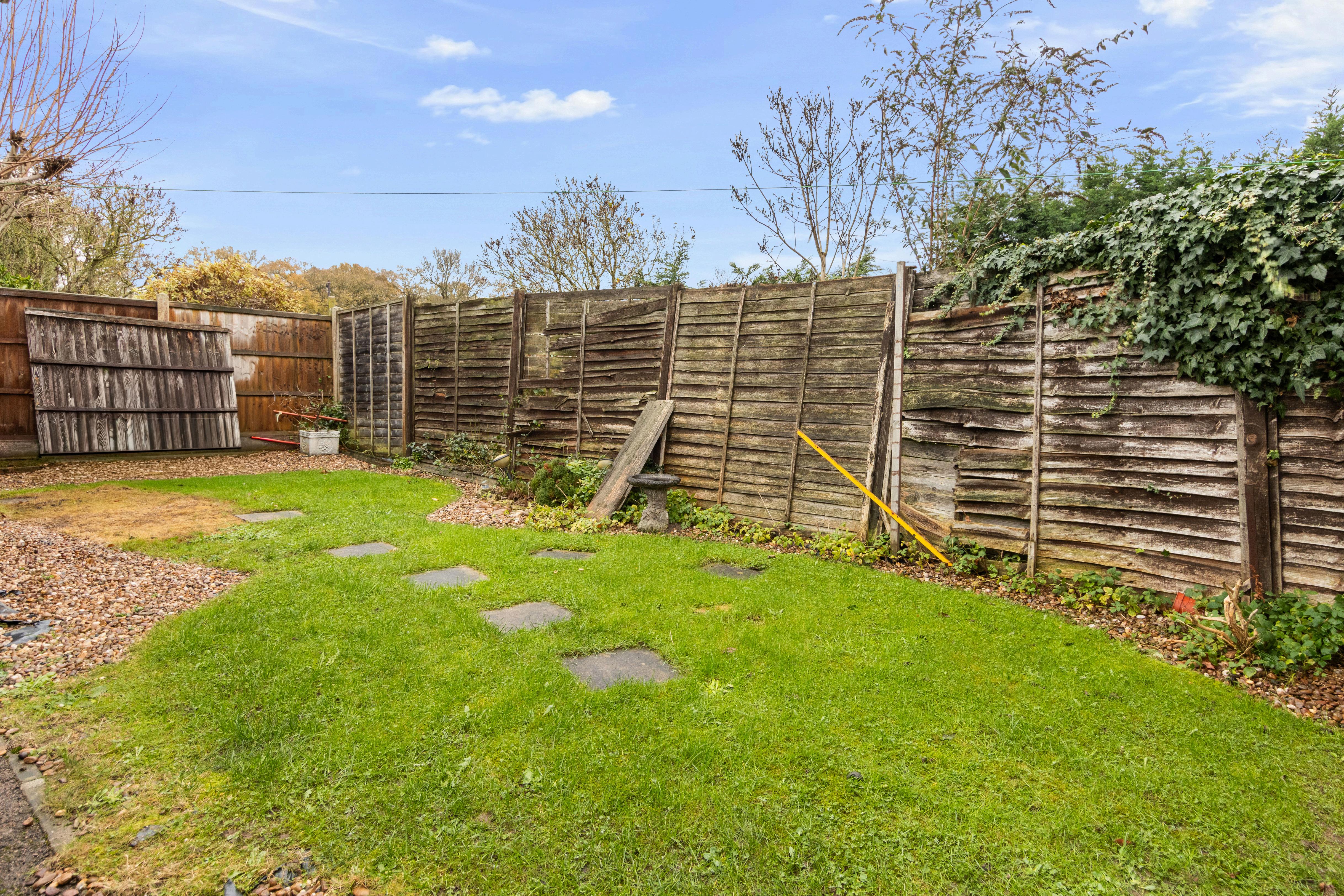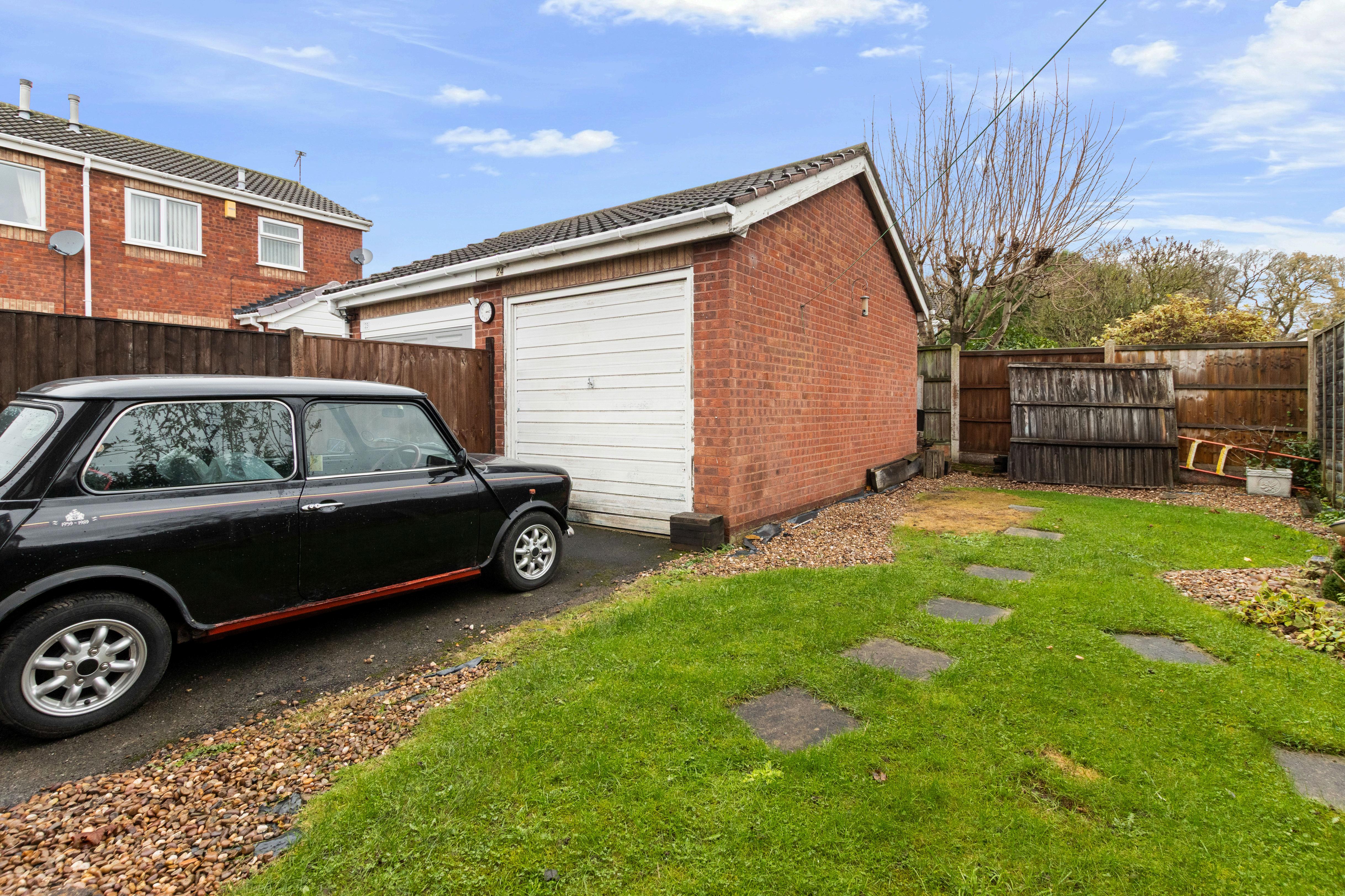 The property benefits from a private rear garden with lawn and seating areas, ideal for relaxing or entertaining. There is also a garage and driveway offering secure parking and additional storage.