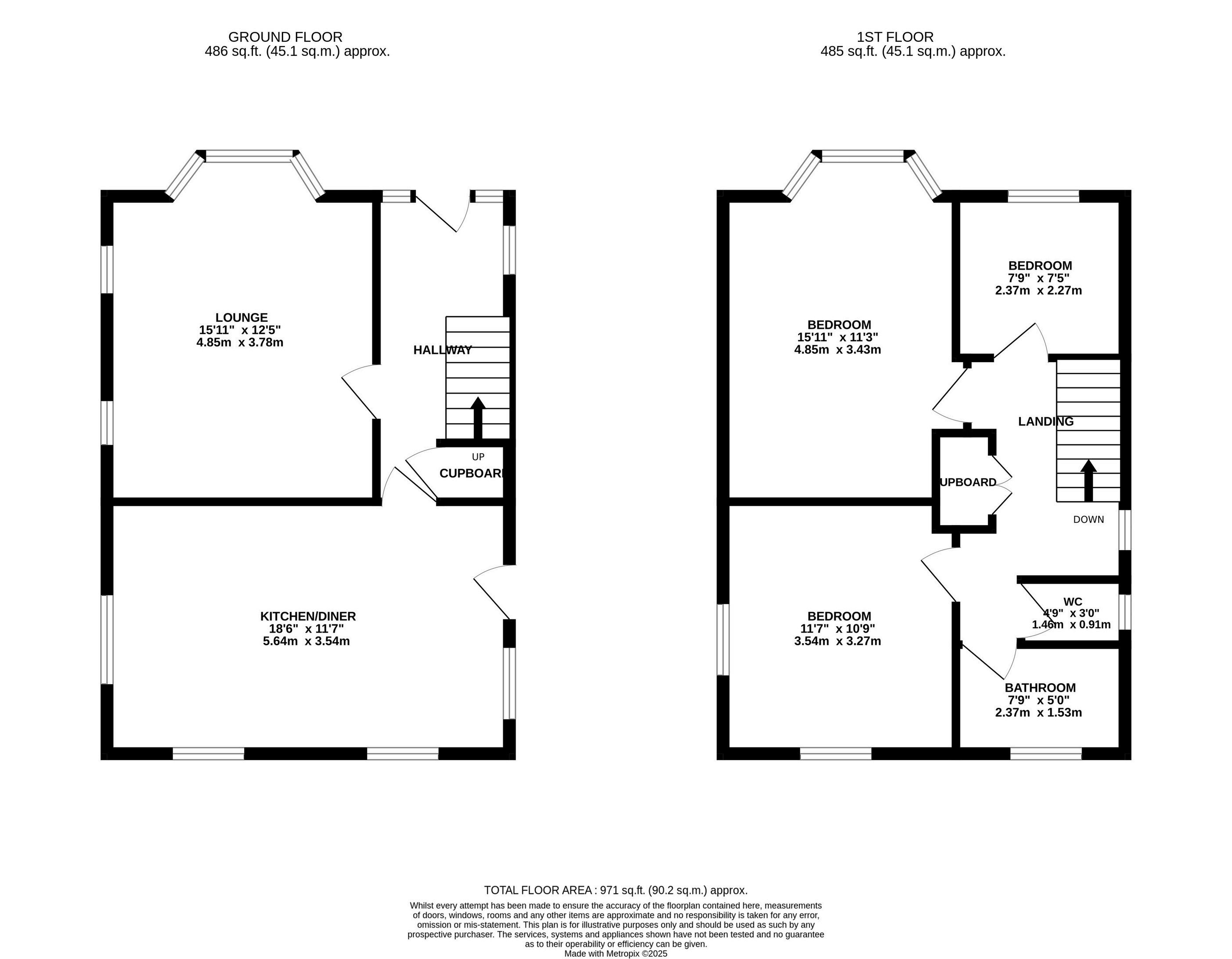 Located in the heart of DN34, this detached three-bedroom home offers generous proportions across two floors and presents an exciting opportunity for buyers seeking a property with potential. The ground floor features a bright lounge with a living flame gas fire and a spacious kitchen/diner, ideal for entertaining or family living. A central hallway and convenient storage cupboard complete the layout. Upstairs, you'll find three well-sized bedrooms, including a large principal bedroom mirroring the lounge dimensions, a second double, and a third single bedroom. The family bathroom and separate WC add flexibility for busy households. With a total floor area of approximately 971 sq ft (90.2 sq m), the home offers ample space to modernise and personalise.