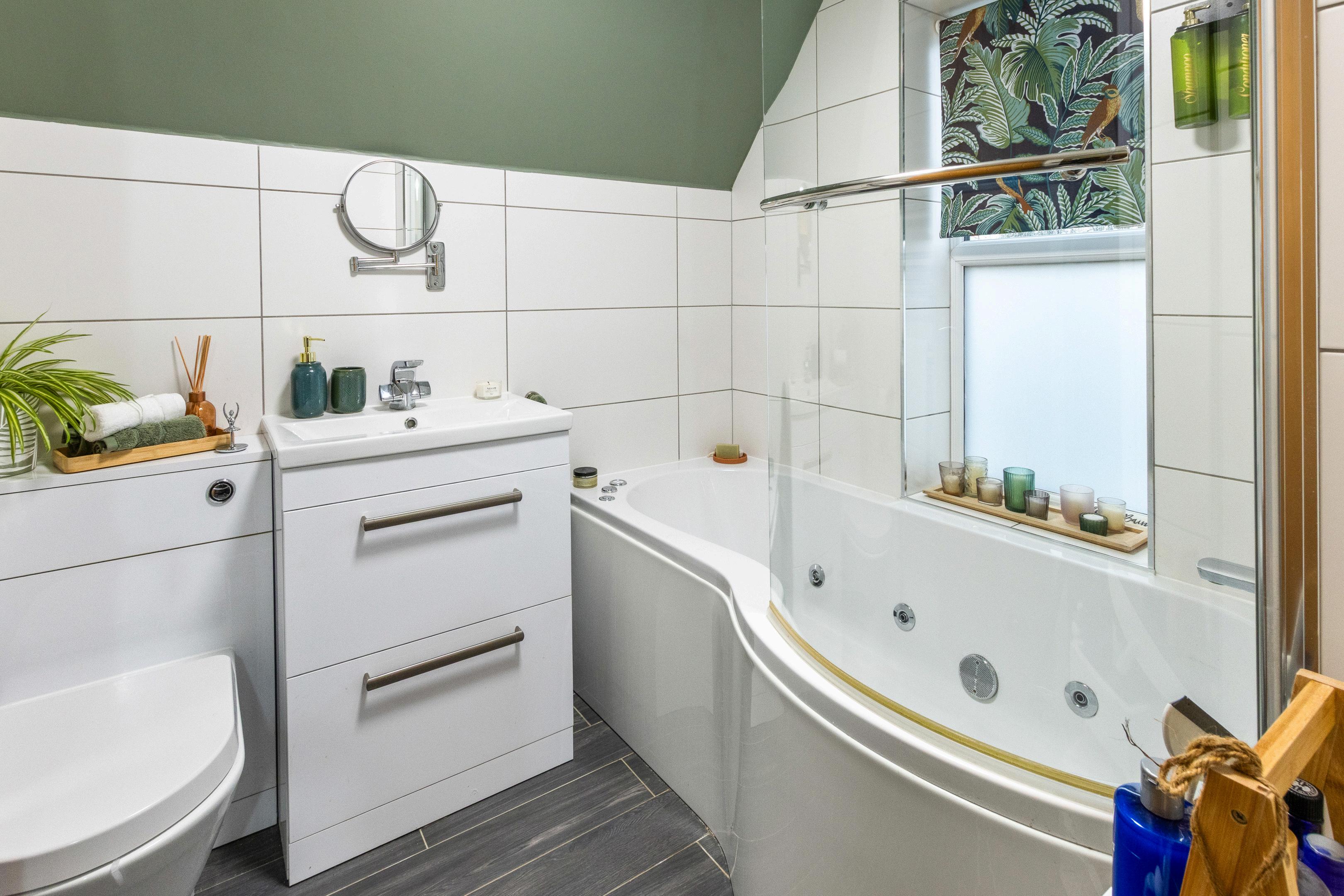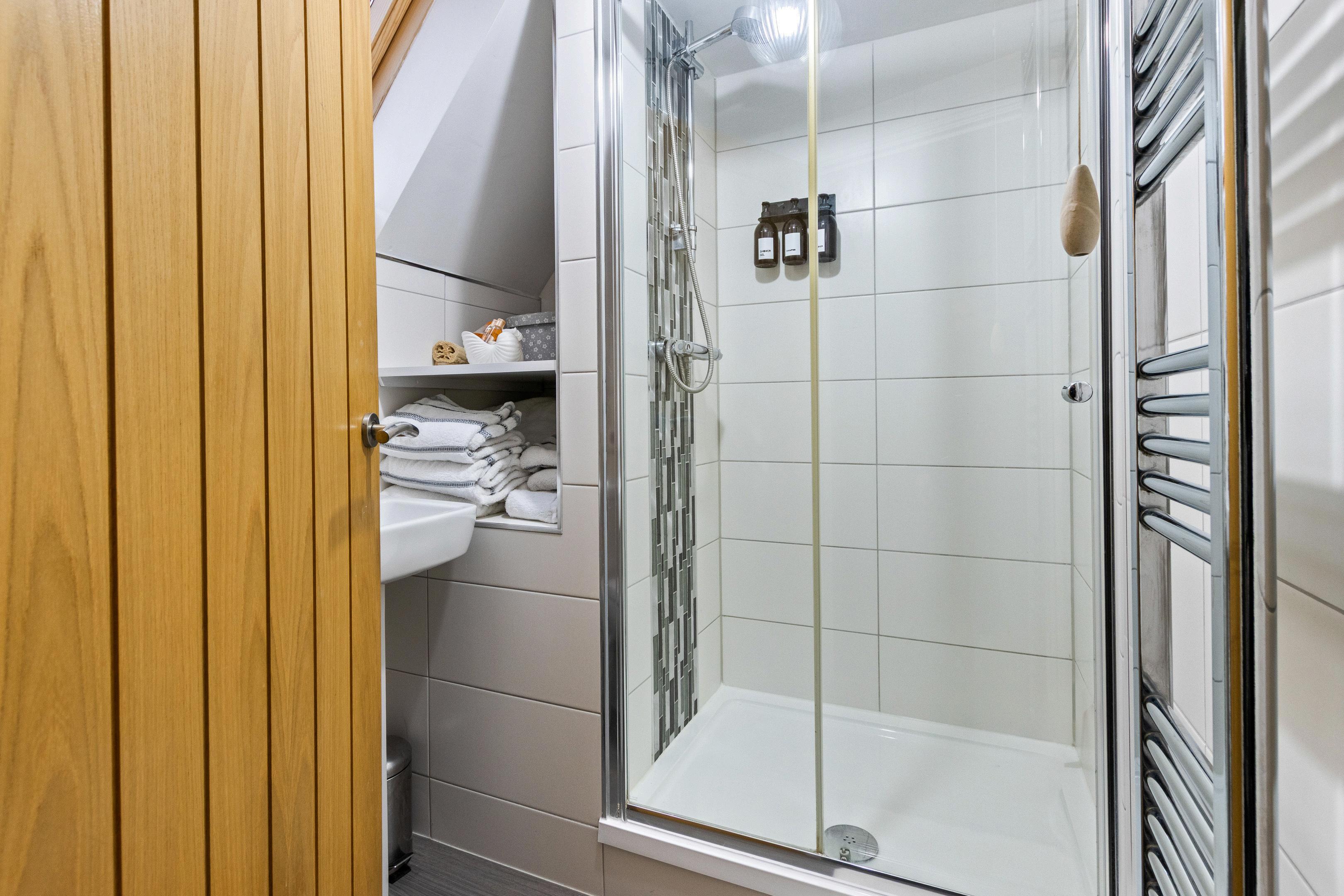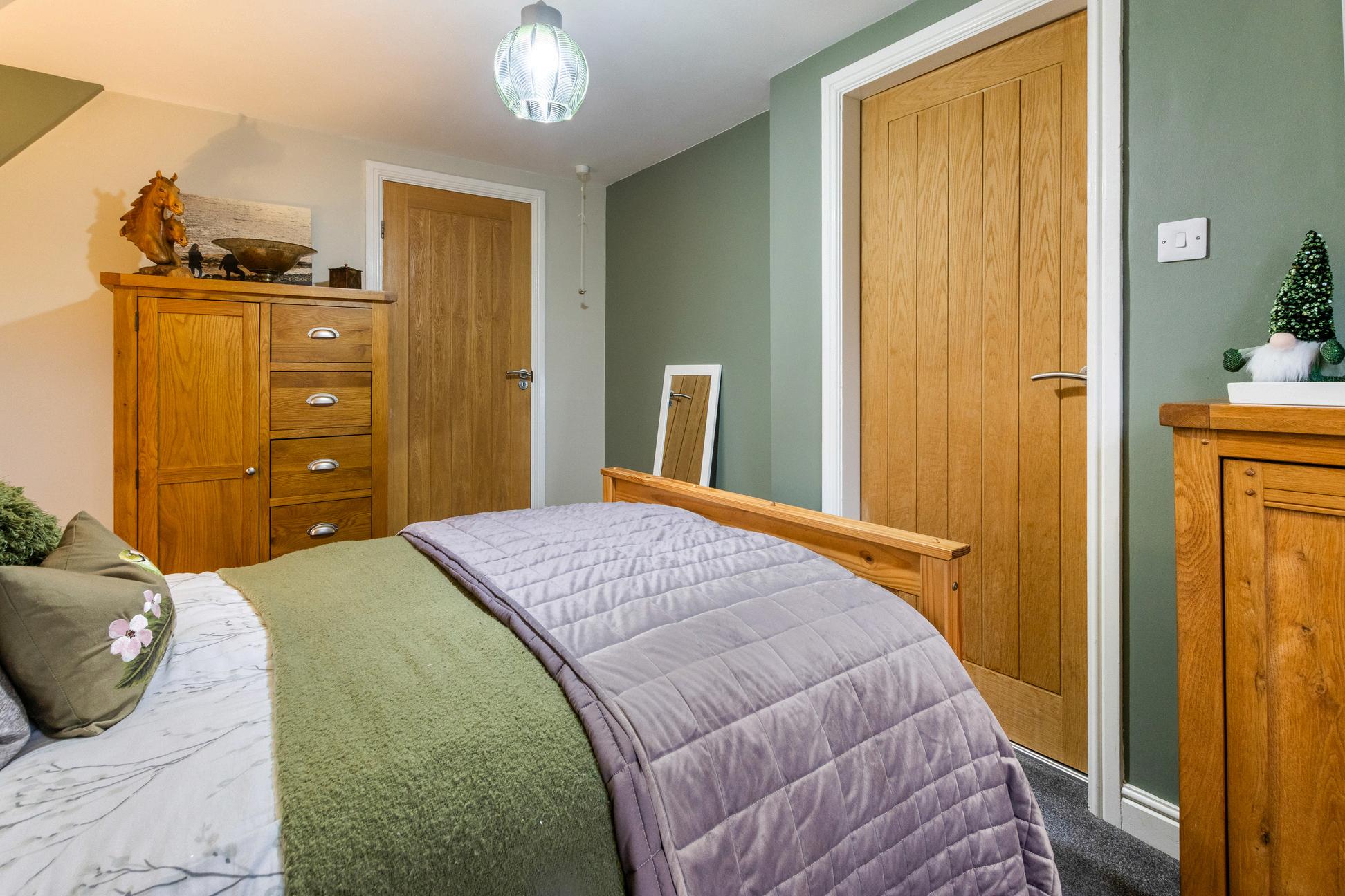 One of the property’s three bedrooms is located on the ground floor, offering excellent flexibility for those seeking single-level living or guest accommodation. This bedroom benefits from its own en-suite bathroom, making it particularly well suited for multigenerational living.
