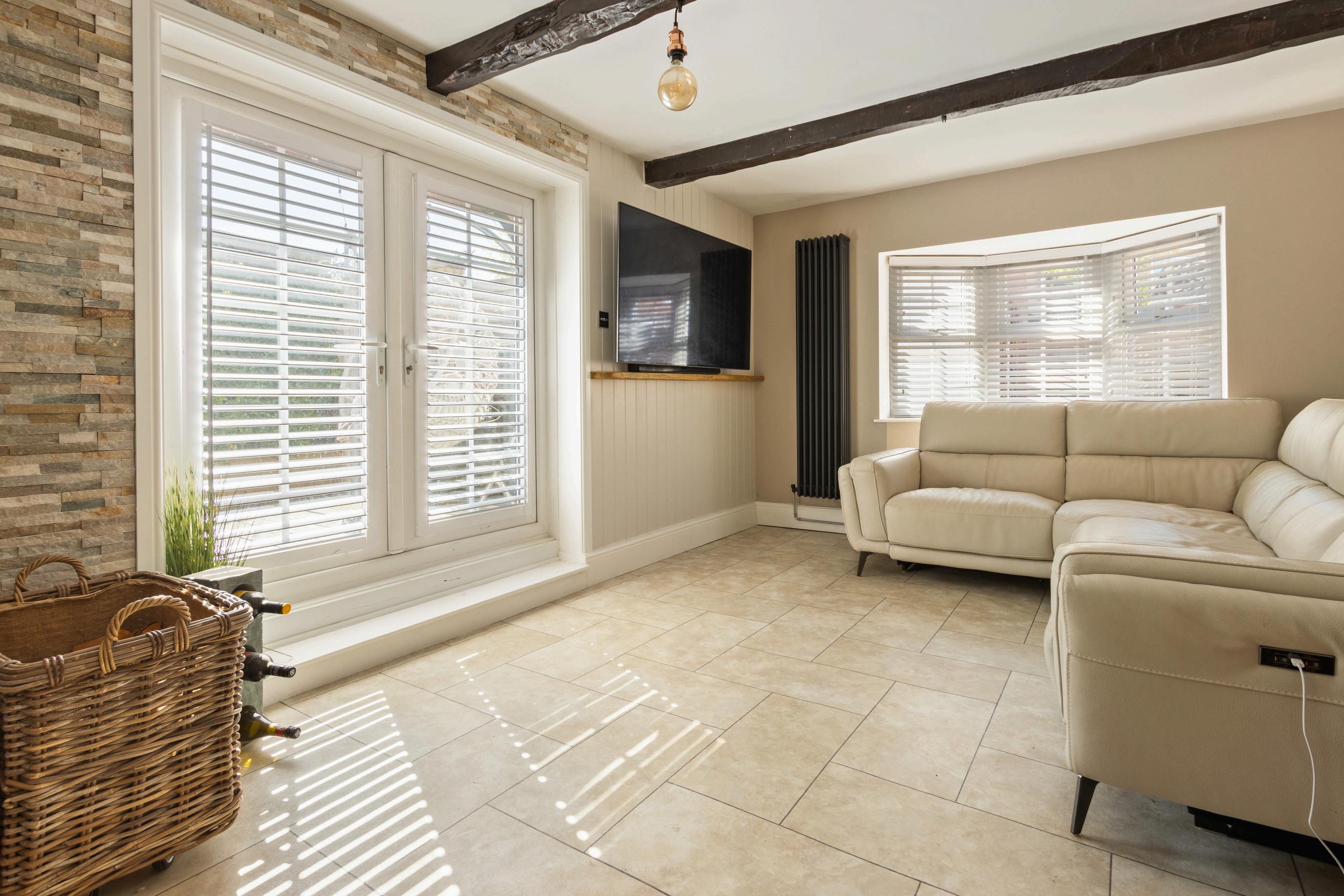 From the moment you arrive, the property exudes character, with its attractive frontage, gravel pathway, and mature front garden leading to a welcoming entrance. Inside, the layout flows effortlessly, combining original features such as exposed beams and log burners with stylish modern finishes throughout.