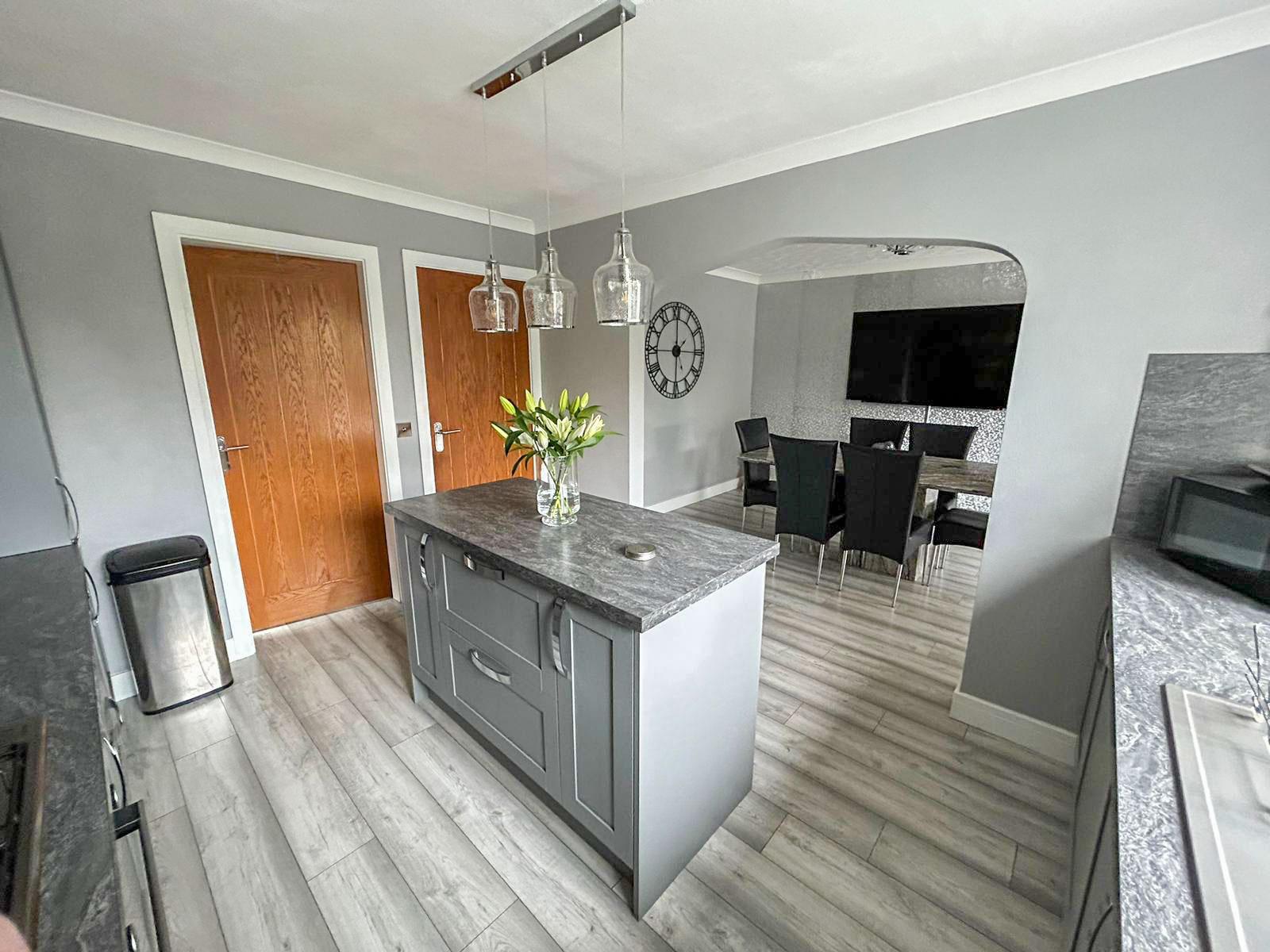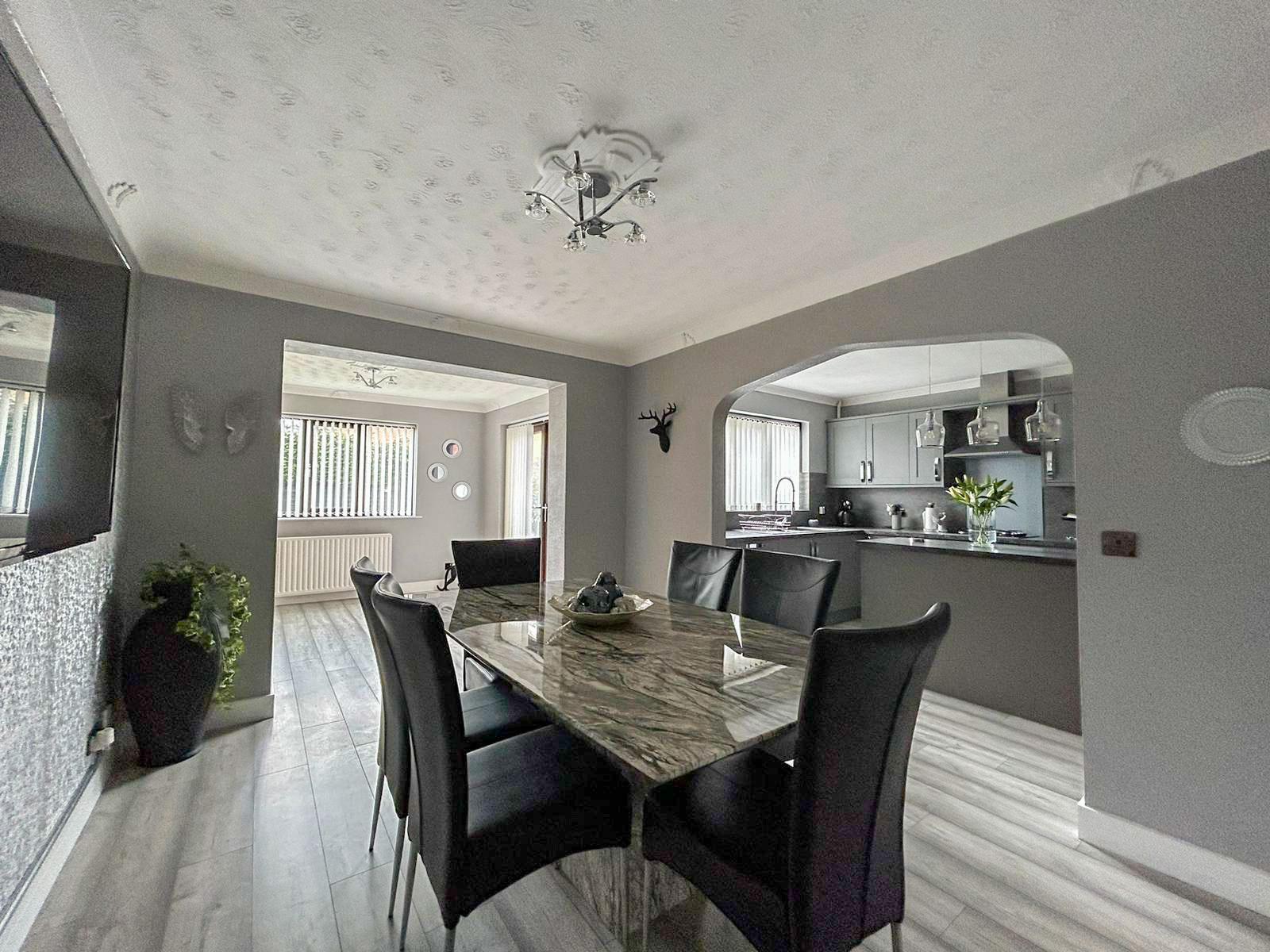 Step inside into a welcoming hallway with the staircase to first floor accommodation. The first door you reach is a convenient well presented downstairs W/C, with the next door opening you up to the ever so spacious well fitted modern kitchen and diner. As you walk on through you reach the open planned reception room attached to the dining room, with well built in double doors leading onto the rear garden patio area. You then have access to another good sized reception room with large wooden double doors. As you come back through the kitchen you have a separate utility room which leads you out to the rear garden. If you come out the kitchen and down the hallway you have the large front facing lounge that is well decorated with a stunning fireplace.