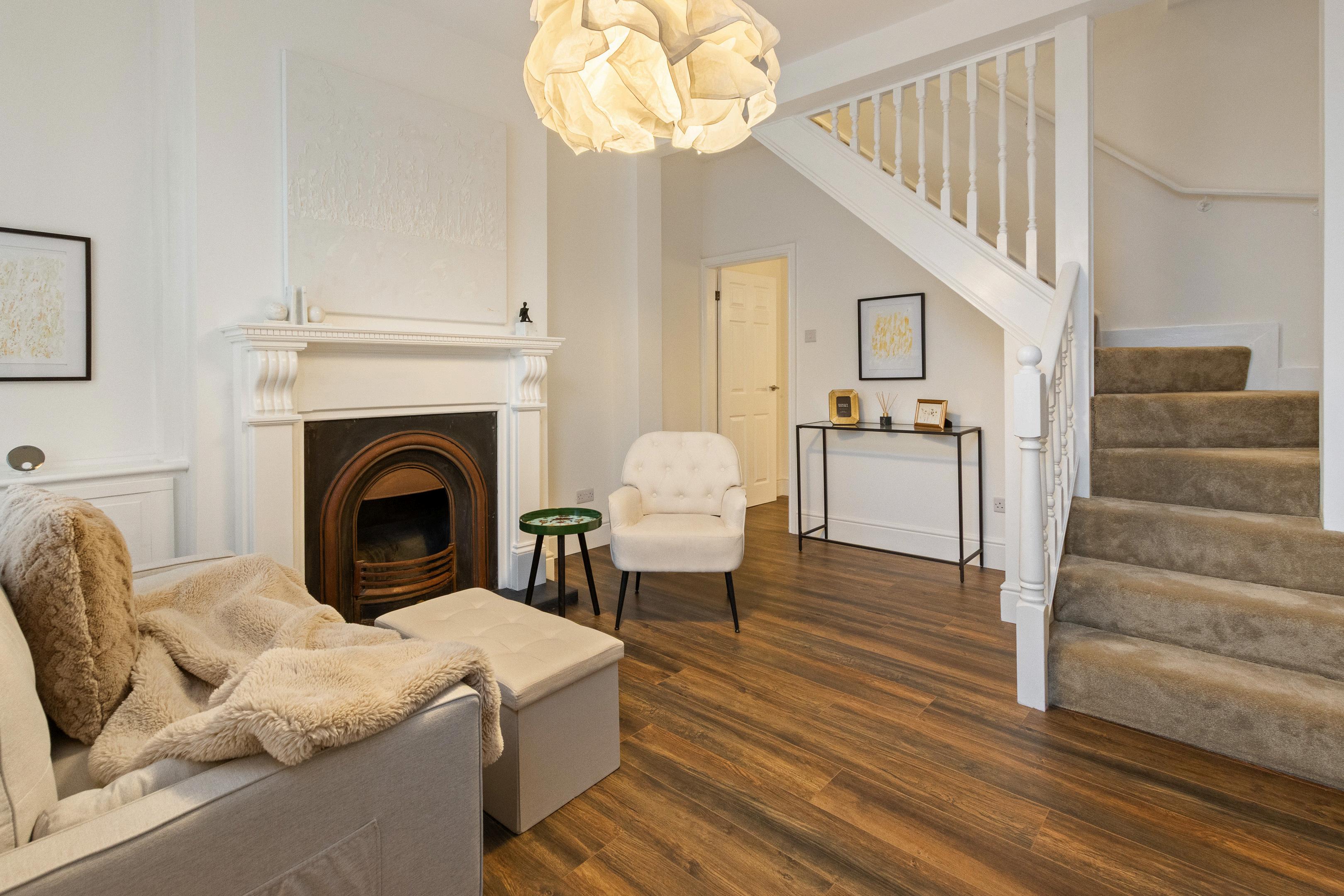 Step through the front door and it’s immediately clear this home has undergone a comprehensive scheme of refurbishment, creating a smart, modern finish that feels ready to enjoy from day one. The lounge is a brilliant first impression: bright, well-proportioned and finished with wood-effect flooring that runs beautifully with the neutral décor. A standout feature fireplace adds character and a natural focal point, giving the room that cosy “evening on the sofa” feel without sacrificing the clean, contemporary look.
