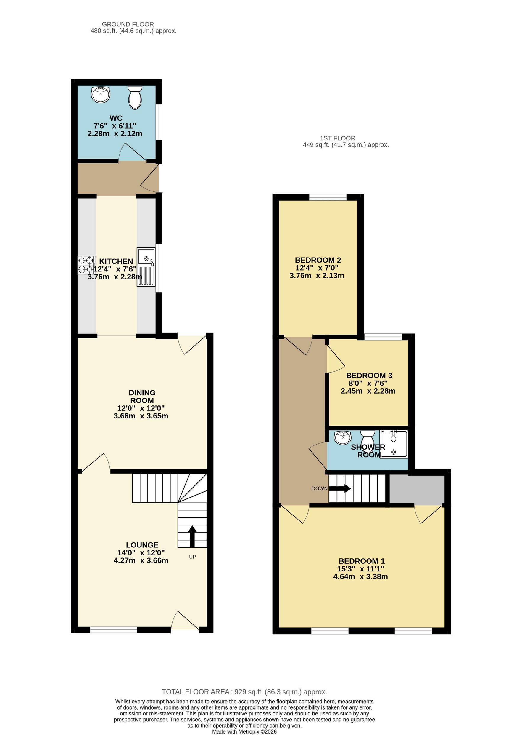 Freshly refurbished and ready to move straight into, this smart 3-bedroom terrace offers generous space (approx. 929 sq.ft), two reception rooms, a stylish shaker kitchen with utility area, plus a ground floor WC and modern shower room. Ideal for first-time buyers and young families.