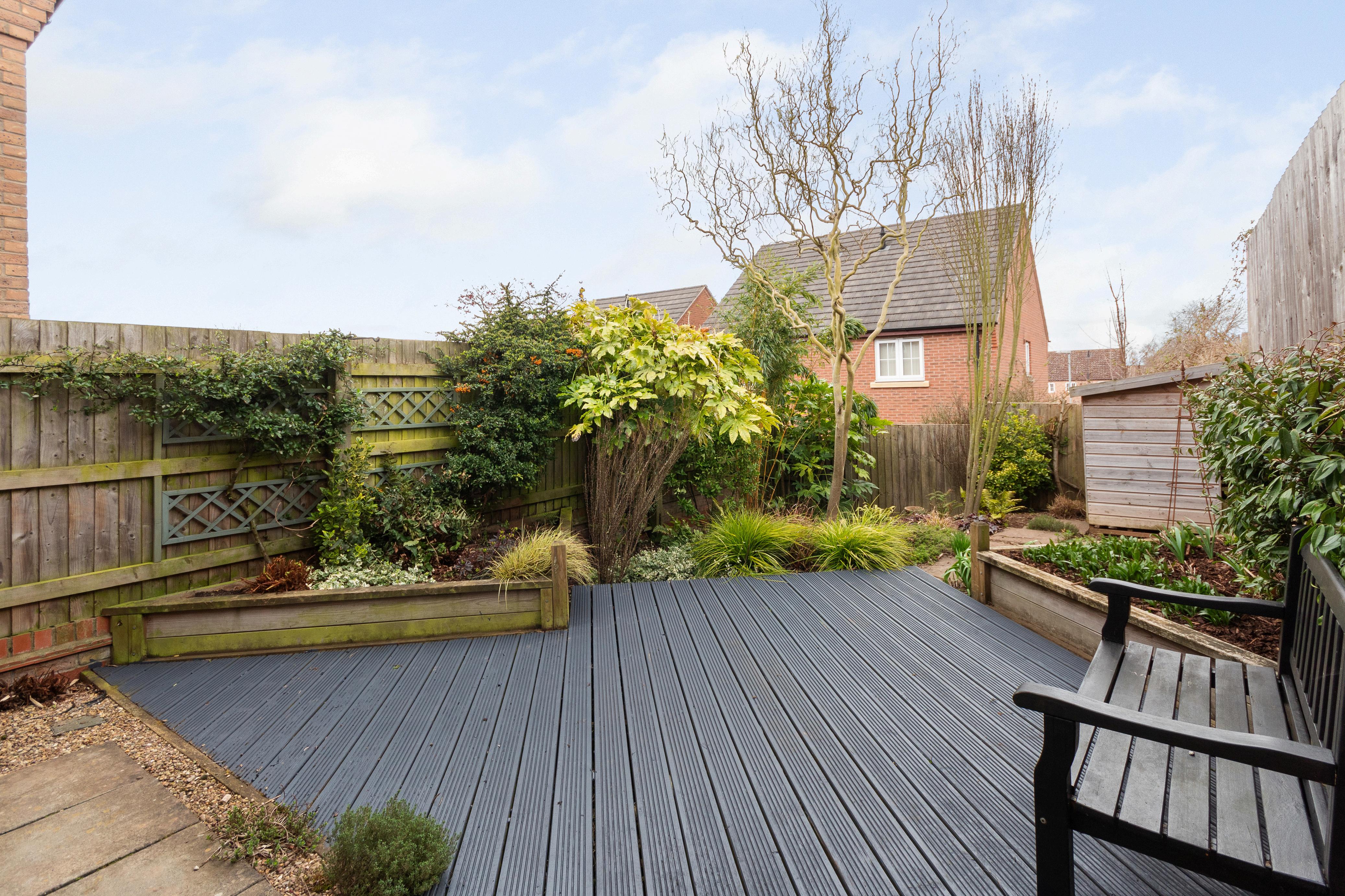 Externally, the property boasts a driveway with off-road parking, ensuring hassle-free convenience. A side gate leads to the west-facing rear garden, which features a sun-drenched decked patio, raised planters, and a timber garden shed, making it the perfect space for entertaining or unwinding.