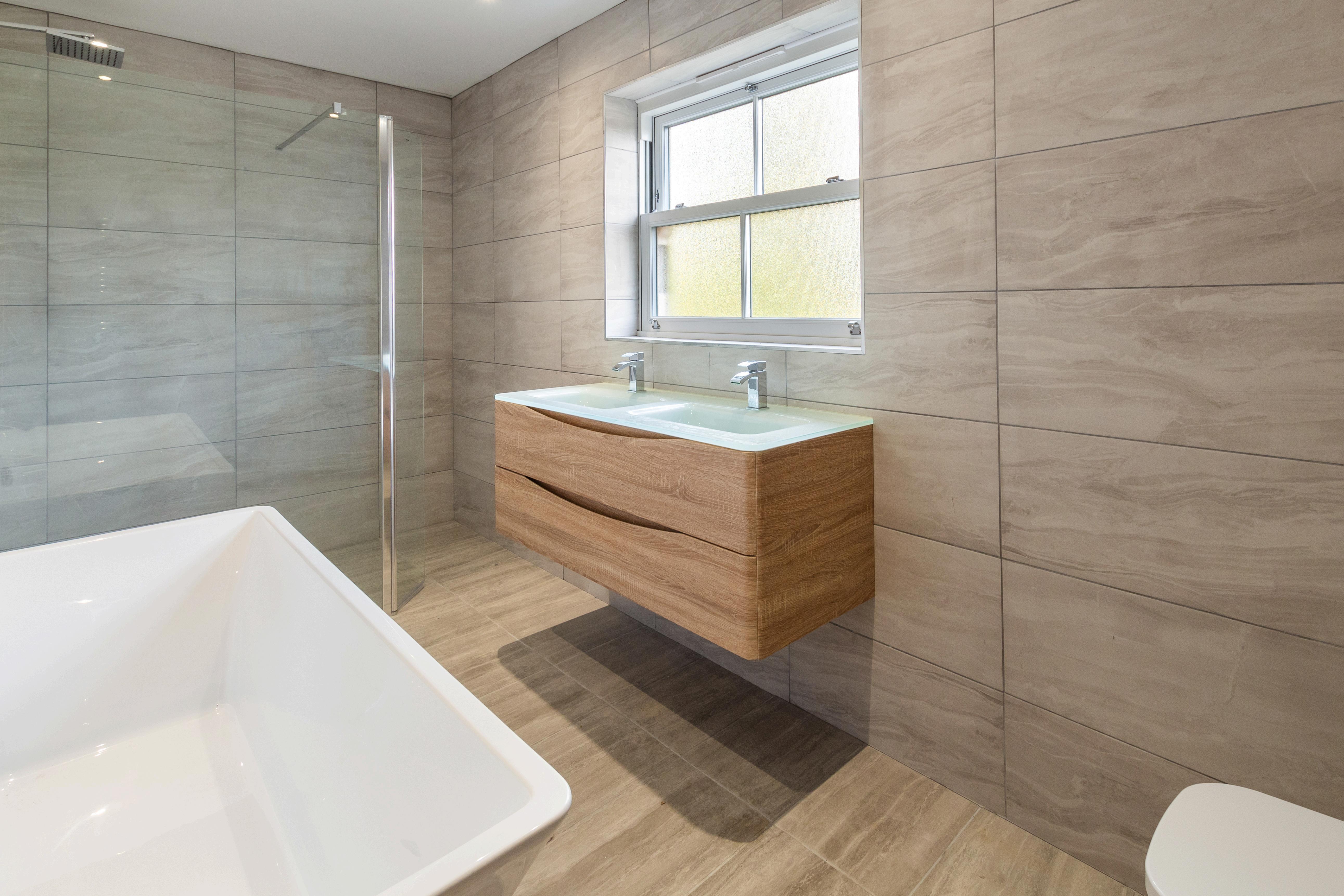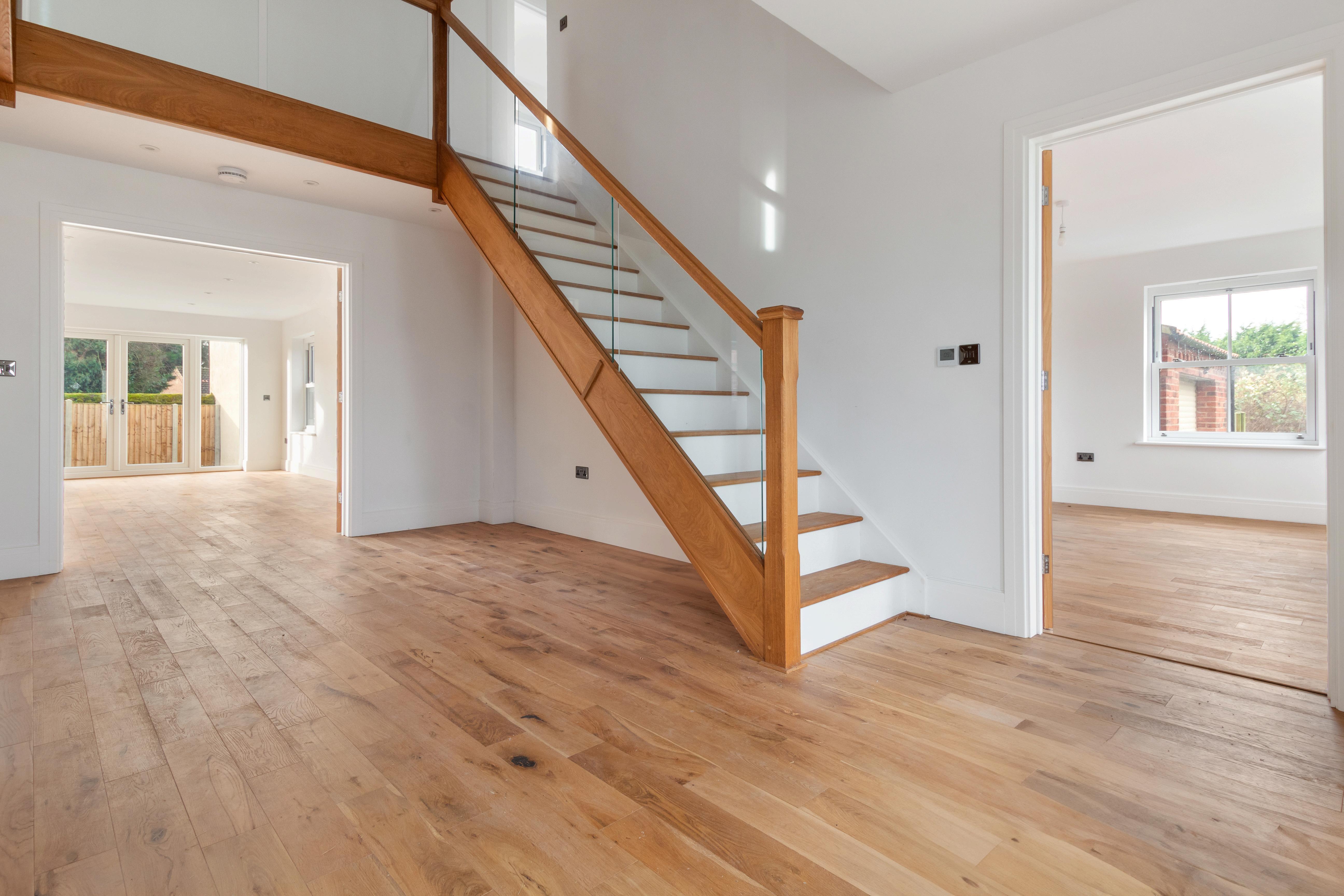 The property sits within wra grounds, along with a detache and private driveway. A nod to local provenance incorporated within the prope the use of Hampton Rural Blen Clay Pantile Marley “Lincoln” ti sandstone riven Modak Path ar North, South & Western edge house.