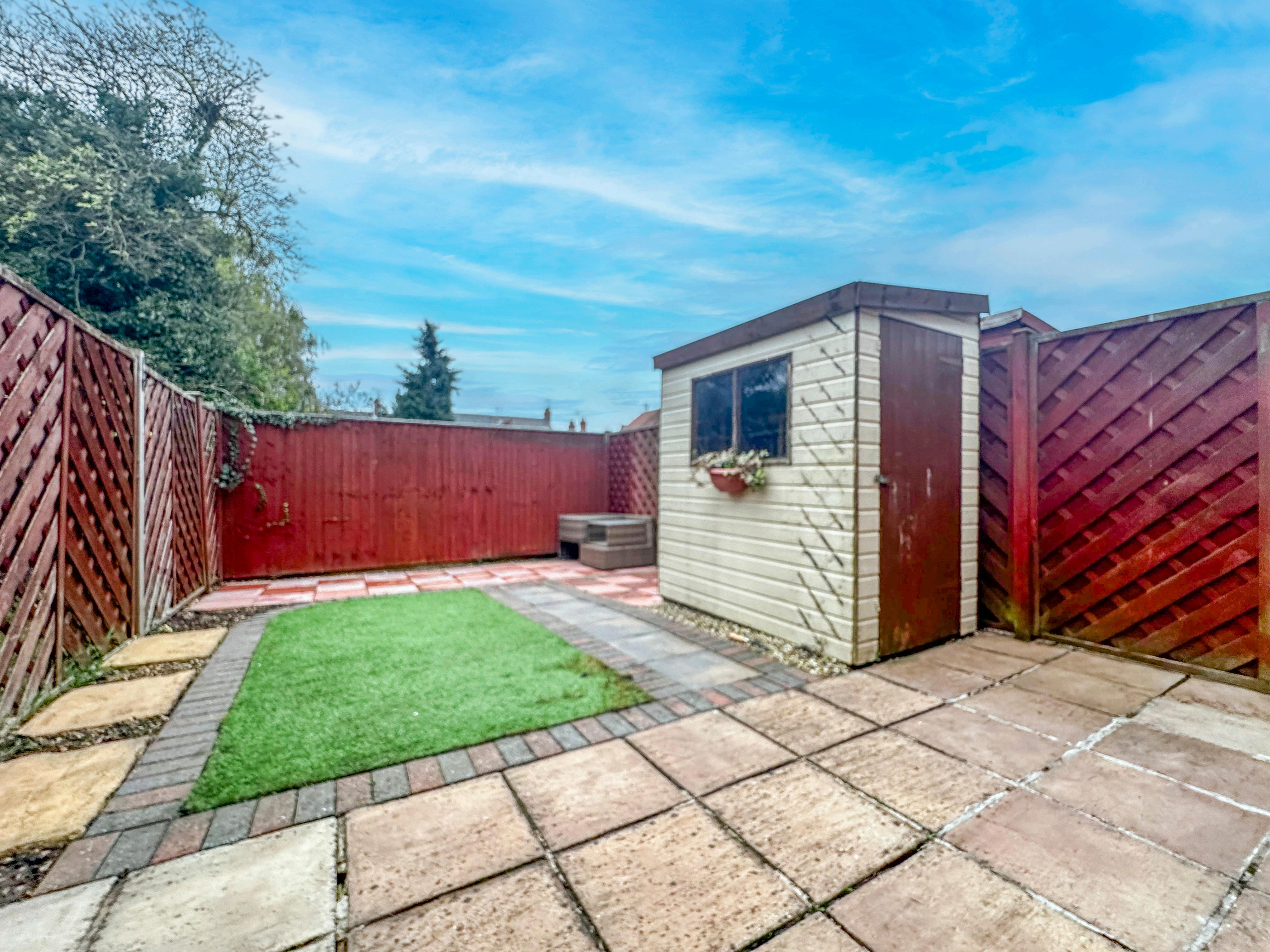 Step Inside As you step inside this lovely home you are greeted with a welcoming lounge with a staircase leading to the first floor. To the rear is a modern fitted kitchen/diner that benefits from a range of base and wall mounted high gloss cabinets with a stainless-steel built-in oven, a gas hob that is complimented with an extractor fan above, space for white goods and an access door leading to the garden. A handy downstairs cloakroom with a hand wash basin and W.C completes the ground floor. The first floor offers a rear-facing double bedroom, and an additional double bedroom to the front aspect. Both bedrooms are served by the partially tiled three-piece family bathroom that has a bath that is complimented with a shower above and a glazed shower screen, a hand wash basin and a W.C. Externally The front of the property benefits from an ample block paved driveway providing off-road parking and to the rear is a beautifully designed outdoor space, predominantly laid with artificial turf, offering minimal upkeep and year-round greenery. The extended patio area is perfect for entertaining friends and family. The garden is fully enclosed for privacy and security, and it’s finished with a charming timber garden shed for added storage.