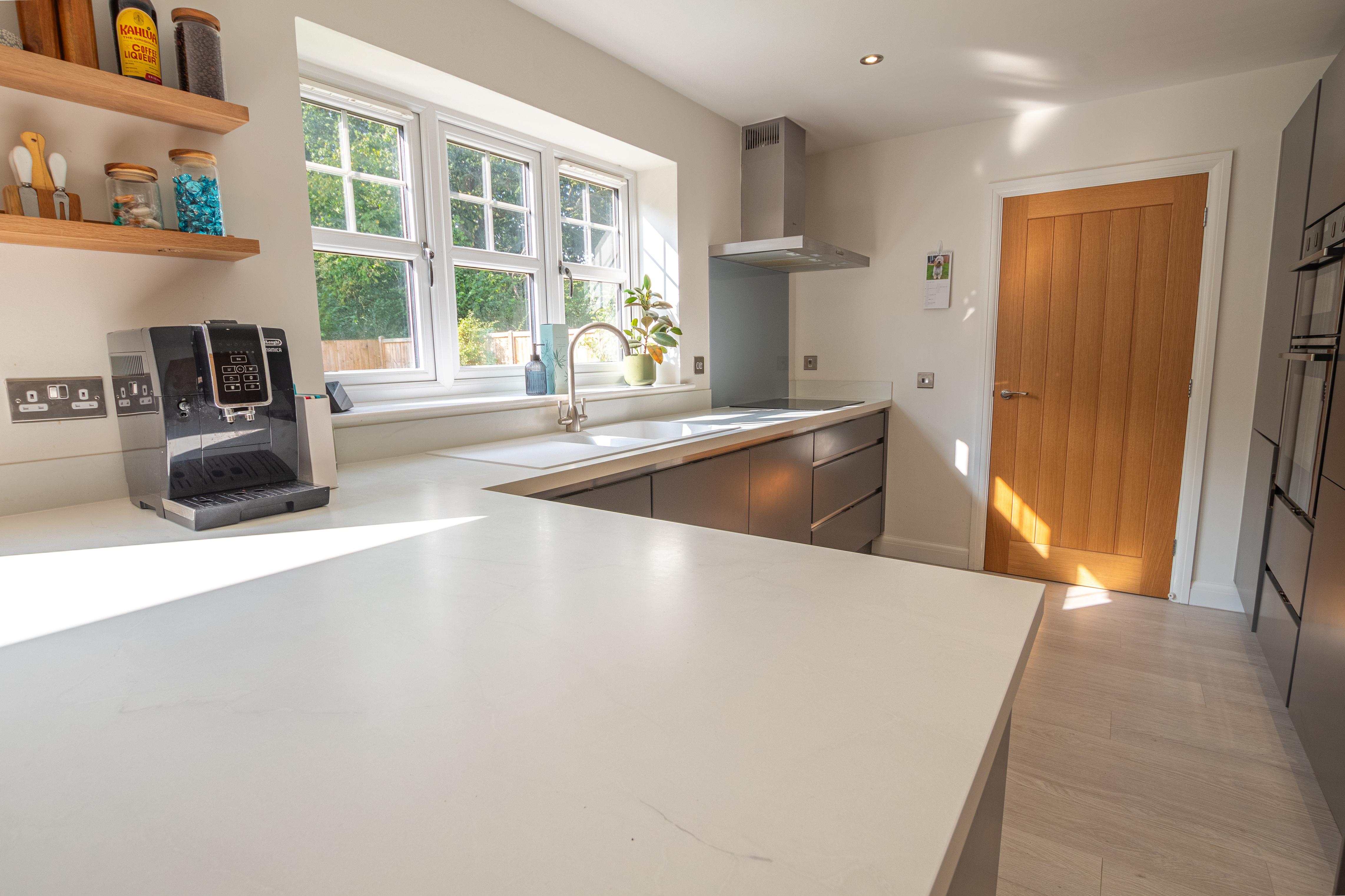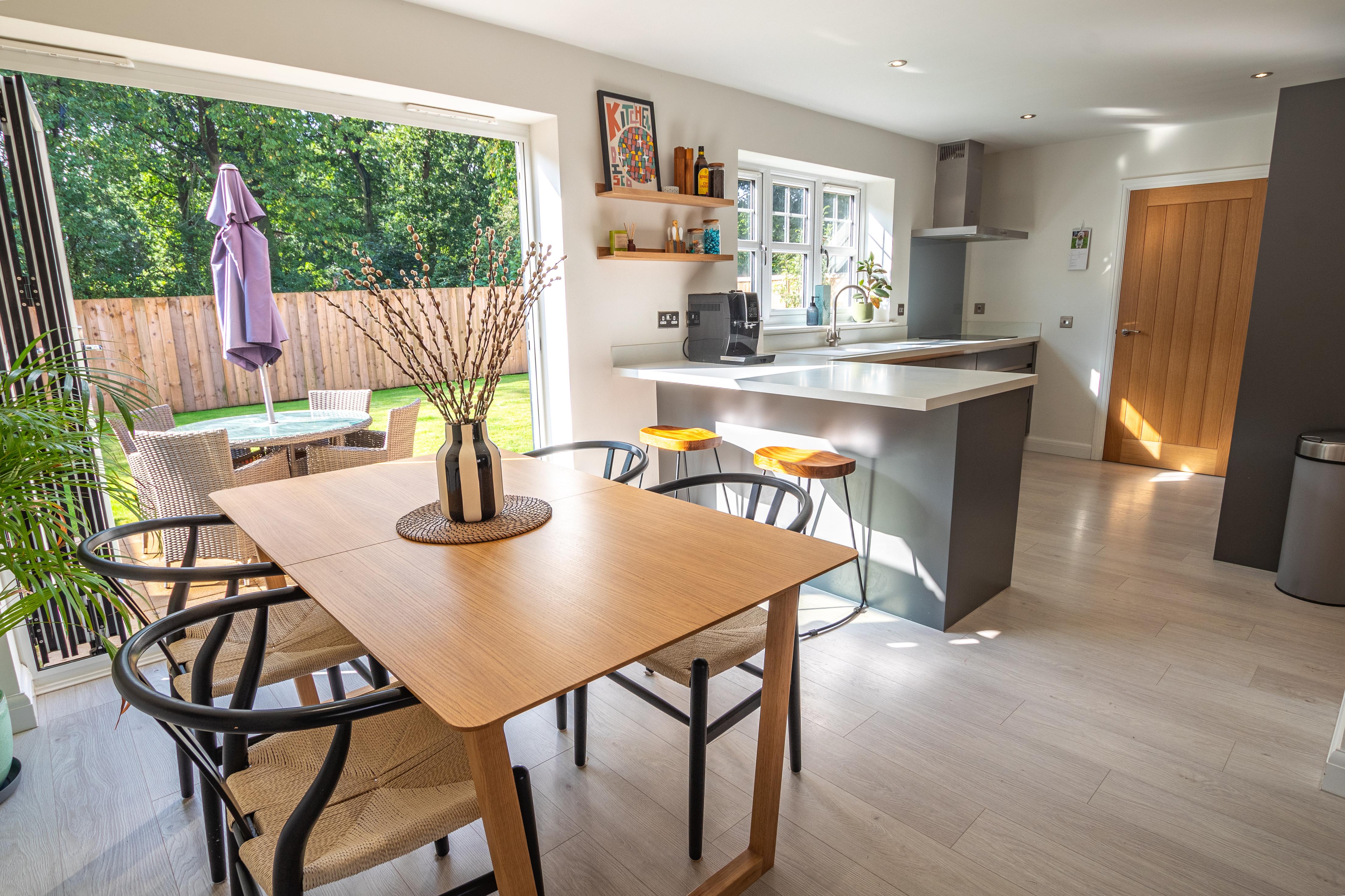 The front entrance door opens into a spacious and welcoming reception hallway with a decorative spindled staircase to the first floor with a storage cupboard below and access into the converted garage space that offers an additional reception room, and into the wellappointed kitchen/diner that boasts matt finished fitted cabinets and a breakfast bar, builtin appliances to include a double oven, hob, extractor fan, dishwasher and fridge/freezer and enjoys French doors leading to the rear garden. Approached from the kitchen is the generously proportioned front aspect lounge that benefits from a walk-in bay window, and to complete the ground floor is a good size utility room that is complimented with matching cabinets and space for white goods and a downstairs cloakroom with a hand wash basin and W.C.