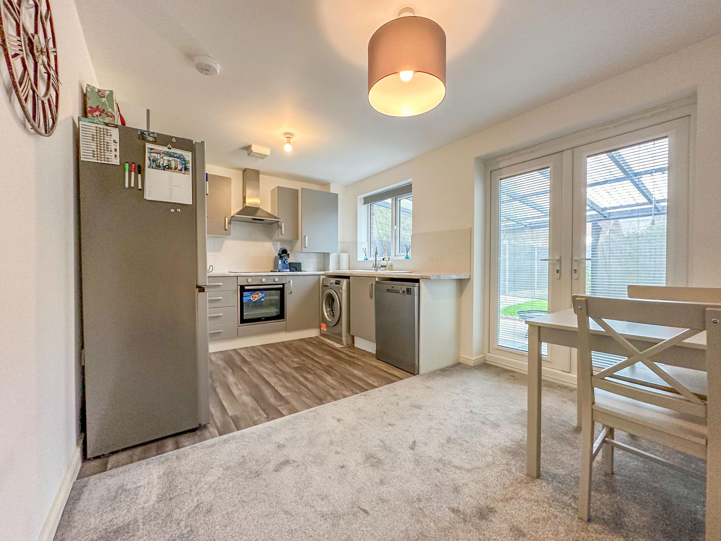 To the front of the property is a porch with access into the downstairs cloakroom and leads directly into the spacious and welcoming front aspect lounge that benefits from a handy storage cupboard and stairs to the first floor Adjoining this is the modern fitted kitchen/diner with a range of wall and base units, built-in oven and hob, a porcelain sink and French doors leading into the rear garden.