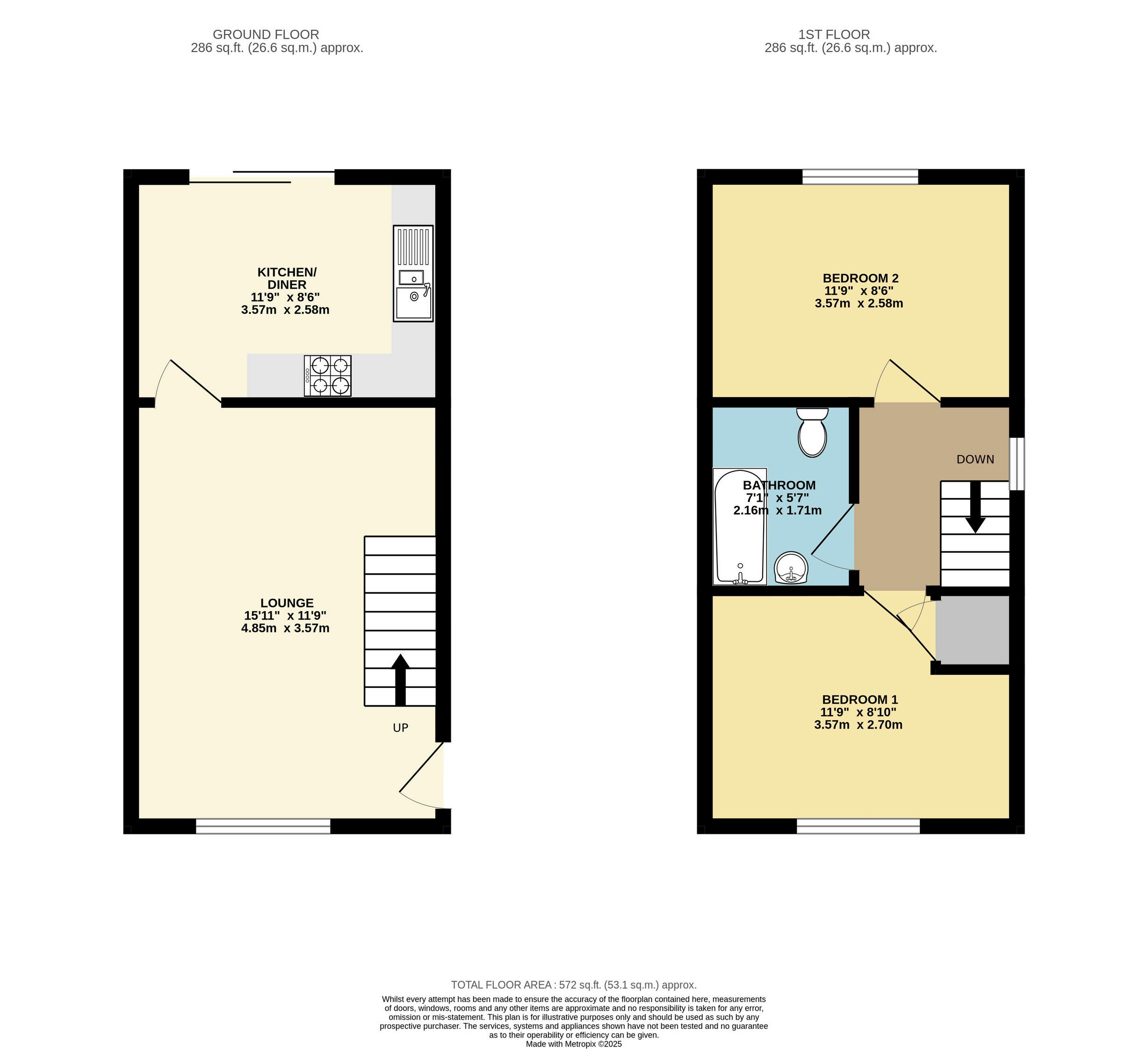 Upstairs, the property offers two generously-sized double bedrooms. The front bedroom boasts a convenient storage cupboard, while a well-appointed family bathroom serves both bedrooms.