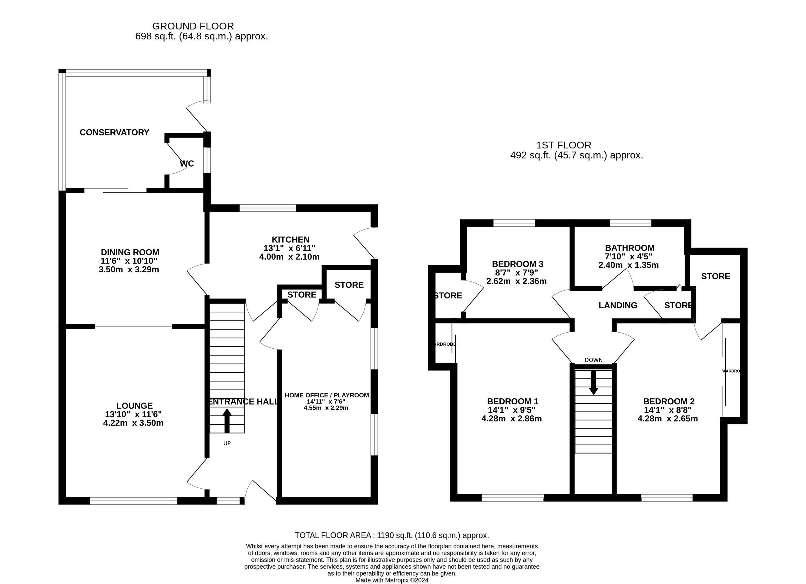 Ascending to the first floor, you will find three generously sized bedrooms, each offering ample storage with eaves storage solutions. The family bathroom on this level is well-appointed, serving all three bedrooms with ease and style.