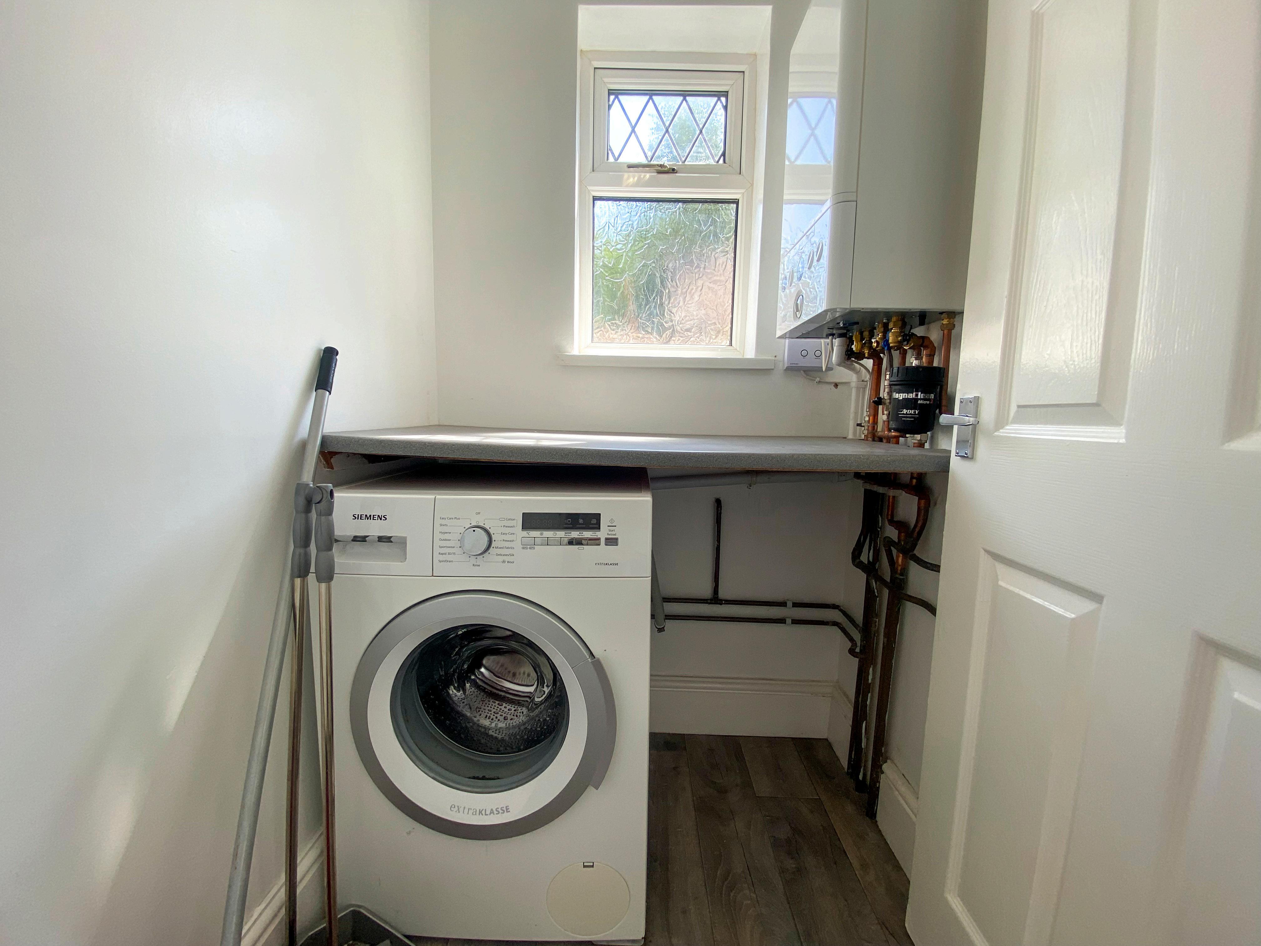 Upon entering from the street, you are greeted by the front living room, featuring an ornamental fireplace with a wood surround and gas fire. The stairs rise to the first floor from this inviting space. Adjacent to the living room is the dining room, which boasts an understairs storage cupboard and seamlessly connects to the kitchen in an open-plan layout. The kitchen is equipped with a range of wall and base units, a built-in oven, a gas hob with an extractor hood above, and a single drainer stainless steel sink conveniently located under the side window. A door from the kitchen leads to the rear lobby, which provides access to the utility room, bathroom, and side passageway. The utility room offers space and plumbing for a washing machine and a tumble dryer, and it houses the boiler, installed less than 12 months ago. The bathroom features a three-piece white suite, including a side panel bath with a shower over, a wash hand basin, and a WC, with tiling in water-sensitive areas.