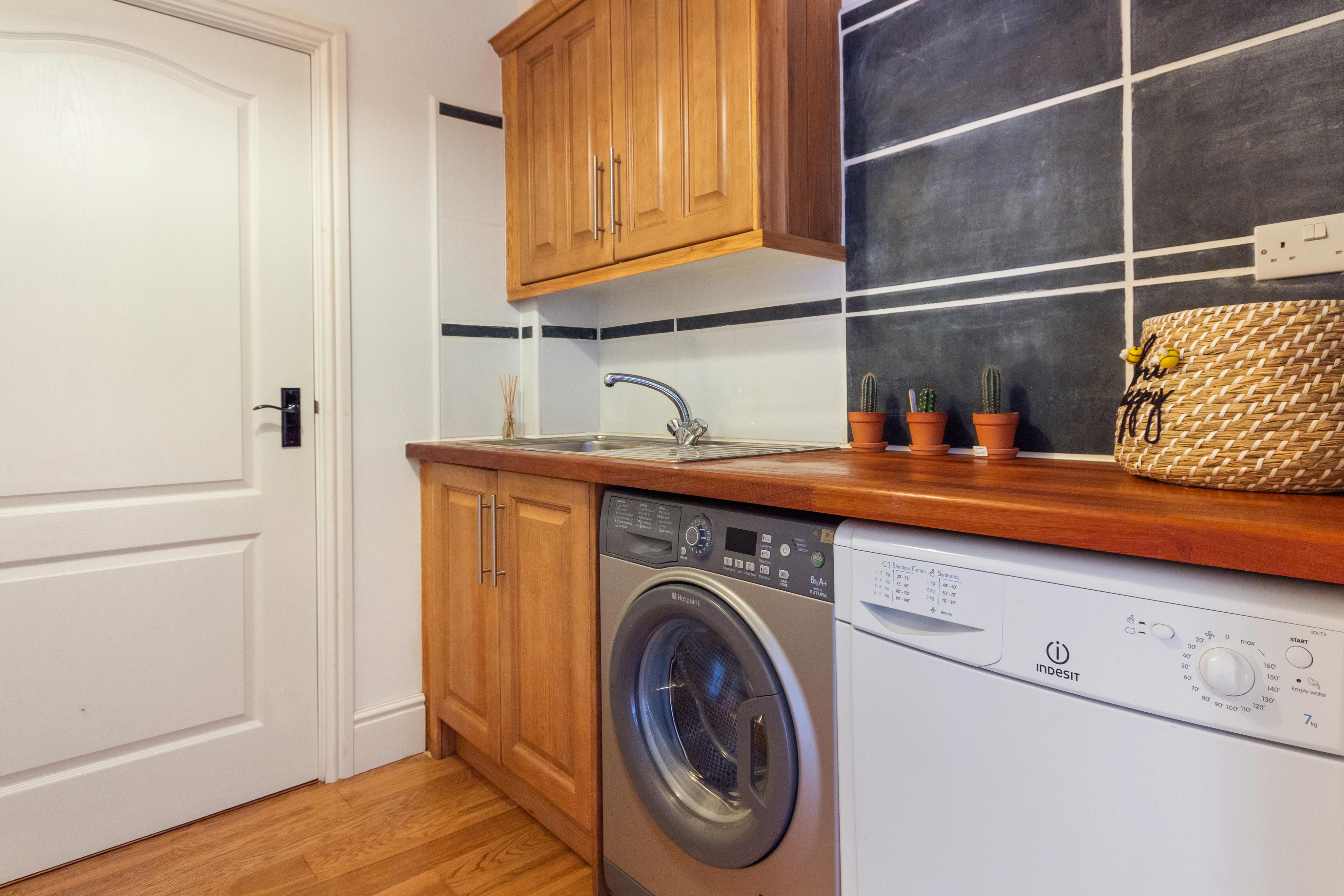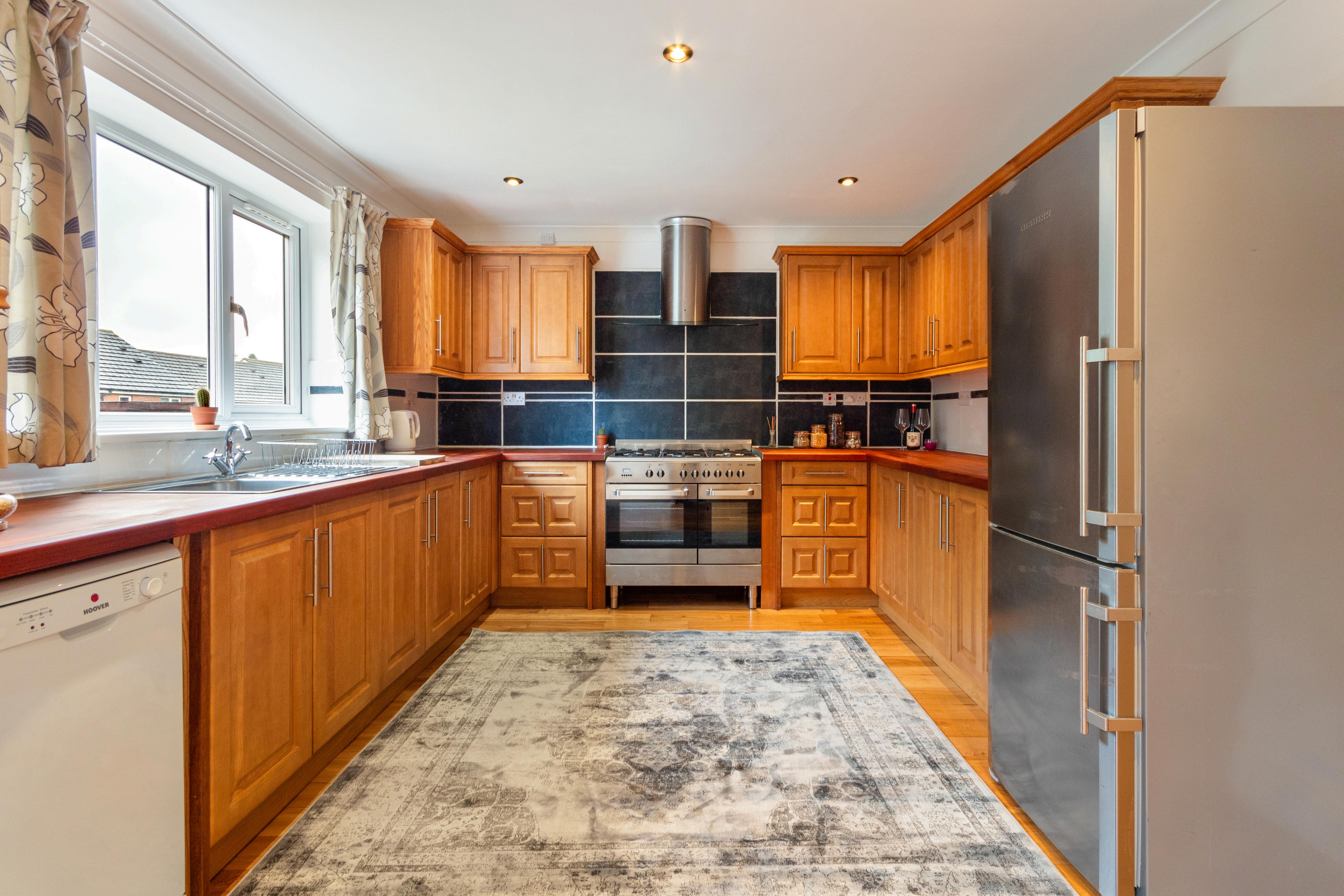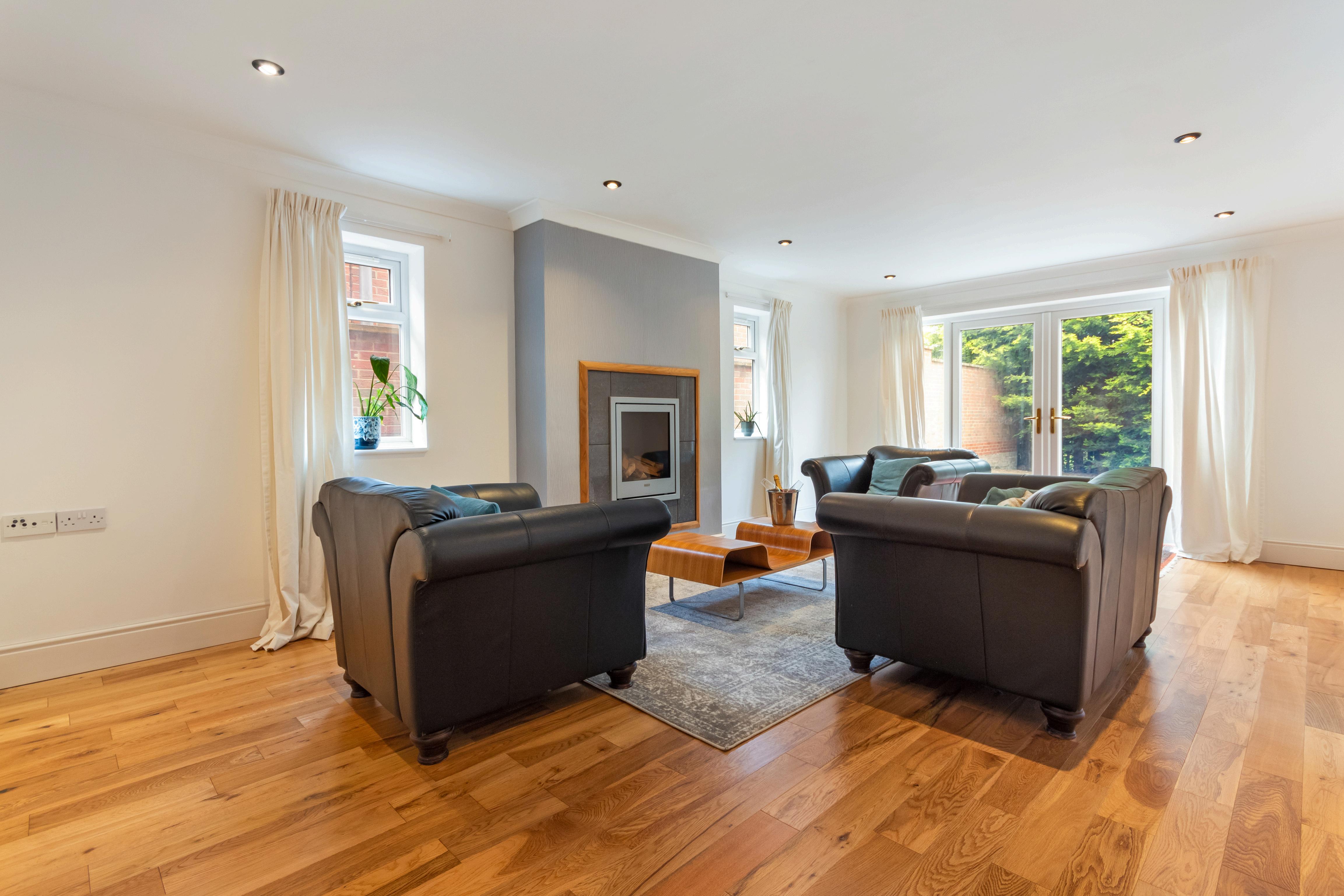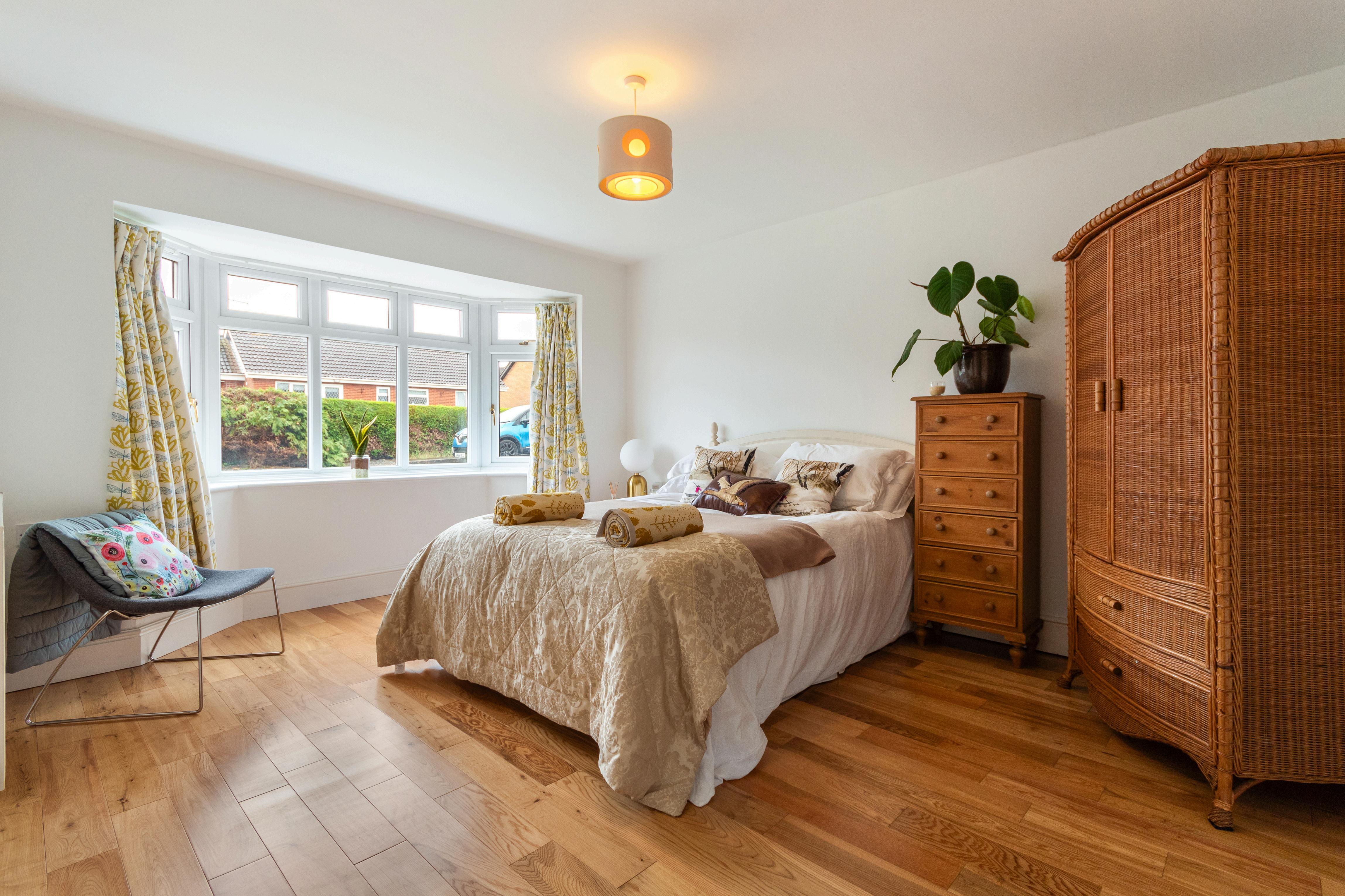On entering the property, you are welcomed into a spacious entrance hall that provides access to all principal ground floor rooms and an oak staircase leading to the first floor. Leading off the hallway is the heart of the home that is the superb kitchen/diner, that extends across the rear of the property. This well-equipped space offers a range of base and wall-mounted wooden fronted cabinets with ample space for white goods and a dining table making it an ideal space for both everyday living and entertaining, with patio doors leading out to the rear garden. Adjacent to the kitchen is a convenient utility room that benefits from units to compliment the kitchen, plumbing for a washing machine, and a guest cloakroom that features a hand wash basin and a W.C. The spacious lounge, located at the rear of the home, boasts an inset feature fireplace, is flooded with natural light with dual aspect windows and French doors, offering a perfect space for relaxation. Also on the ground floor is bedroom three, a generous double complete with its own stylish en-suite bathroom that enjoys a ‘P’ shaped bath with a shower above, a vanity hand was basin and a low-level flush toilet, ideal for guests or multi-generational living.