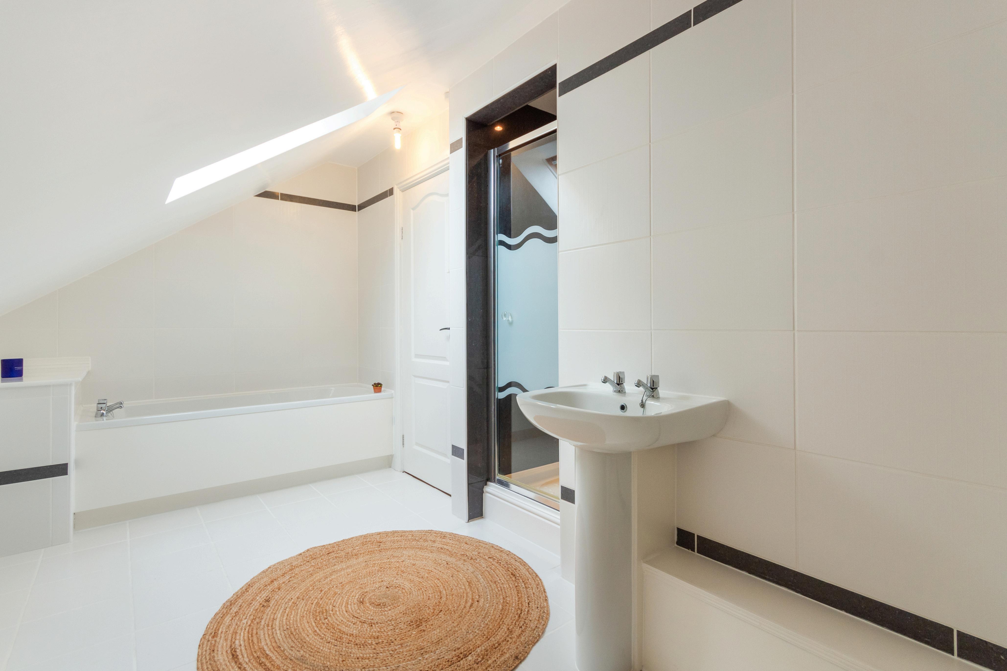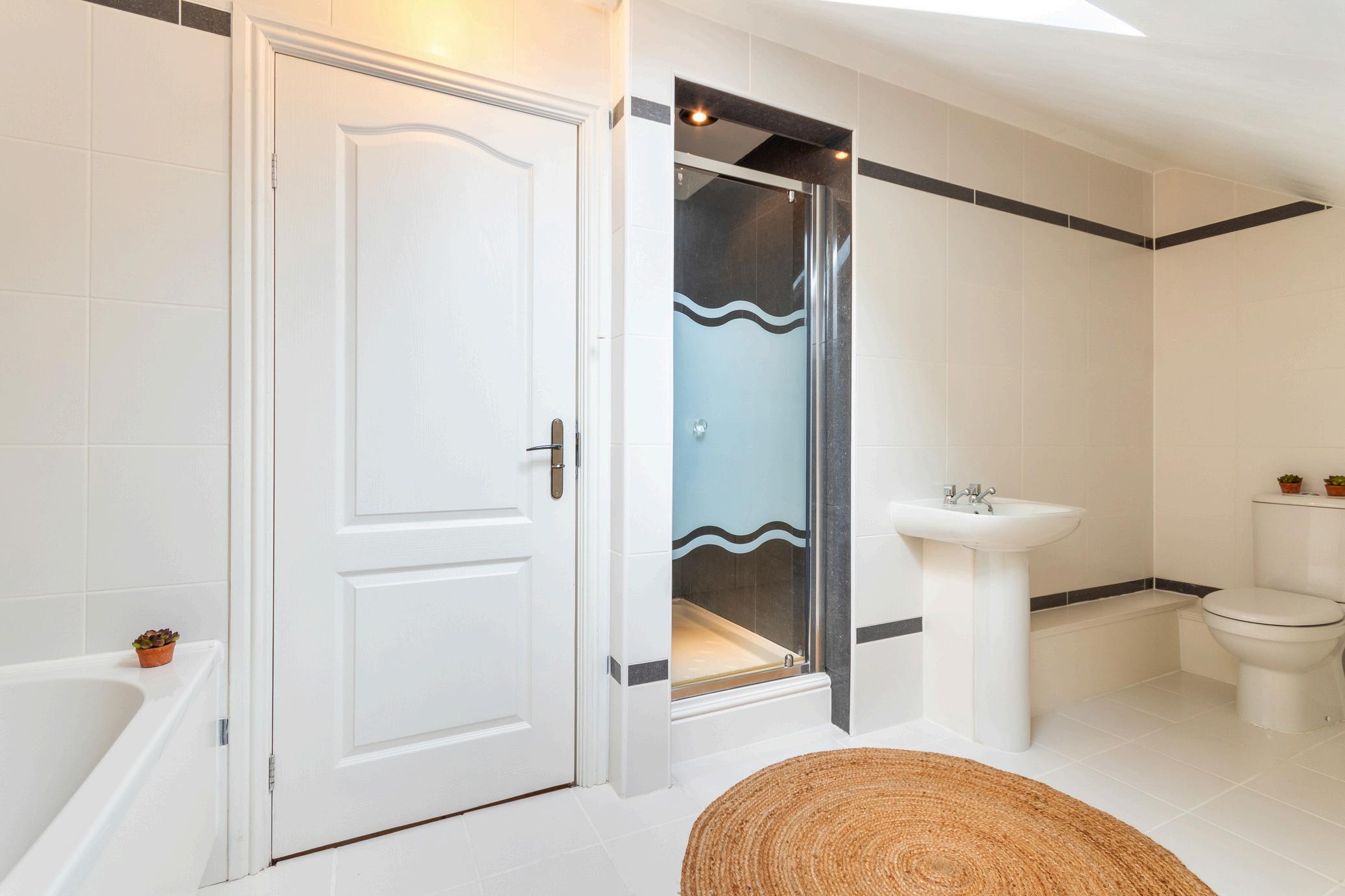 Ascending to the first floor, the accommodation continues to impress with three further bedrooms. The principal bedroom benefits from two walk-in wardrobes, and a modern en-suite shower room. Bedroom two also offers an en-suite shower room, and bedroom four is served by the well-proportioned four-piece family bathroom featuring a bath, a separate shower, pedestal hand wash basin and W.C.