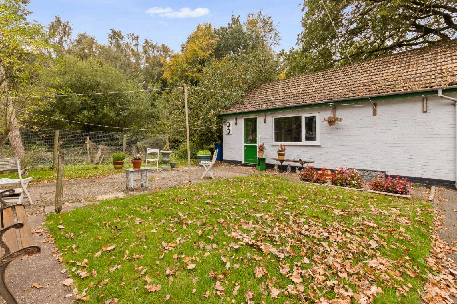 The grounds extend to approximately 0.4 acres, with lawns, established shrubs and a wonderfully private, woodland-edged backdrop that gives the plot a tucked-away feel. There are also hardstanding/patio areas and plenty of space to rethink the footprint, landscaping and outbuildings to suit your plans (again, subject to relevant consents