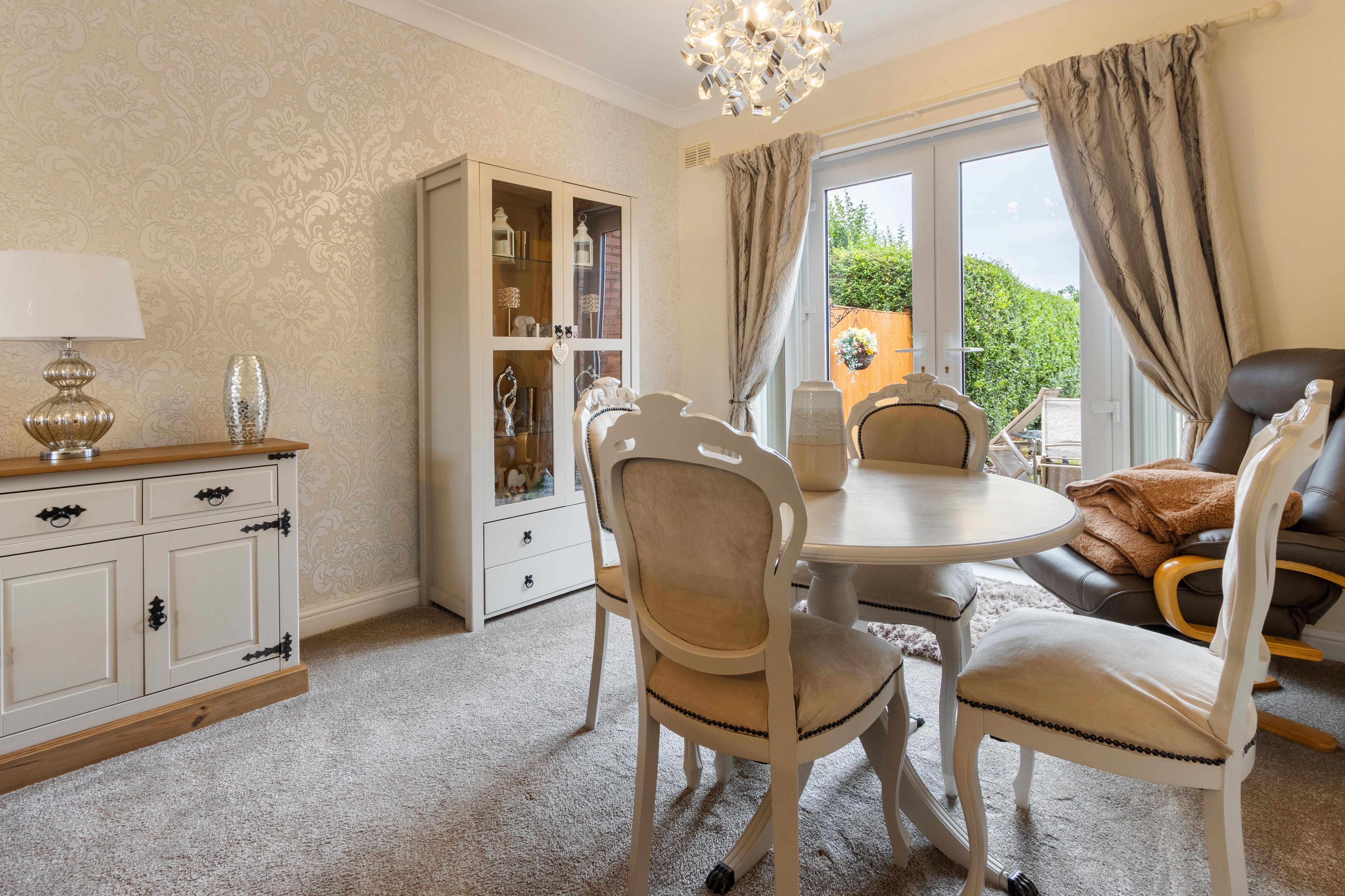 A welcoming entrance hall sets the scene for what’s to come and features access to a handy understairs storage cupboard Located off the central hallway is the beautifully spacious lounge/diner a bright and airy open-plan space that spans the full depth of the home. Bathed in natural light from both the bay window at the front and French-style doors at the rear, this room offers the ideal setting for both relaxed evenings and entertaining guests and boasts a marble feature fireplace. To the rear of this superb home sits a well-appointed kitchen with a range of base and wall-mounted fitted units, plenty of worktop space and a built-in oven and hob. A rear lobby leads to the all-important ground floor W.C. - an everyday essential for busy households and allows access into the garden.