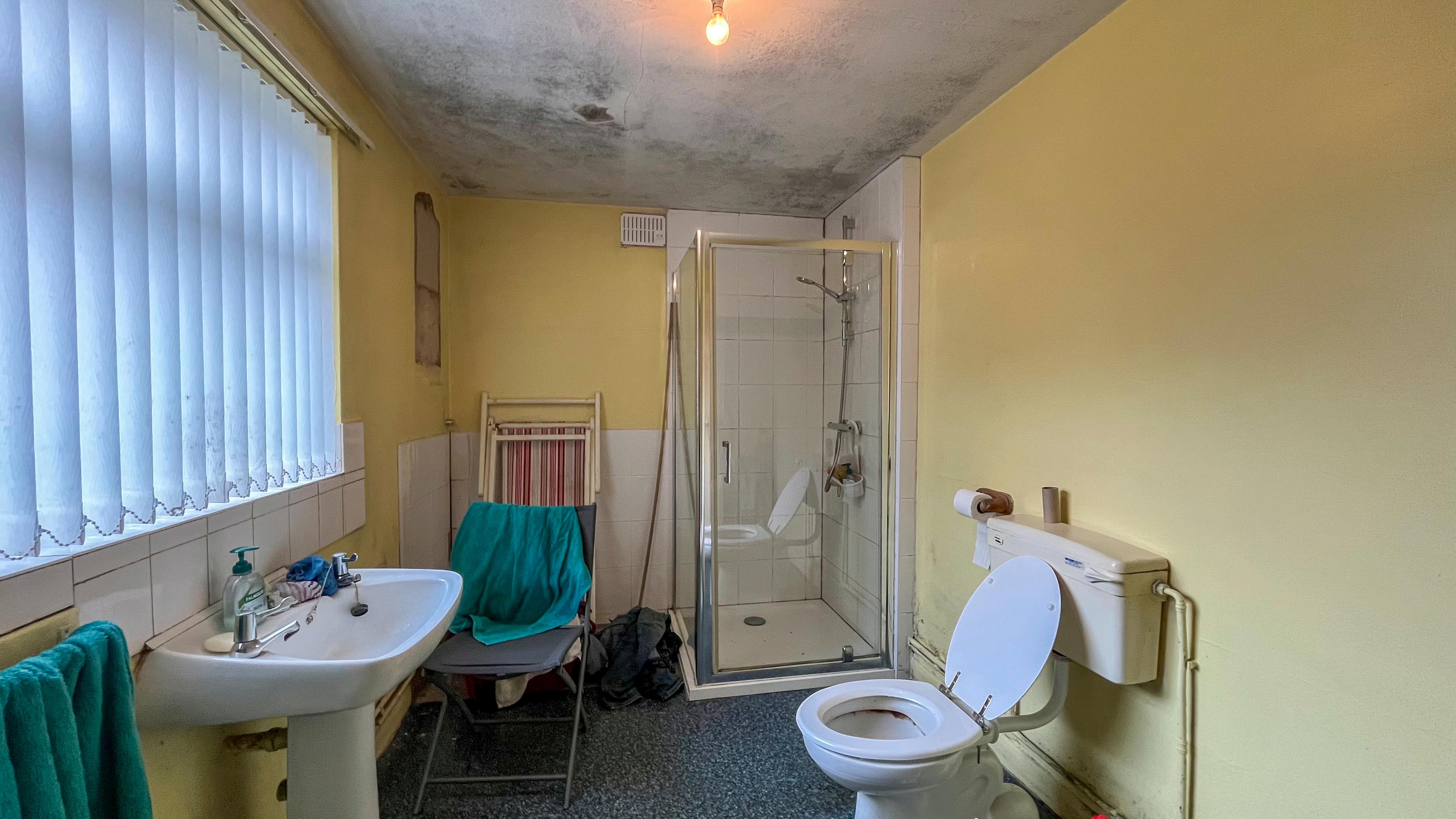 Perfect for both first-time buyers and savvy investors, this property is a canvas awaiting your personal touch. Step through the door to discover a welcoming front lounge boasting a bay window, ideal for basking in natural light. Journey through to the rear sitting/dining room, seamlessly connected to the kitchen—a space primed for culinary adventures. Completing the ground floor is a conveniently located good-sized shower room, adding both practicality and comfort.