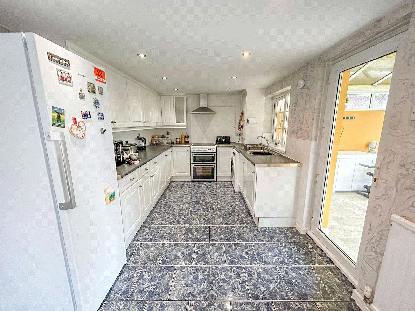 Offered with NO CHAIN the property briefly comprises an entrance hall with stairs to first floor accommodation as well as a lovely front facing lounge with feature bay window and feature fireplace. There is also a spacious dining kitchen with comprehensive range of wall and base units and ample room for dining table and chairs. The property benefits also from a good sized rear conservatory leading onto the garden. To the first floor there are three good sized bedrooms as well as a family bathroom with feature corner bath. The gardens to the front are wall enclosed and there is a side aspect driveway offering off road parking as well as gated access to the rear.