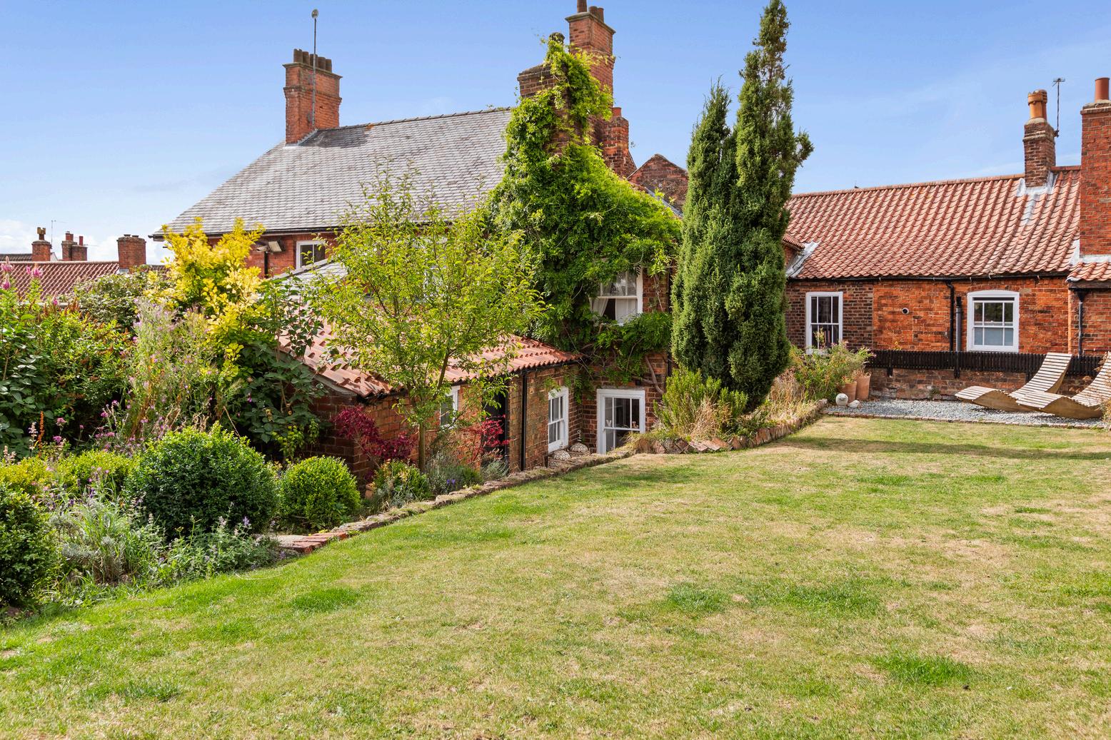 Immediately to the rear of the home there is a small courtyard with a brick Store and gated pedestrian access to South Street. Steps lead past the brick and tile store ( 2m x 3.5m internally) and up to the raised lawn with brick edged border stocked with cottage garden plants and box edged low shrub bed. The raised block paved barbeque offers a relaxing vantage point to enjoy the afternoon and evening sun. The garden is made secure by timber gates which open to the rear drive with off road parking for several cars and a large range of brick-built outbuildings.