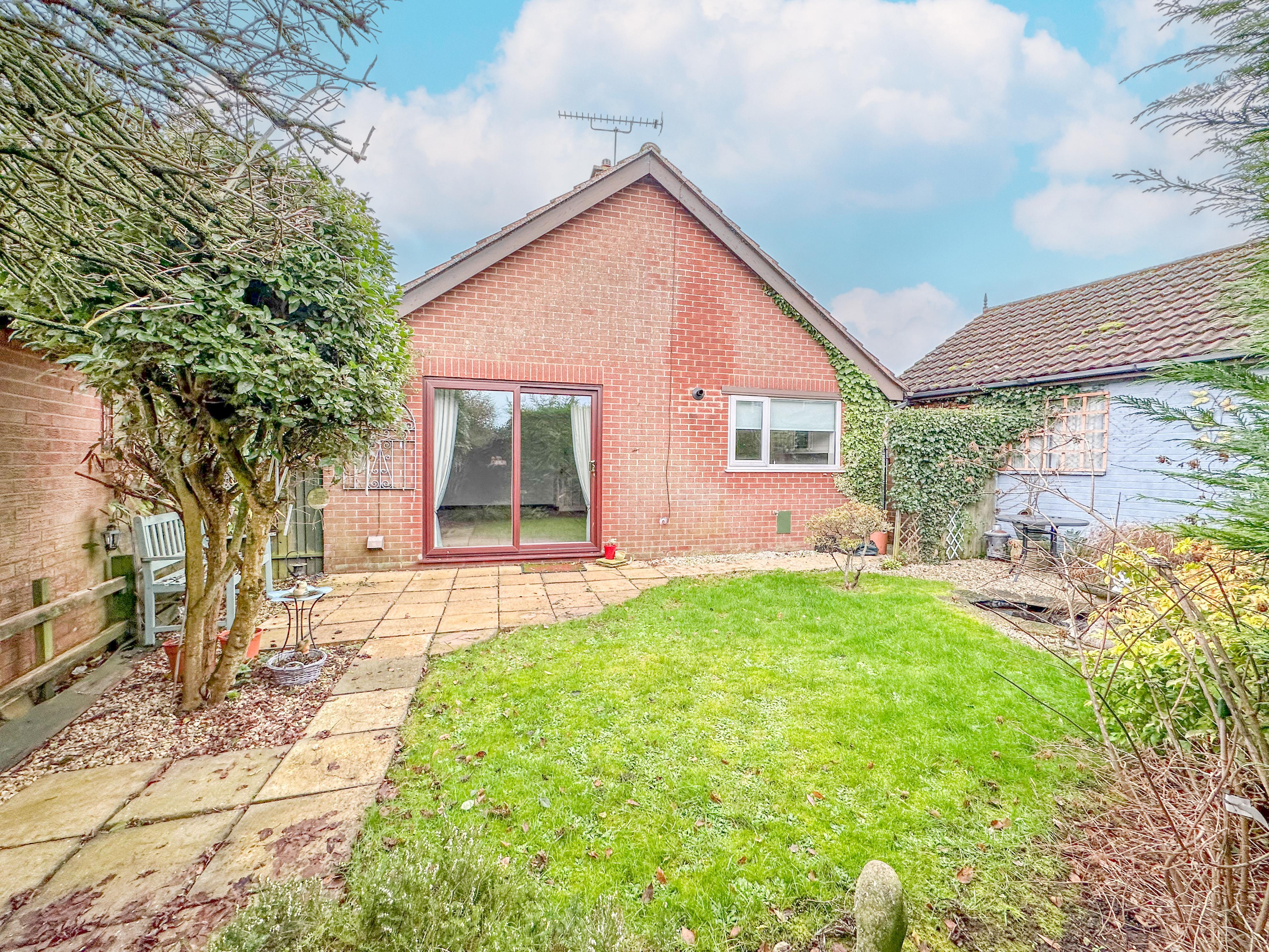 A side entrance door opens directly into the welcoming central entrance hallway allowing access into the spacious living room with a traditional brick-built fireplace and sliding patio doors, a rear aspect kitchen with a range fitted units, the generous master bedroom that boasts fitted wardrobes, an additional double bedroom, both of which are served by the contemporary shower room that benefits from a walk-in shower cubicle, vanity hand wash basin and W C Externally, the home is fronted with a manicured hedge for added privacy and a generous driveway providing off-road parking for multiple cars, leading to the brick-built garage that boasts both power and lighting. To the rear of the property is a fully enclosed, and non-overlooked lawned garden with a patio seating area for entertaining and a small pond.