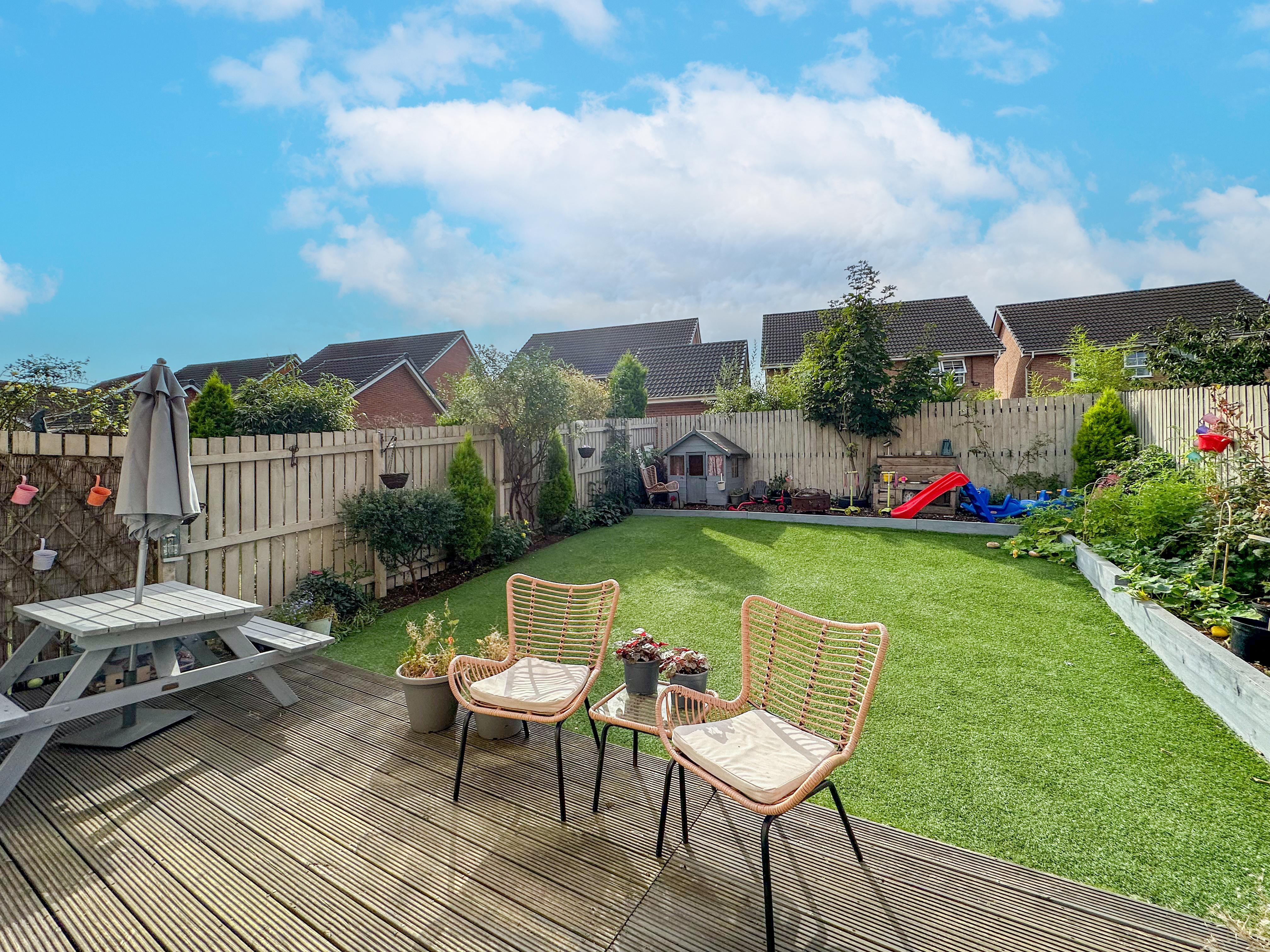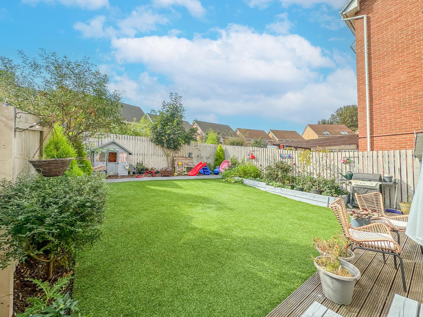 Externally, the property sits on a generous plot and benefits from front garden that is laid to lawn with ample off-road parking for two cars. A timber gate leads into the well-proportioned and enclosed rear garden with established raised planted beds, a decked seating area for entertaining friends and family, and a wooden shed for additional storage.