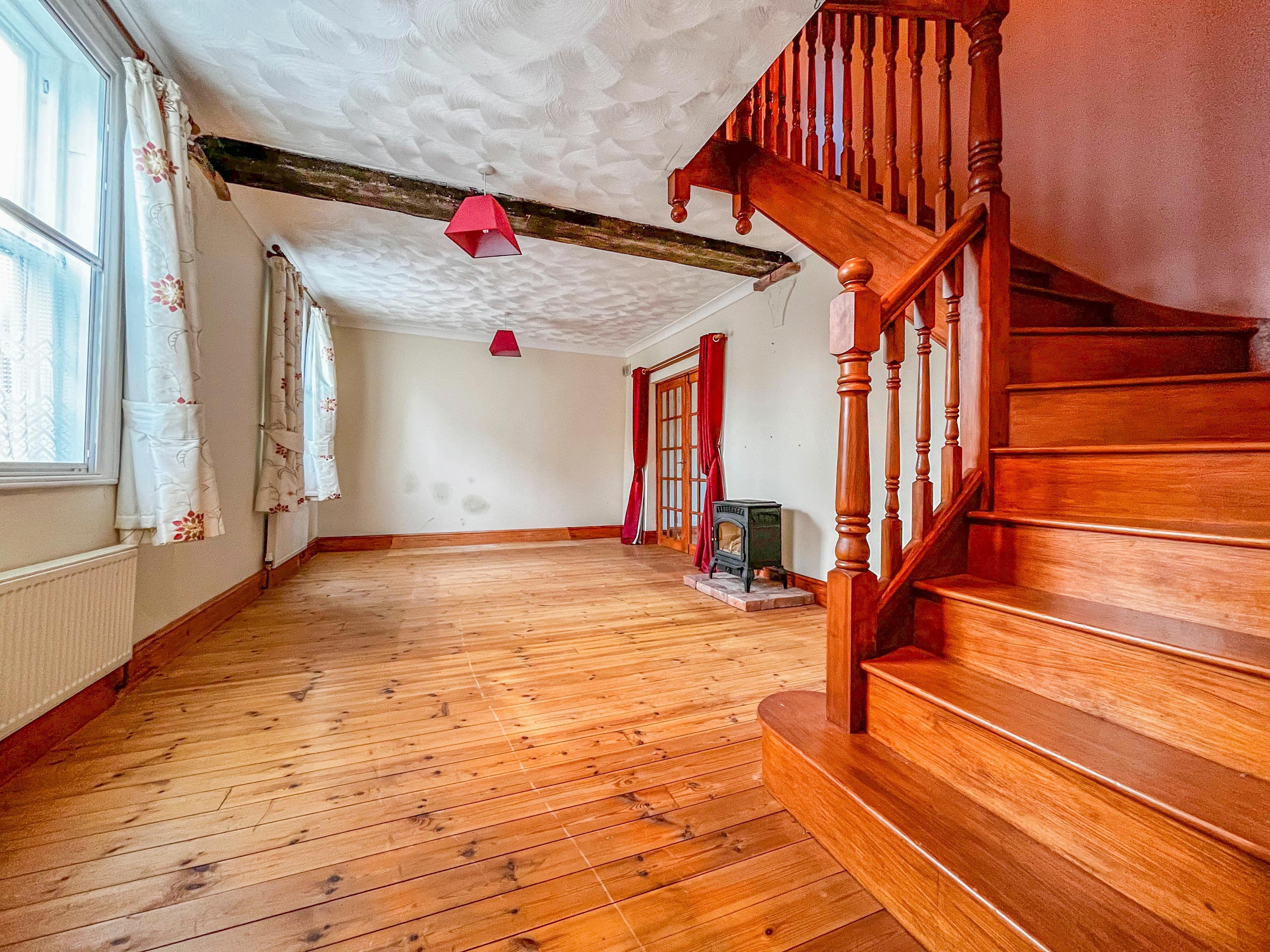Upon crossing the threshold, you are welcomed into a spacious entrance hall that seamlessly transitions into the open adjoining reception room. Ascend the stairs within this area to access the first floor, or follow the French double doors leading to a snug centred around a captivating period fireplace, featuring a multi-fuel stove. Returning to the entrance hall, a practical shower room awaits, complete with a walk-in shower cubicle, hand wash basin, and W.C., providing convenience for daily use. The heart of the home lies in the kitchen diner, situated at the rear and boasting a range of base and wall-mounted cabinets. This area effortlessly connects to the adjoining sunroom, creating a bright and inviting space for family gatherings or entertaining. A further bonus to the ground floor is a versatile reception room currently utilized as a study. With a rear aspect, this room seamlessly flows into the sunroom, providing a fluid connection to the rear gardens an ideal layout for indoor-outdoor living.