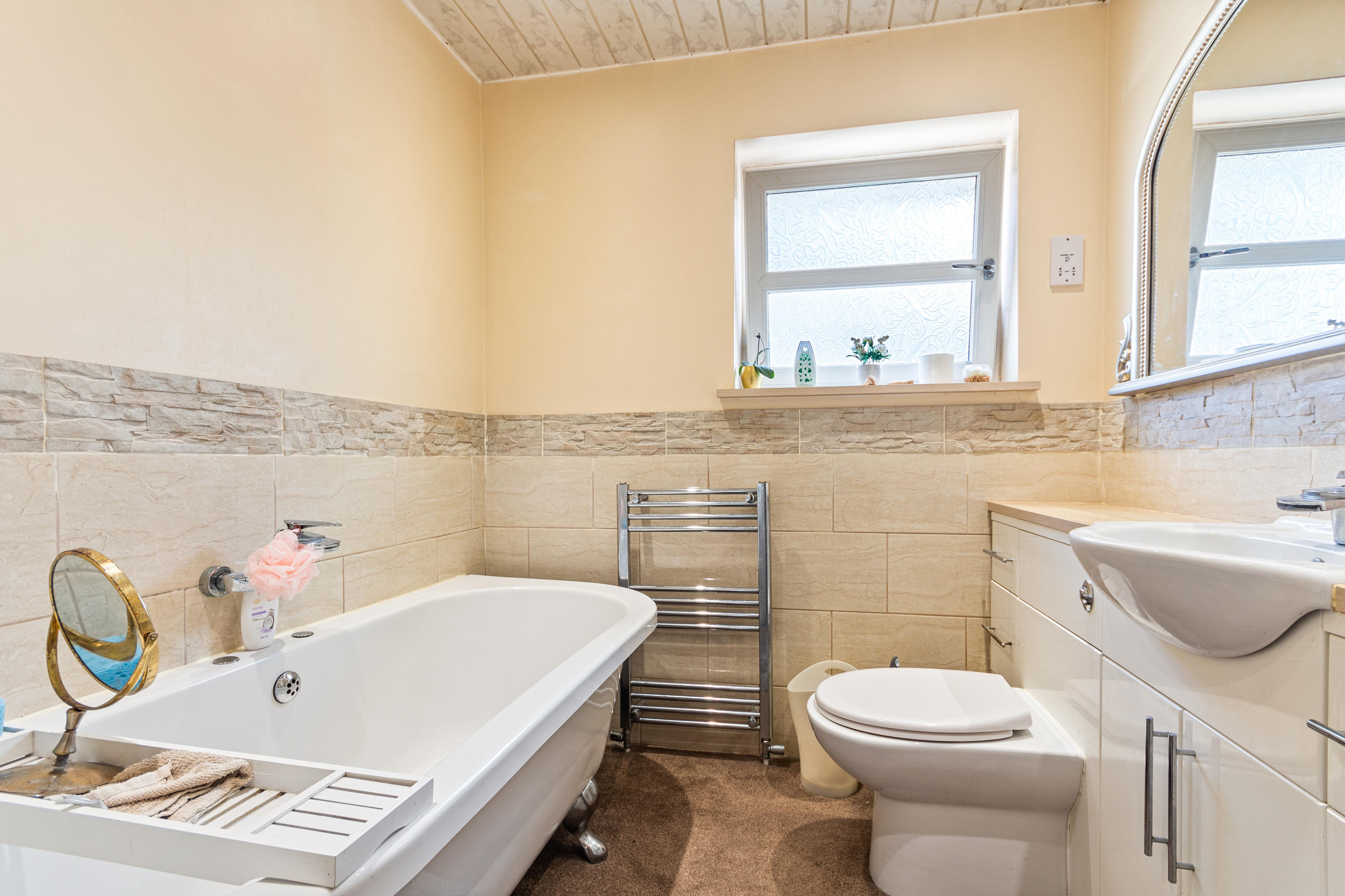 Ascend the staircase to discover an upper level adorned with five generously proportioned double bedrooms, each offering ample space for rest and relaxation. The master bedroom stands out with its additional luxuries, boasting a dedicated dressing area and an en-suite wet room comprising a shower, a sleek hand wash basin, and a W.C. Another notable feature is found in bedroom two, which also boasts its own en-suite shower room, providing added convenience for its occupants/guests. Completing the upper level is a contemporary three-piece family bathroom, designed to cater to the needs of the entire household. This modern sanctuary features a classic roll top bath for those seeking a relaxing soak. Additionally, it includes a stylish vanity hand wash basin and a low-level flush W.C., ensuring functionality and elegance in equal measure.