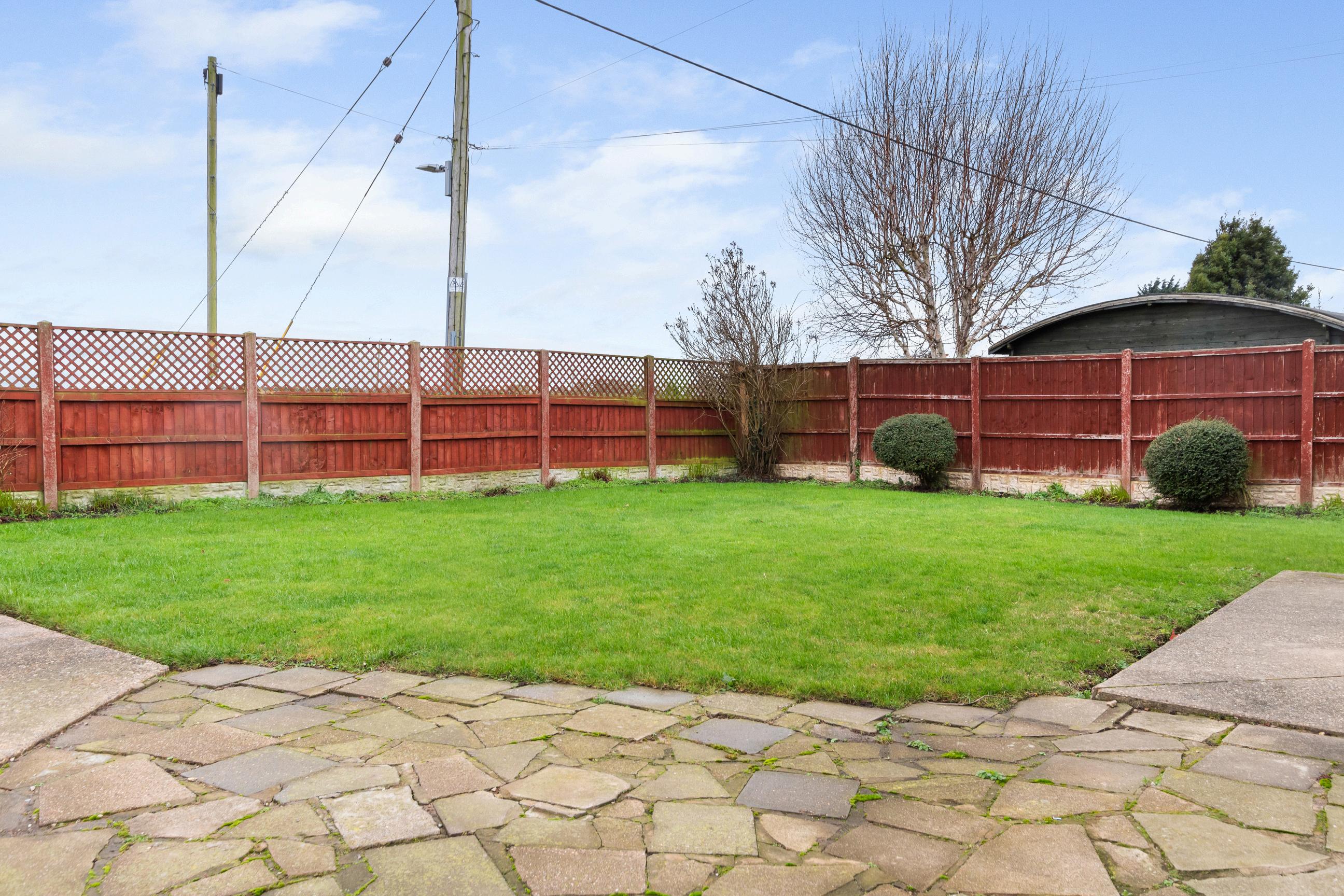 Outdoor Space: The property boasts a generous driveway leading to the house, complemented by a private rear garden. A detached outbuilding provides additional storage or potential workshop use.