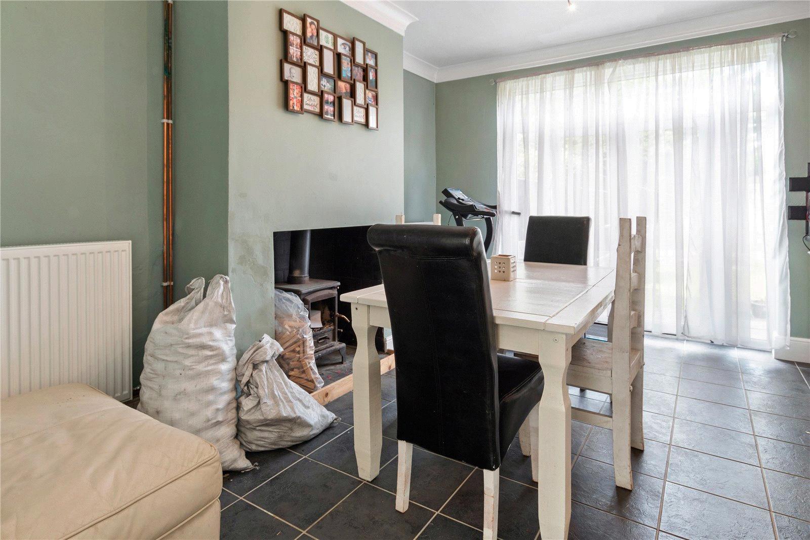 Open-Plan Kitchen Diner: The heart of the home, this area features a dining space with a stylish feature fireplace and French doors leading out to the rear garden. The kitchen is a chef's delight, equipped with both base and wall units in a high gloss finish, providing ample storage and workspace.