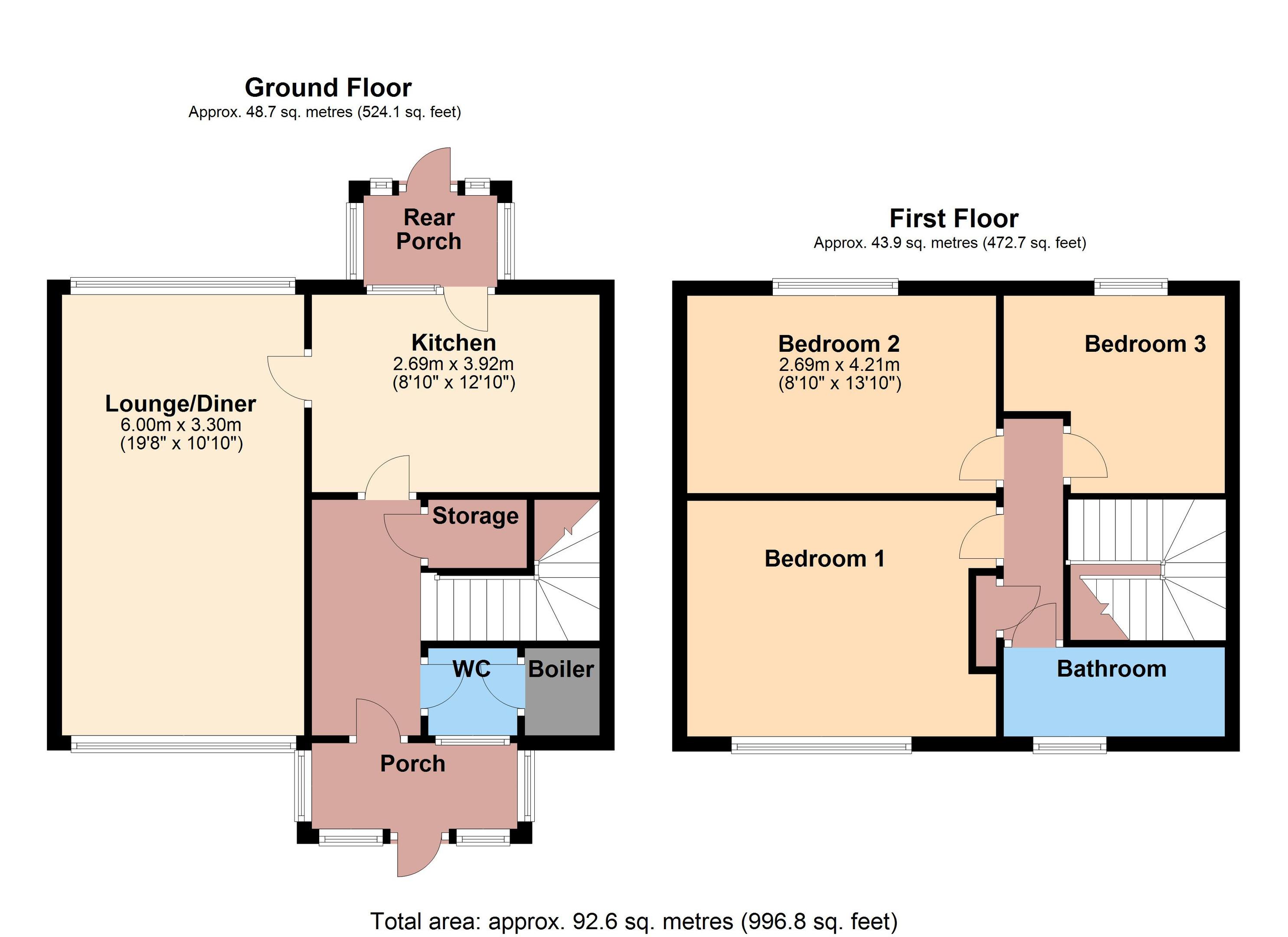 A ground floor entrance porch opens into the welcoming hallway with staircase to the first floor, leading to the downstairs w.c with a handy storage cupboard housing the boiler, modern fitted kitchen with a freestanding cooker, extractor and sink complete with breakfast bar and door leading to the rear porch.