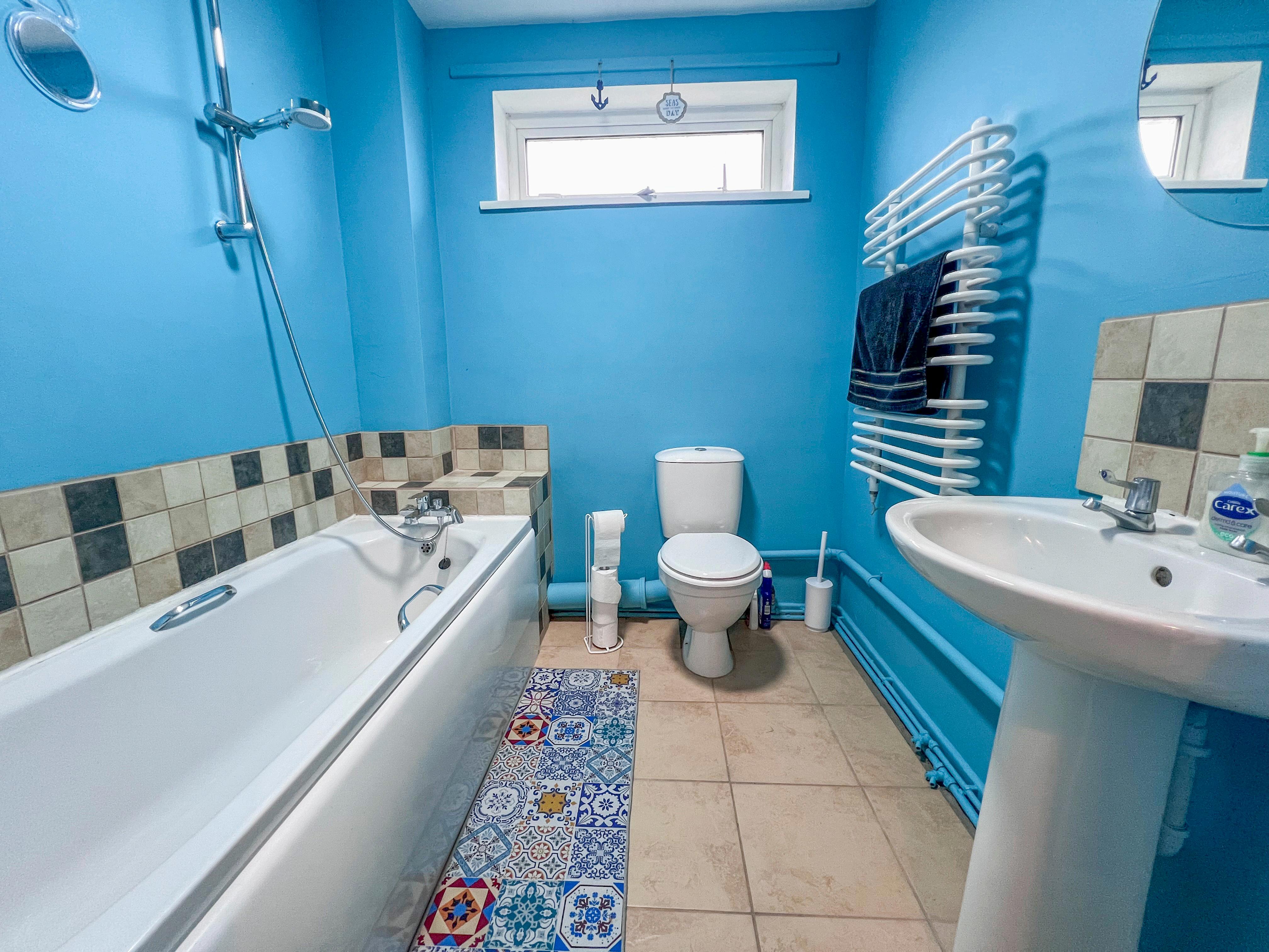 A three-piece bathroom suite awaits straight ahead from the inner hall, providing a comfortable retreat for relaxation.
