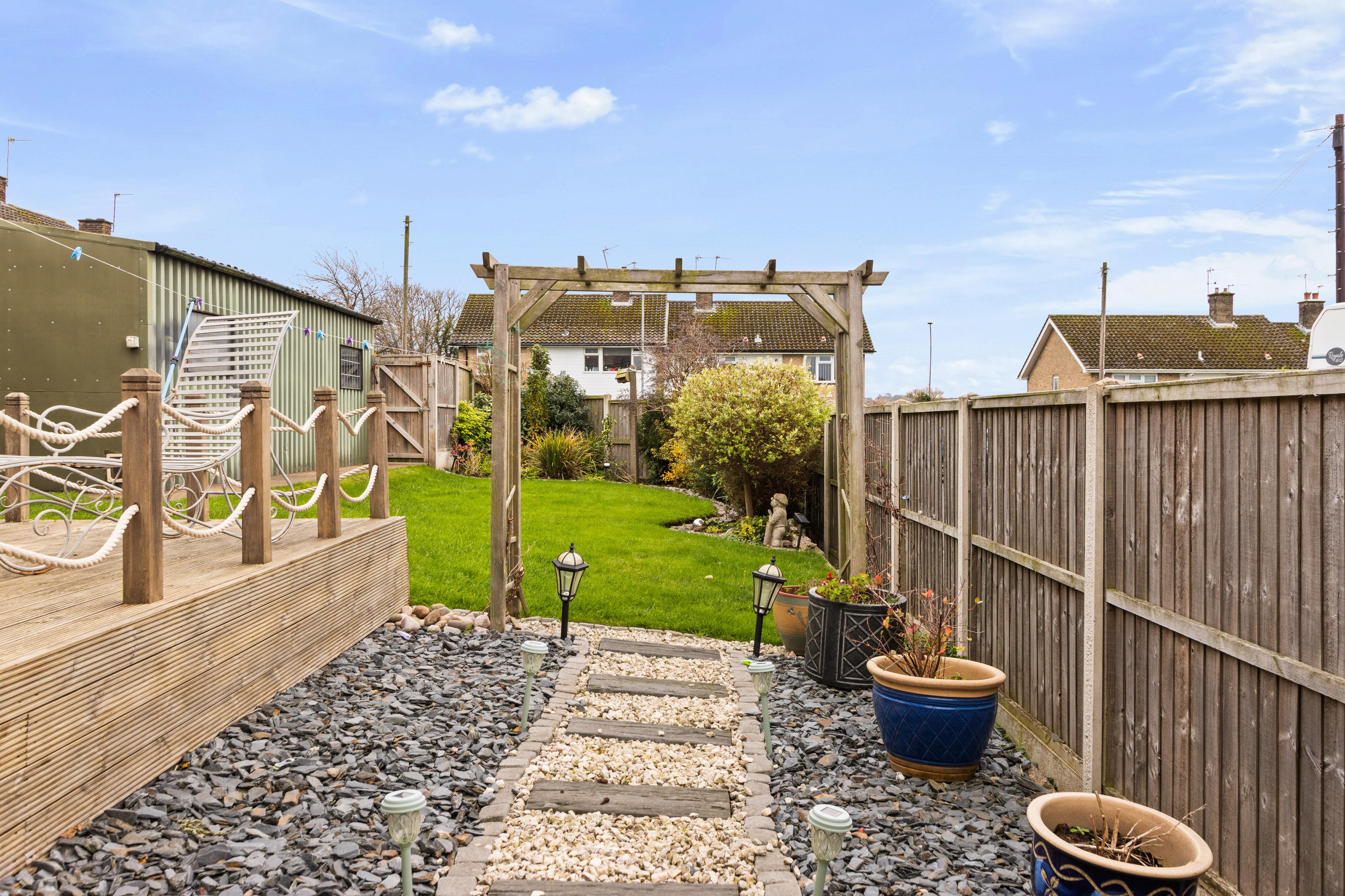Set behind a low-maintenance front garden enclosed by painted fencing, the property enjoys a neat and welcoming street presence. A side path leads through to the rear, where the garden offers a great balance of outdoor space and easy upkeep, ideal for young families or anyone who enjoys relaxing outdoors.