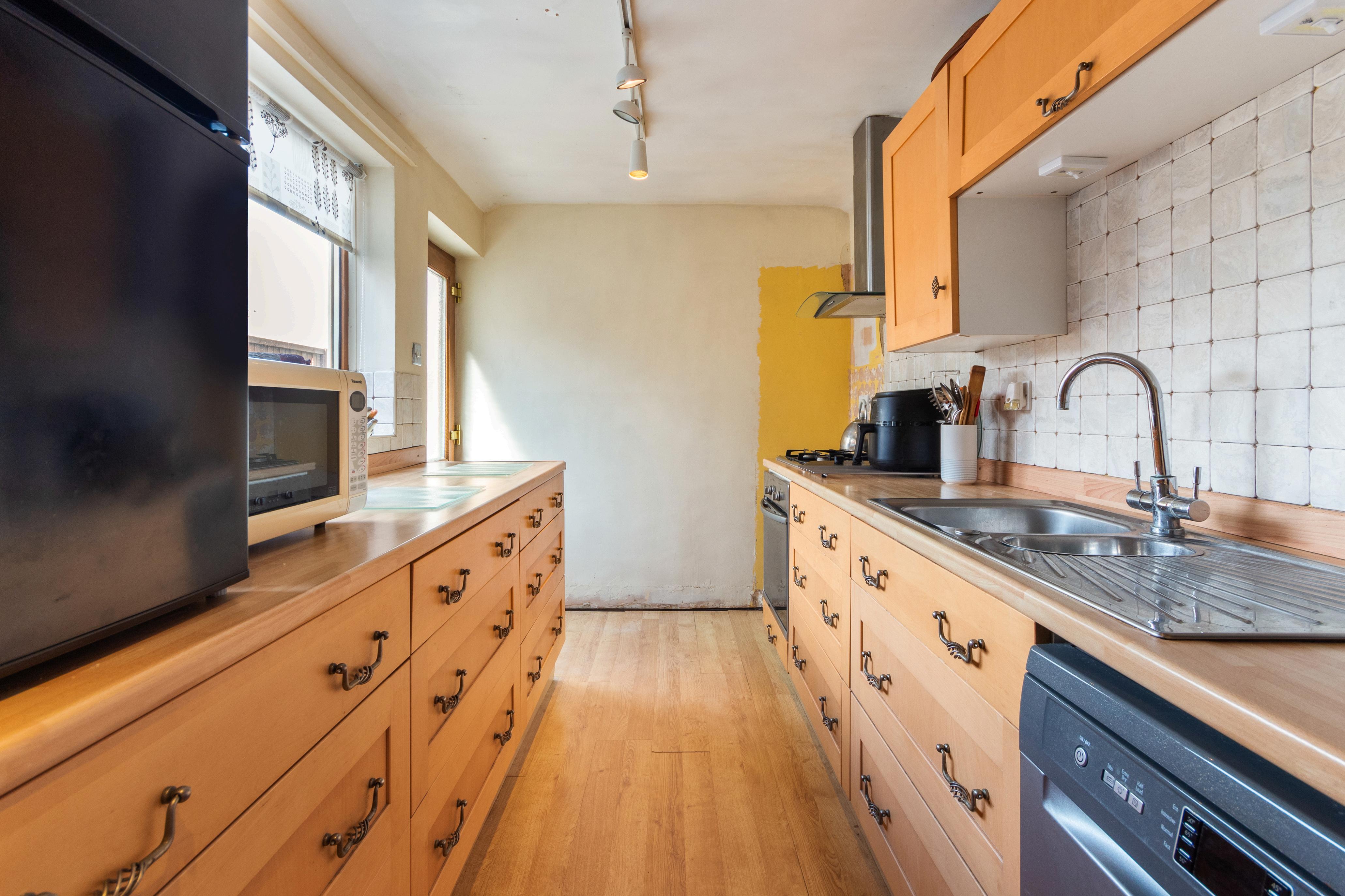 Upon entering through the front door, you are greeted by a bright and welcoming hallway that provides access to the ground floor accommodation and a staircase to the first floor. At the front of the house, the living room offers a cosy and inviting space with ample room for comfortable seating, complemented by plenty of natural light, and a log-burning stove with an oak mantle above. Flowing seamlessly through double doors is the spacious dining room, ideal for hosting family meals or entertaining guests, with views over the garden and access leading towards the rear of the home.