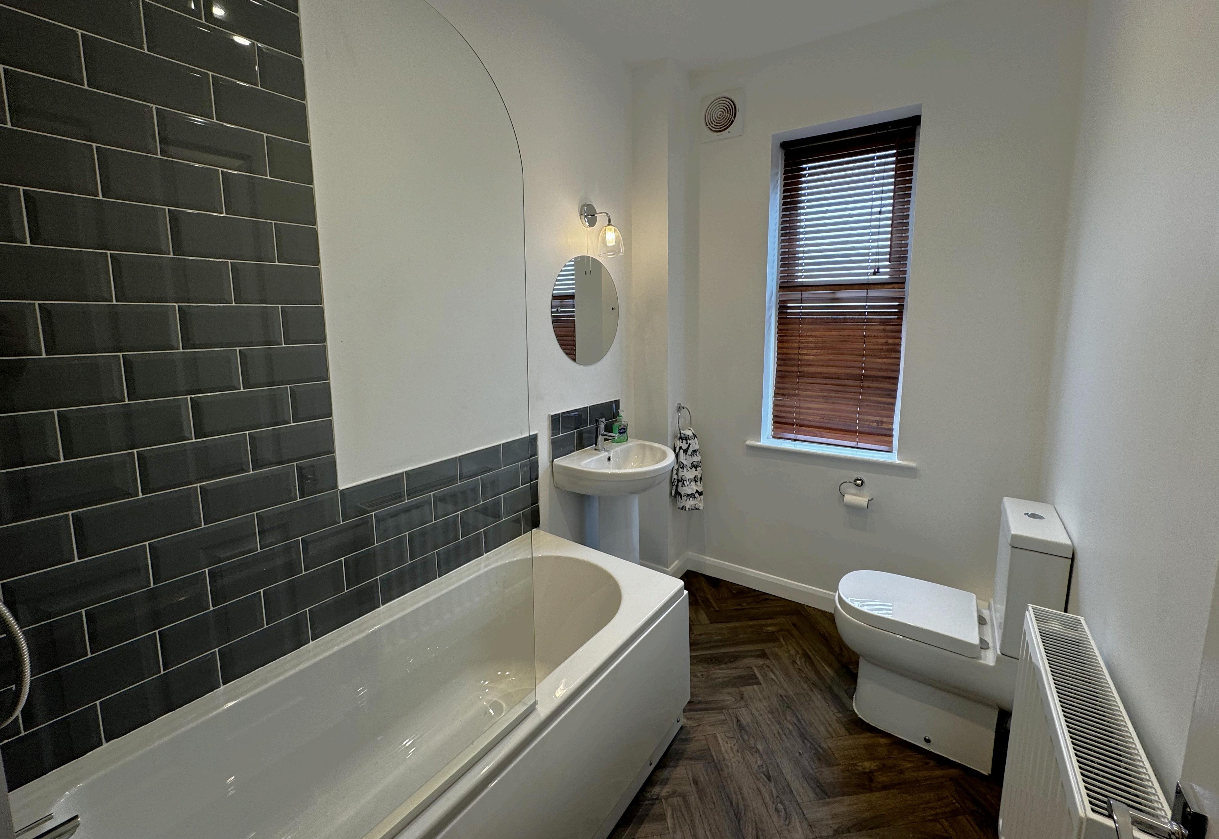 The modern kitchen diner, complete with an island, offers ample room for cooking and entertaining, with patio doors that open onto a fully enclosed rear garden. Off the kitchen, there is a convenient utility room, adding to the home's practicality.