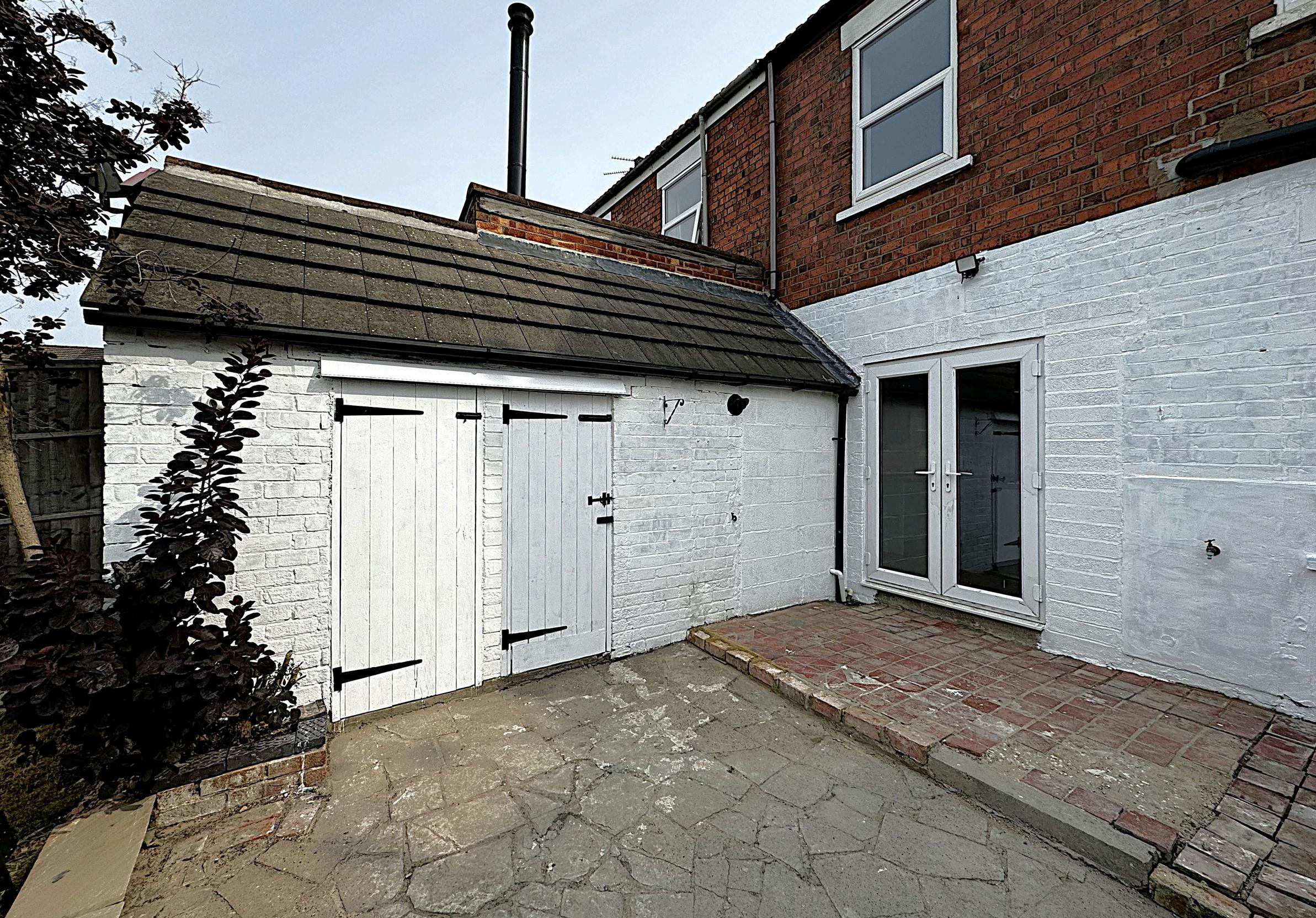 Upstairs, the first floor features two generously sized bedrooms, an office space ideal for working from home, and a spacious, modern bathroom equipped with an overhead shower. At the rear of the property, you'll find two outbuildings perfect for storage and a laid patio area, providing an excellent spot for outdoor relaxation.